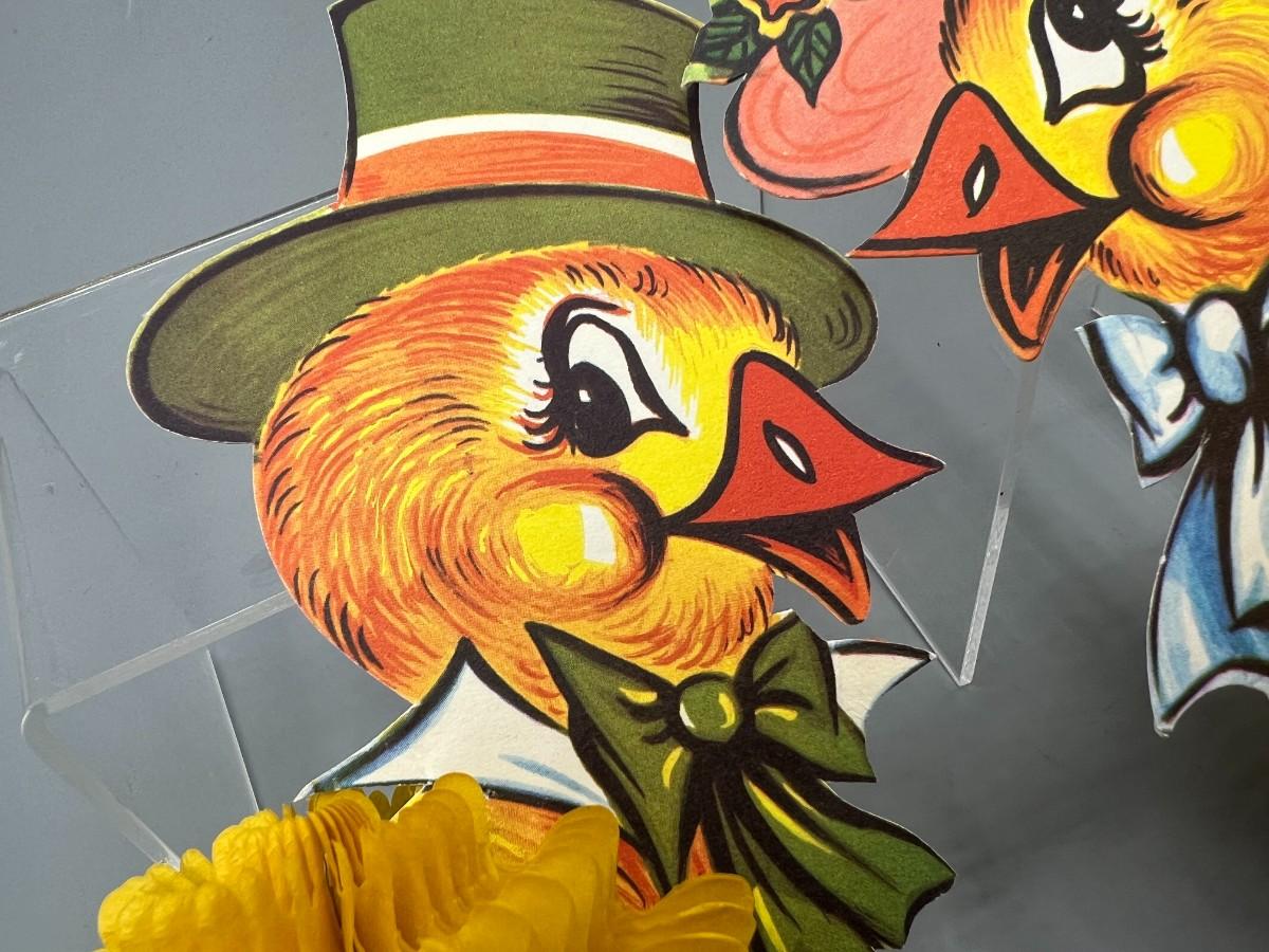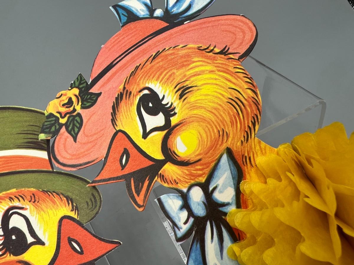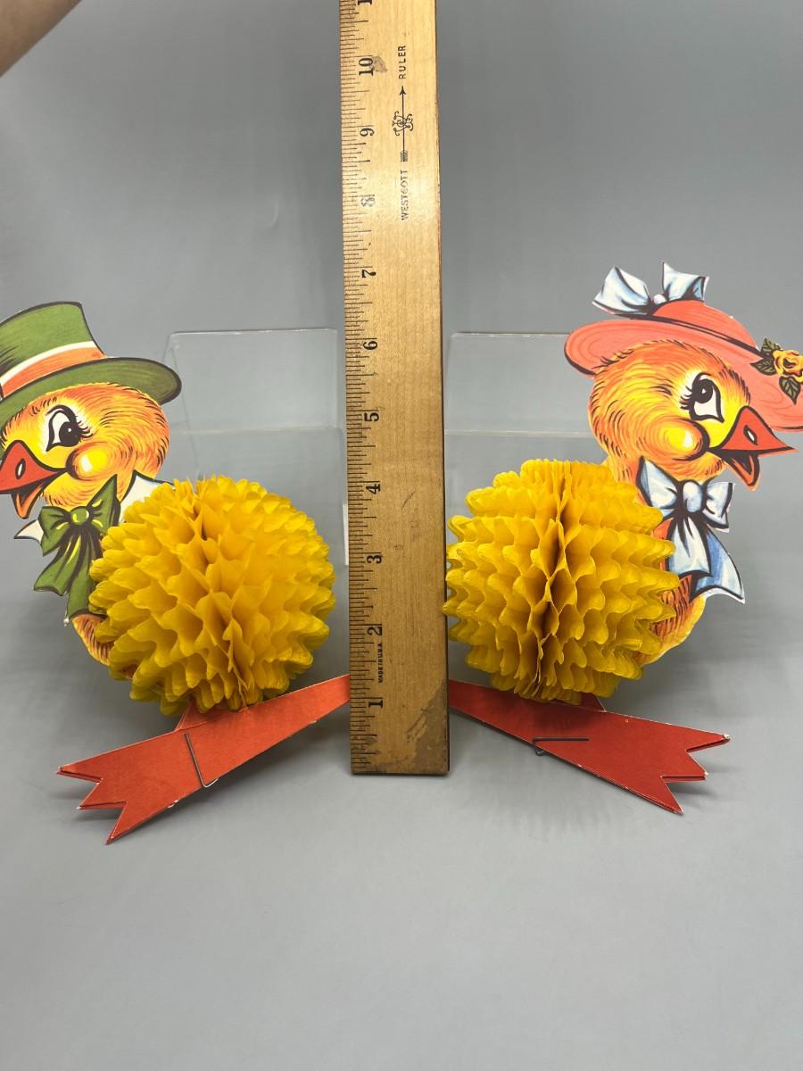 Pair of Vintage Honeycomb Spring Mr. & Mrs. Duck Chick Hanging Paper Centerpieces