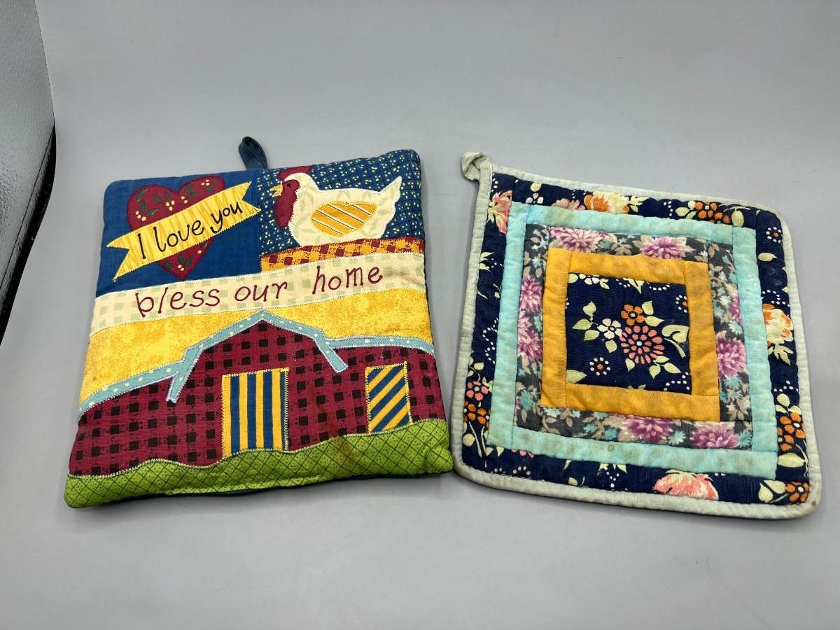 Pair of Rustic Farmhouse Fabric Design Square Pot Holders