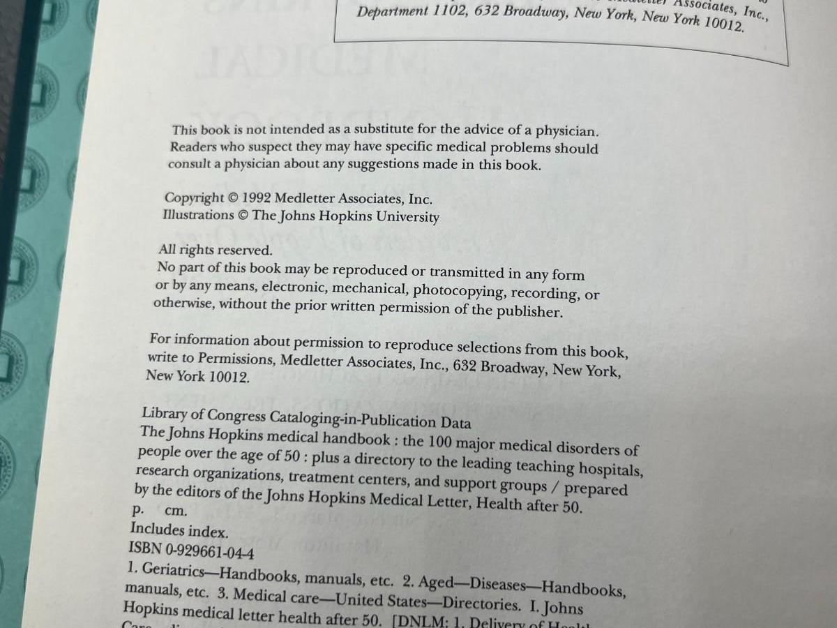 The Johns Hopkins Medical Reference Handbook The 100 Major Medical Disorders of People Over the Age of 50