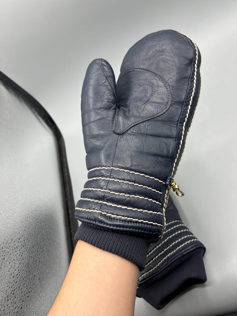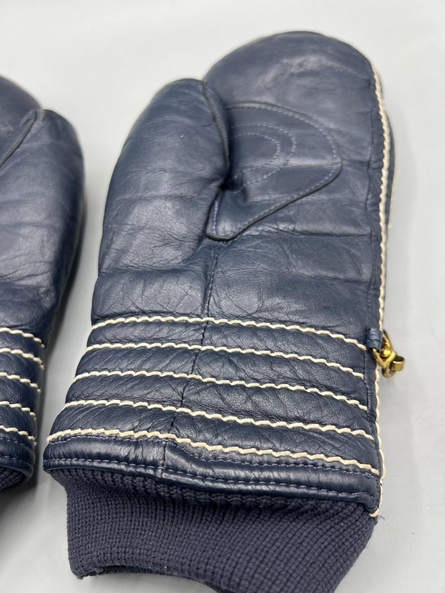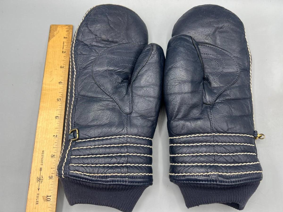 Pair of Vintage Blue & White Thread Warm Insulated Ski Winter Glove Mittens