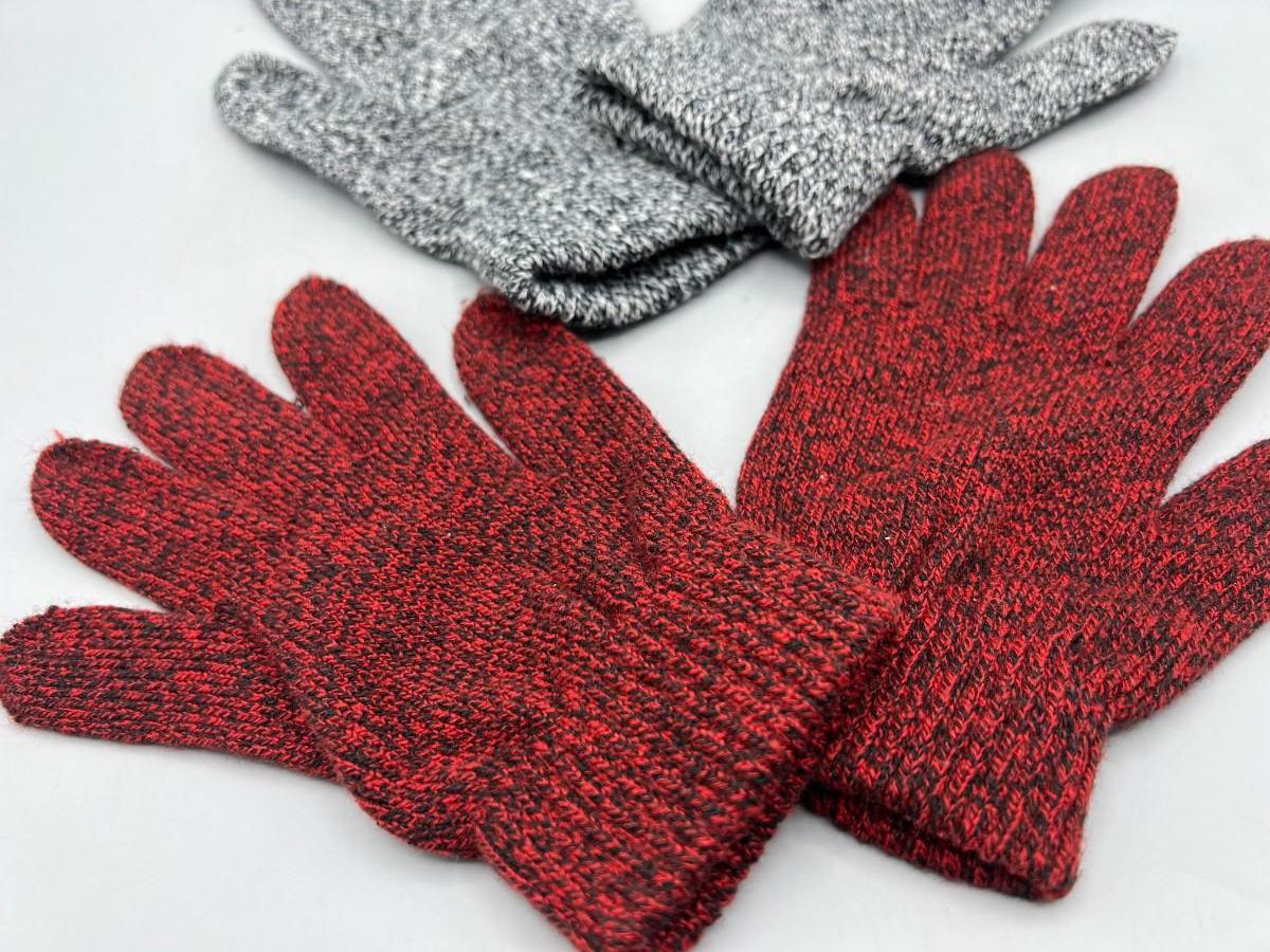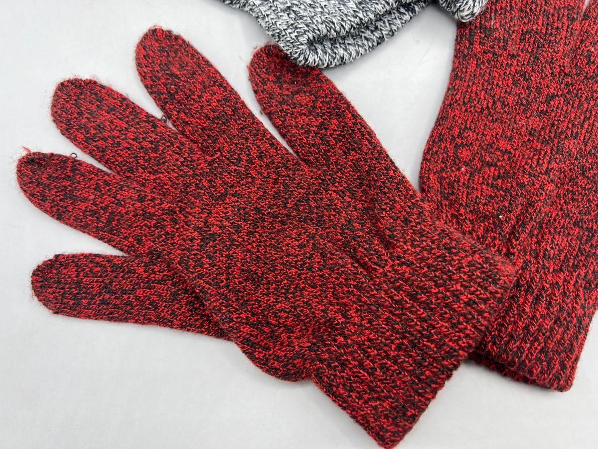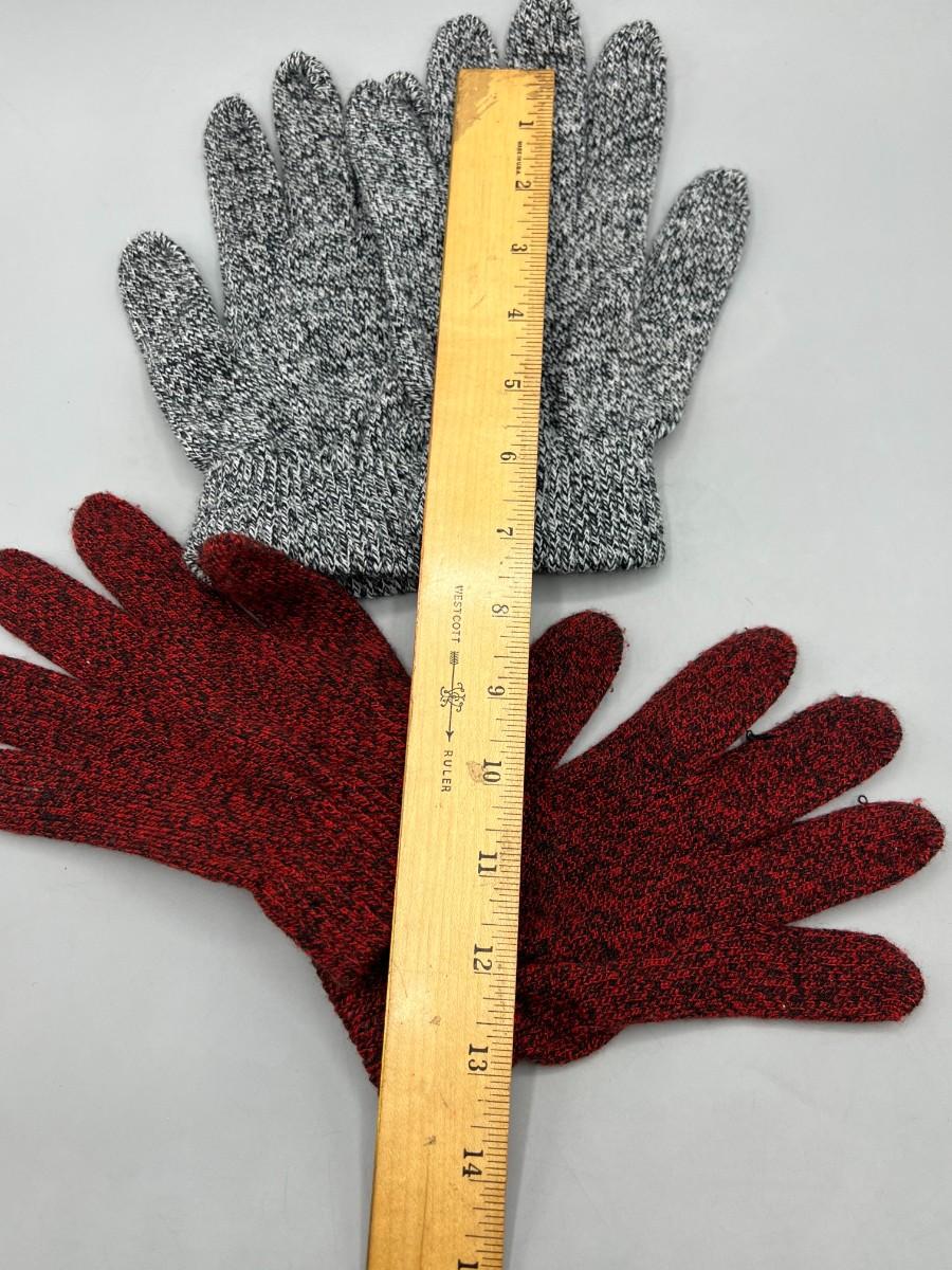 Pair of Gray & Red Warm Soft Knit Winter Gloves
