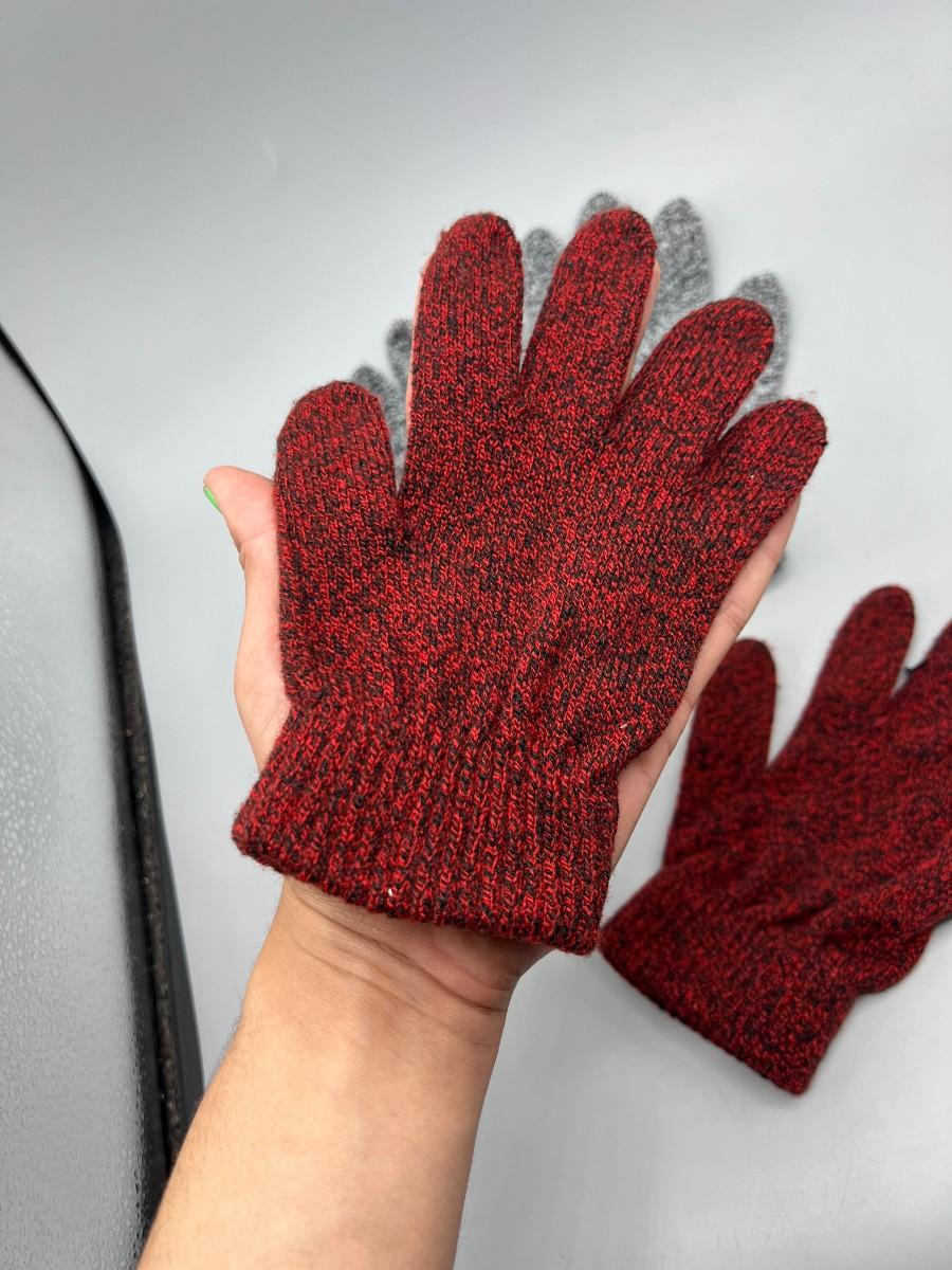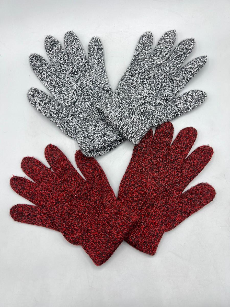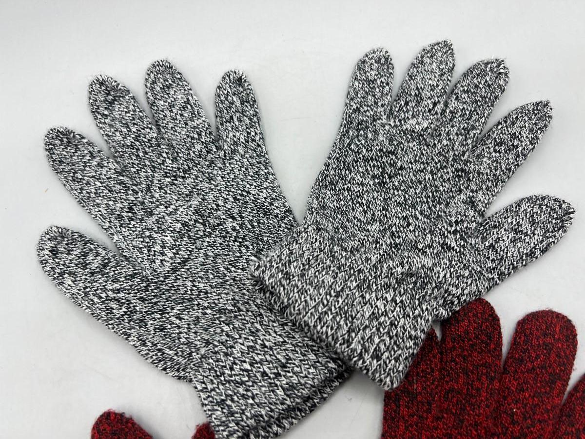 Pair of Gray & Red Warm Soft Knit Winter Gloves