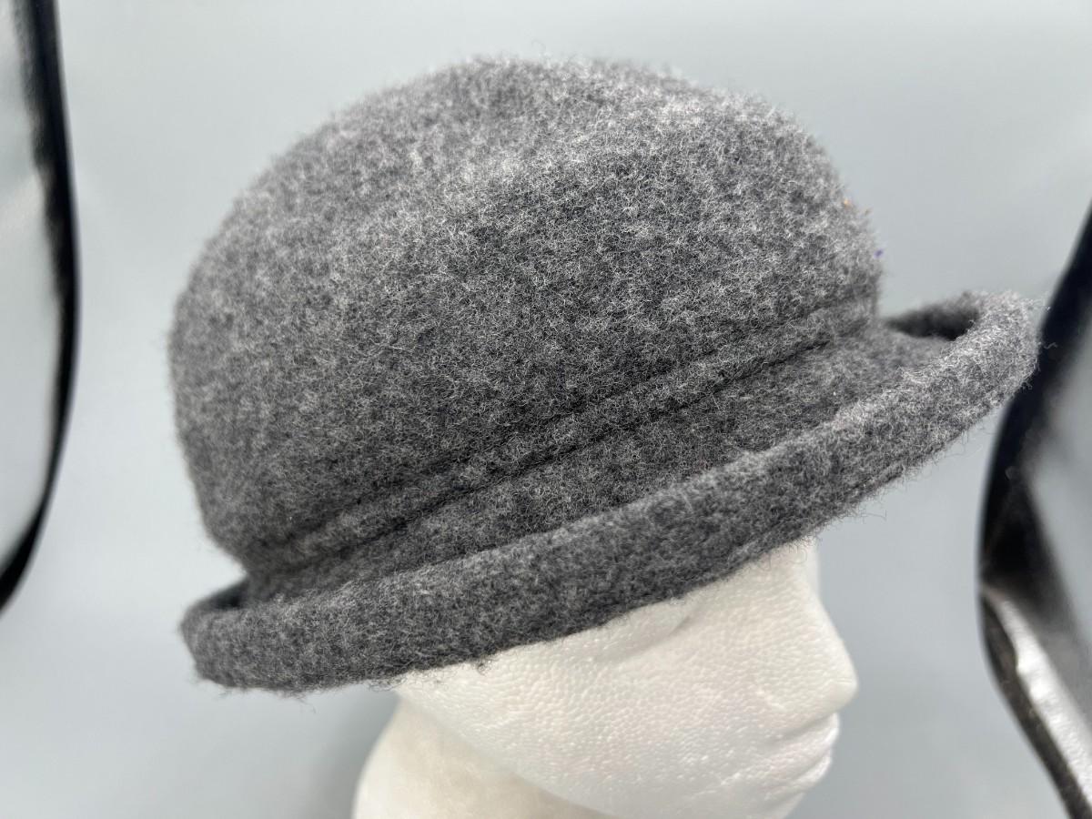 Vintage Wool Gray Womens Bowler Style Fashionable Cap Hat