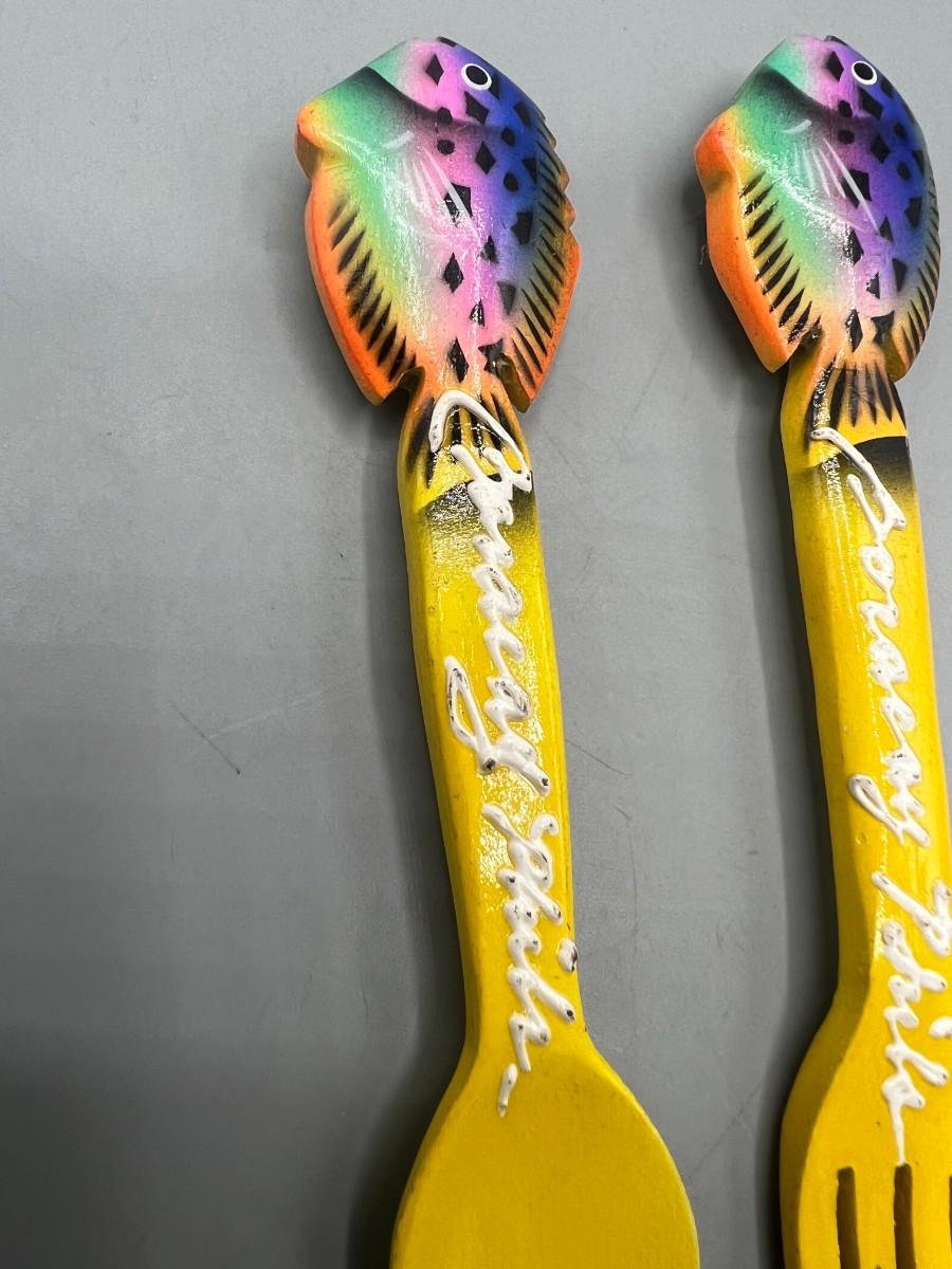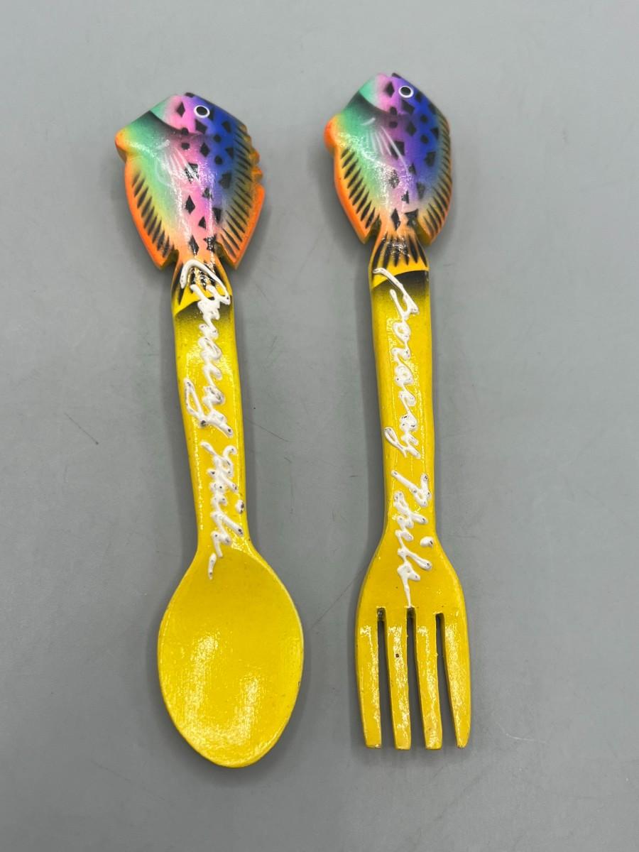 Pair of Retro Colorful Tropical Fish Magnetic Wooden Utensil Souvenirs