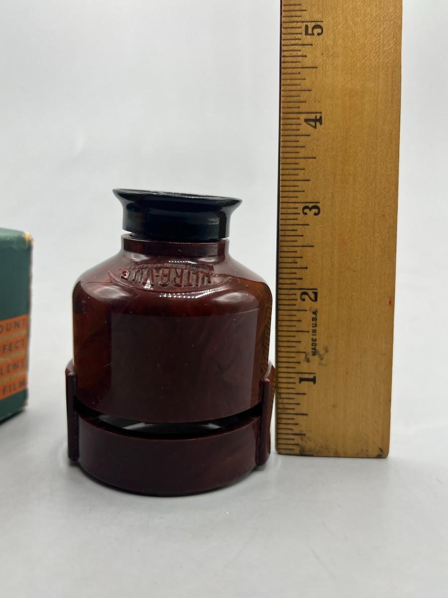 There is some vintage wear to the box and to the plastic light filter, but there is no significant damage and is in good useable or collectible condition.