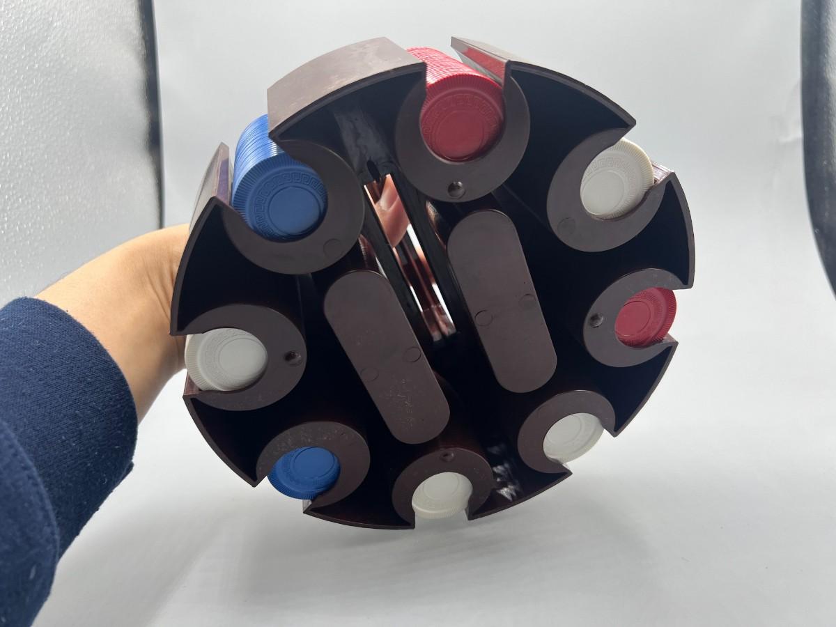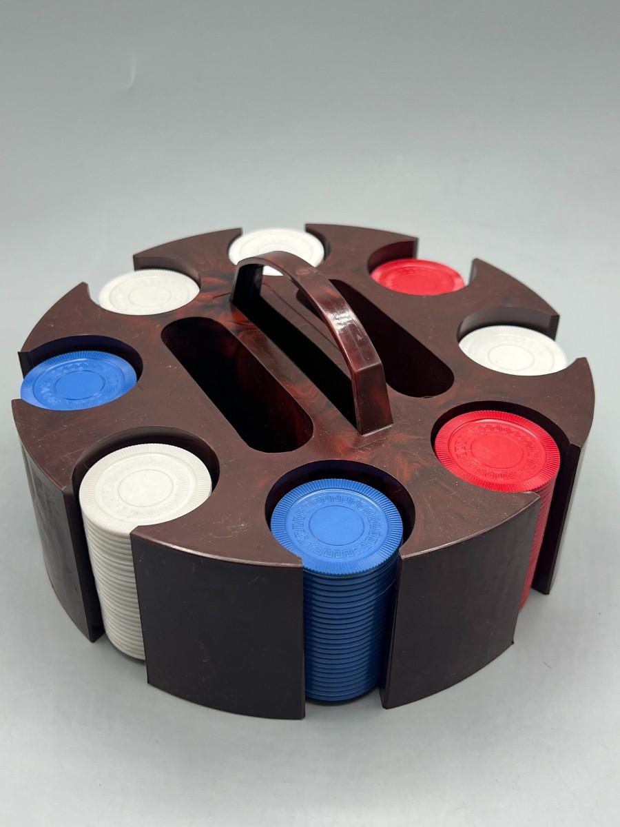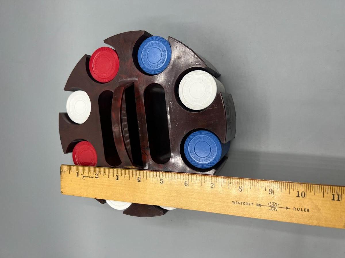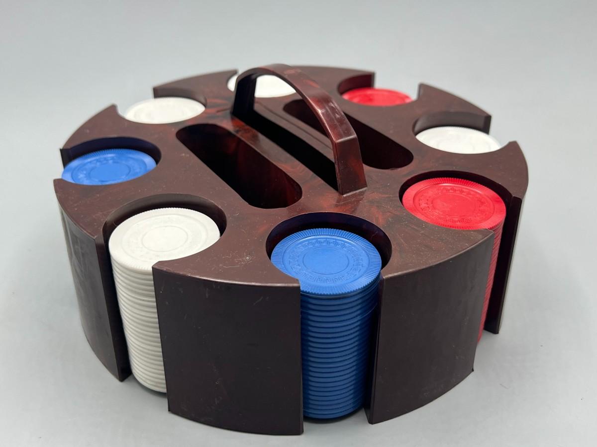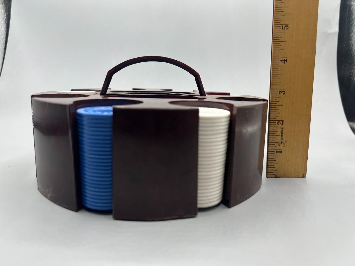 Retro Plastic Poker Chip Rack Caddy with Chips in Original Box