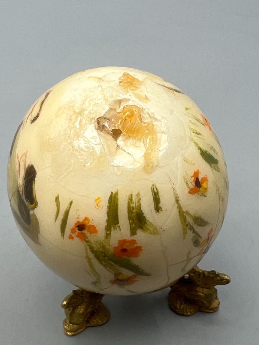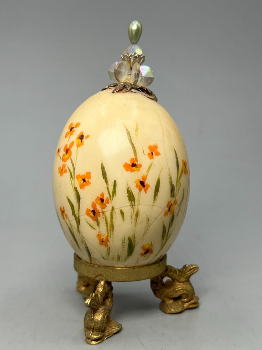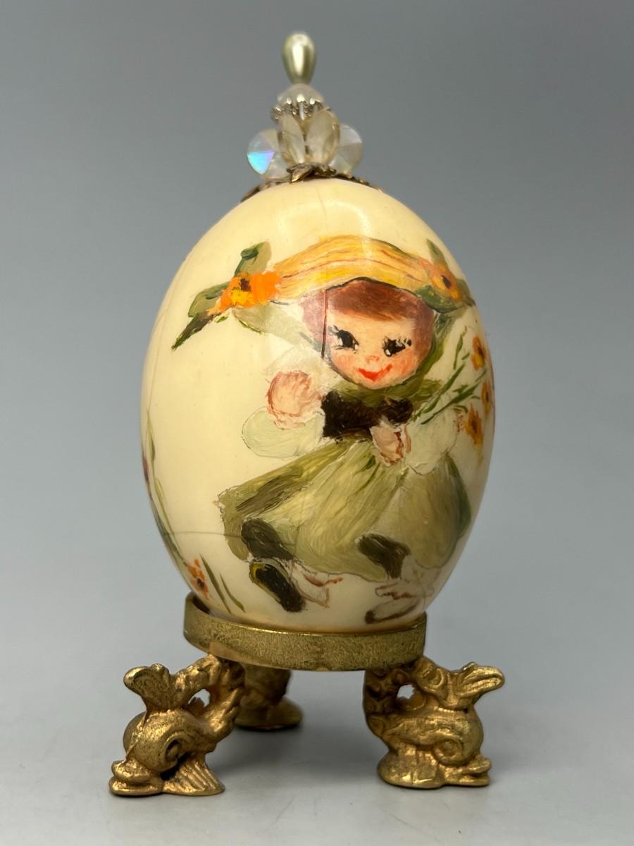 Vintage Egg Shell Art Mid Century Style Woman with Flowers & Egg Stand