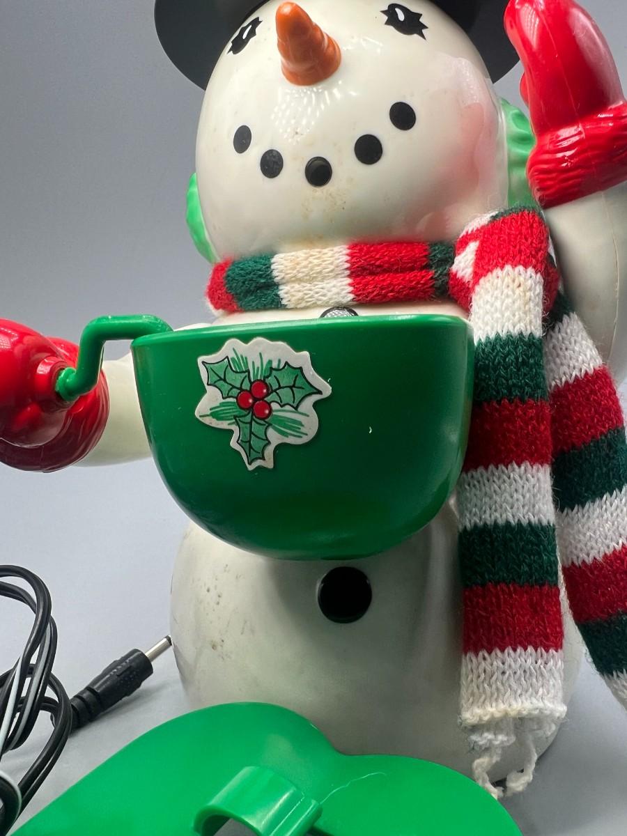 There is vintage wear to the snowman, but there is no significant damage. Has been plugged in and tested, and works perfectly.