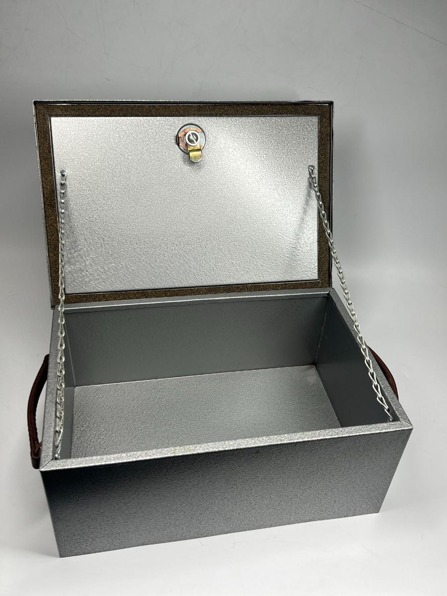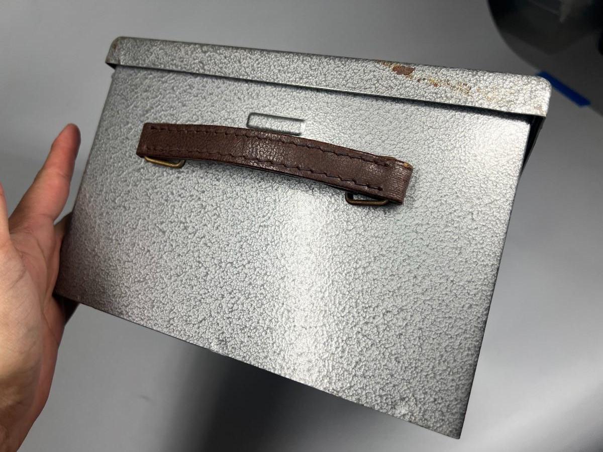 Vintage Heavy Metal Thick Lockbox with Faux Leather Handle Straps