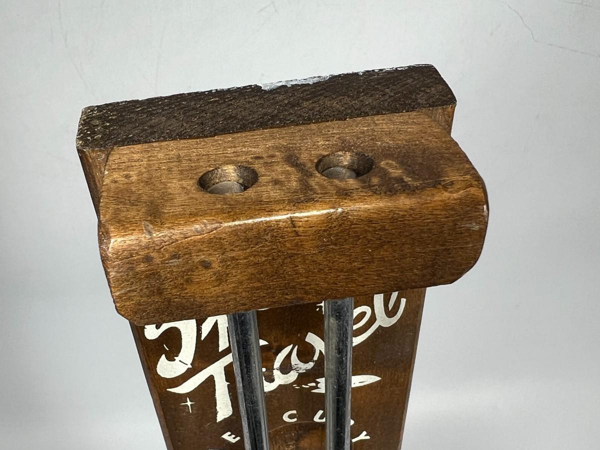 There is no damage to the wooden piece and is in good collectible condition. Does not come with the ball, check pictures for more details and for sizing.