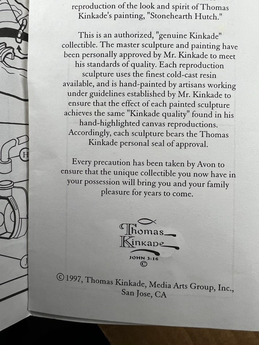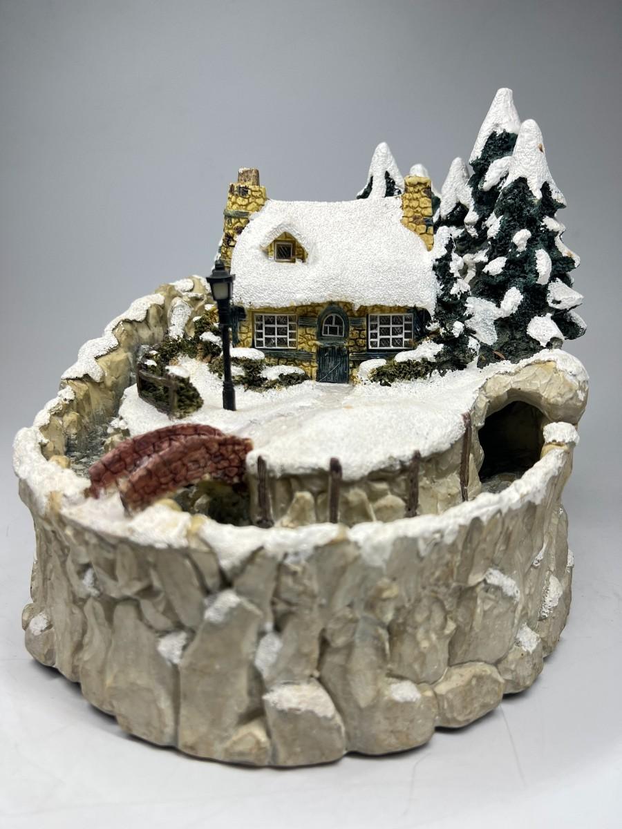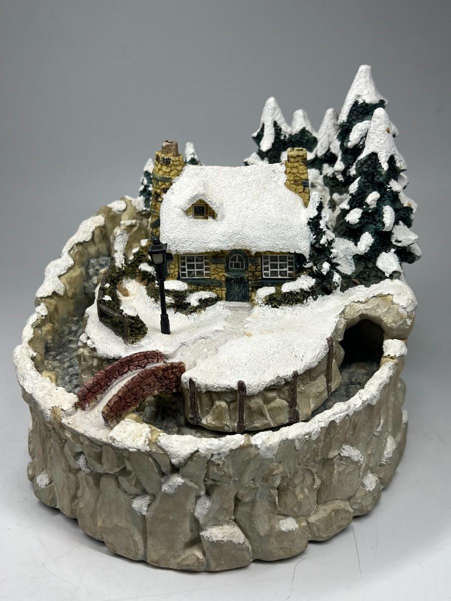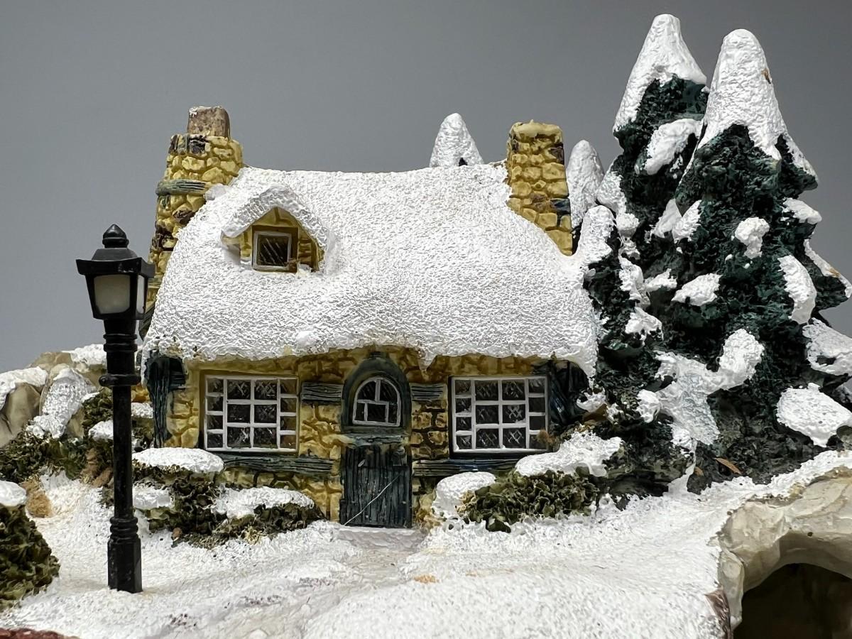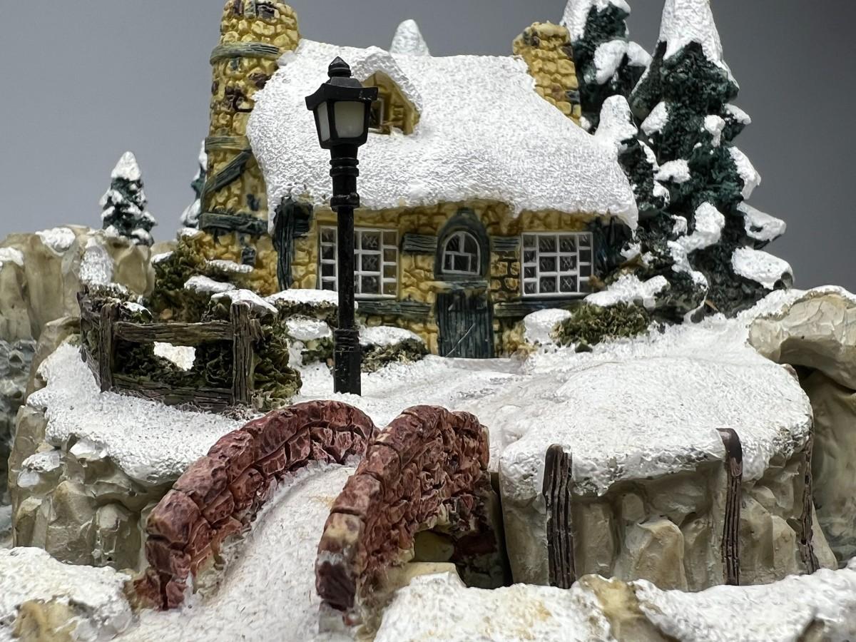 Retro Avon Thomas Kinkade Waterfall Cozy Christmas Cottage Stonehearth Hutch Figurine Sculpture