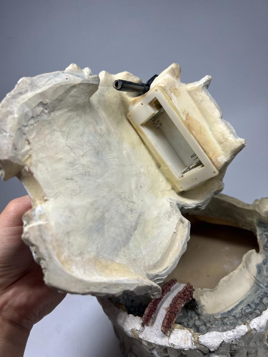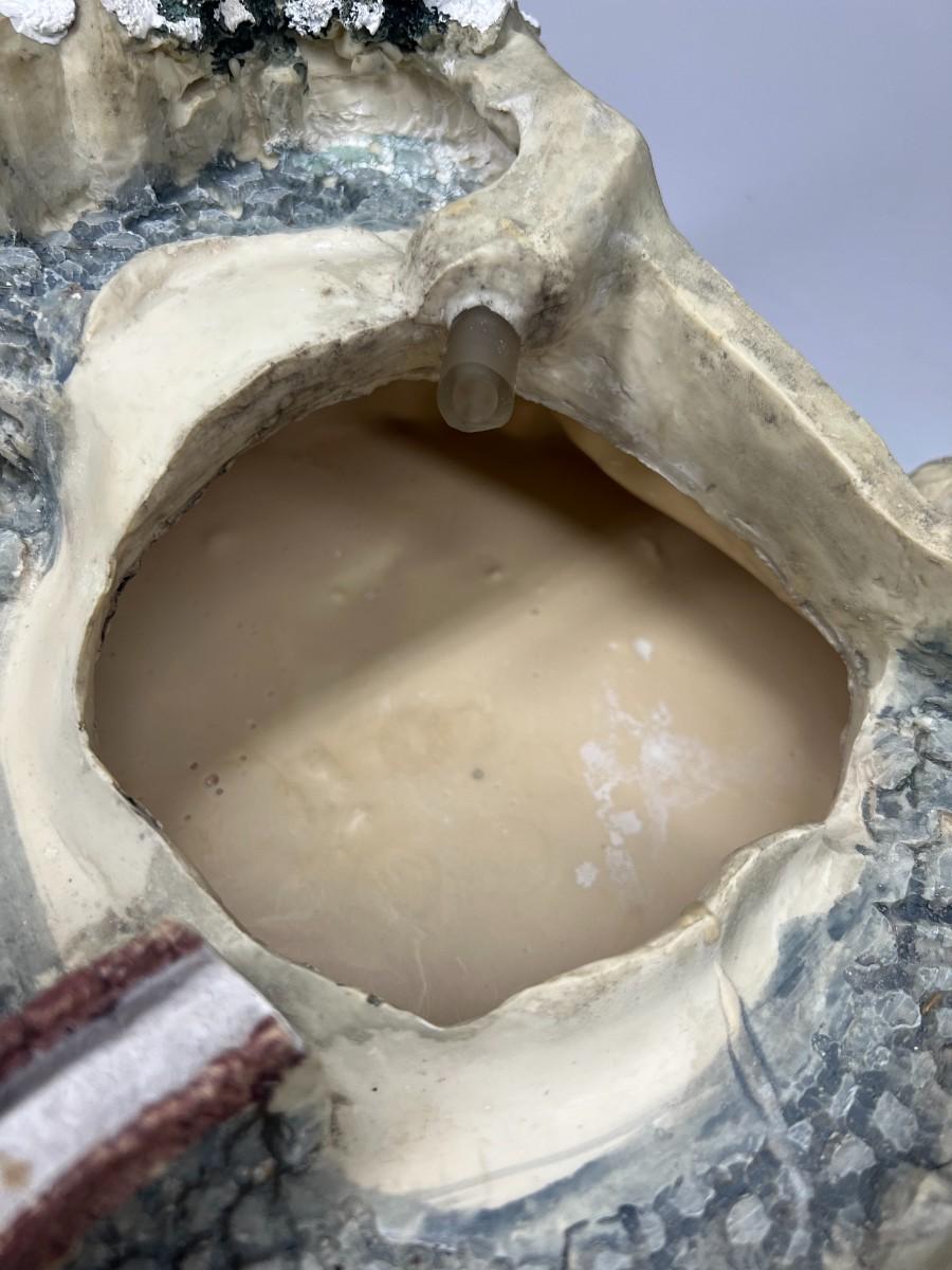 There is no damage to the sculpture and is in good dispayable condition. The pump and other accessories that would make the waterfall work is NOT included.