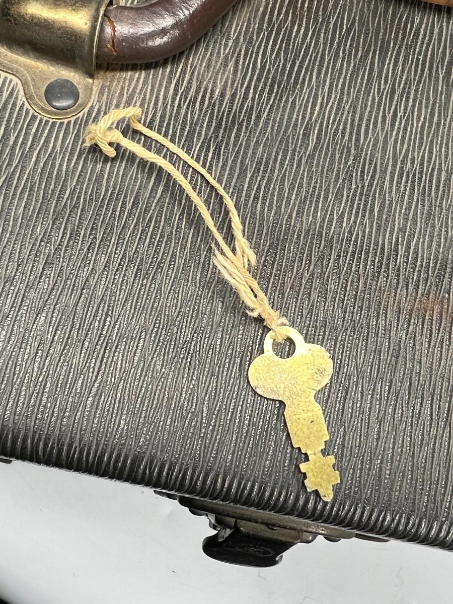 Turns on and functions perfectly when plugged in. There is noticeable wear to the case. Also comes with the key that is used to lock the projector case.