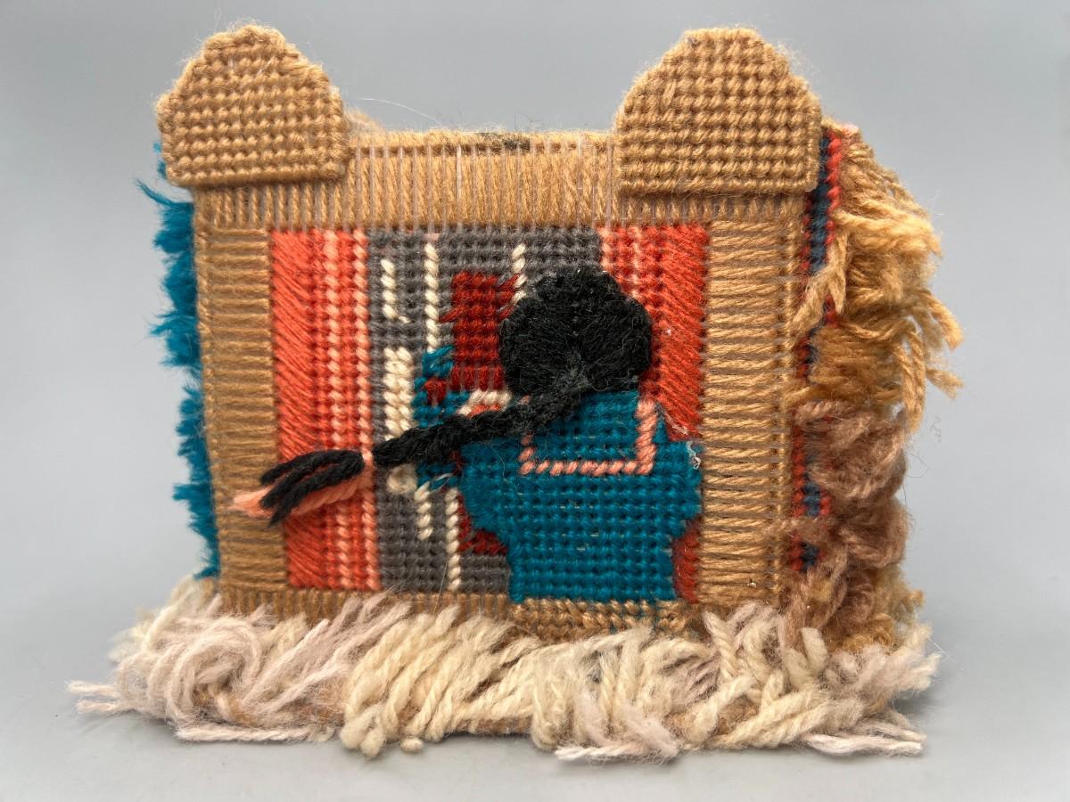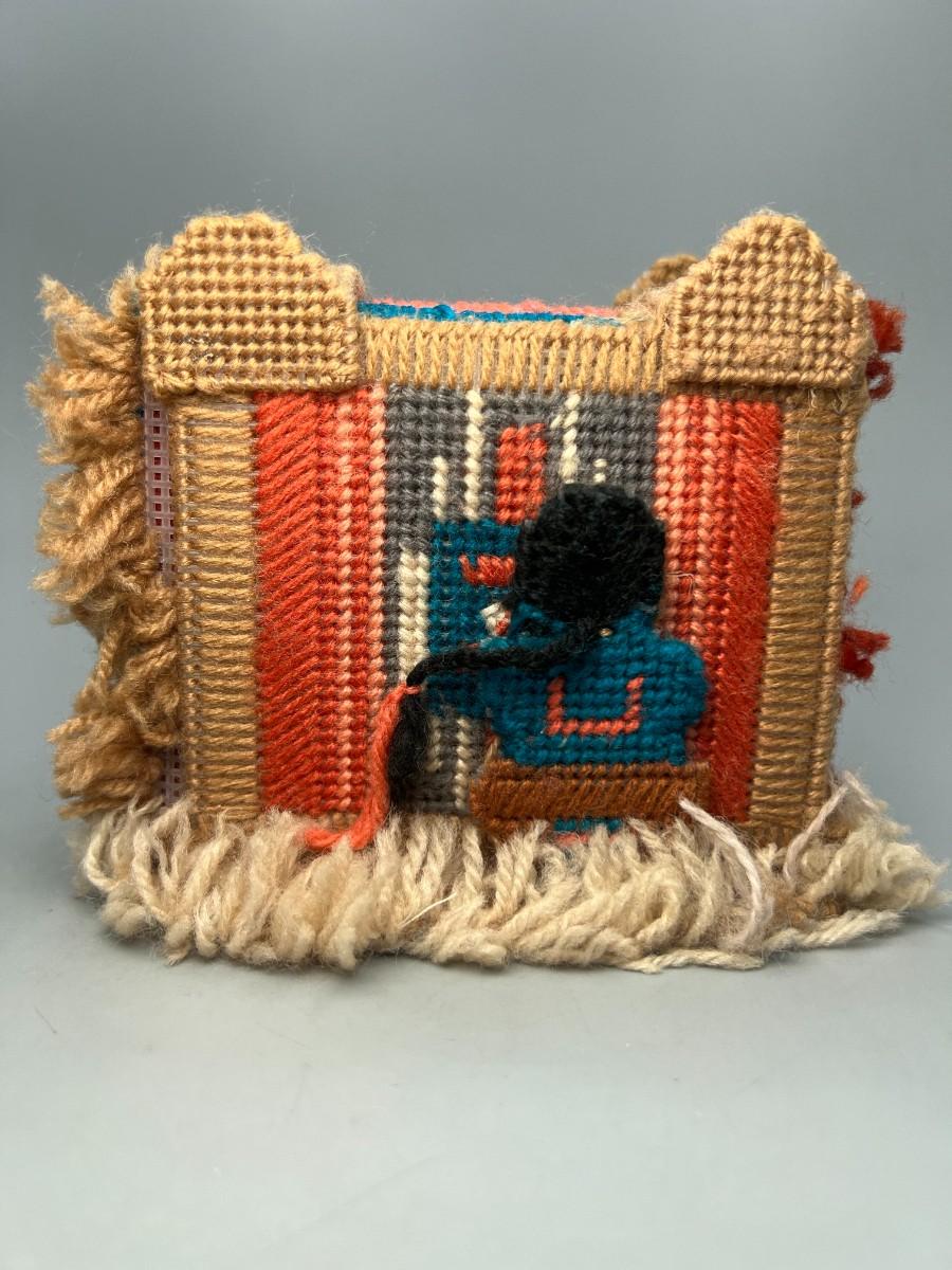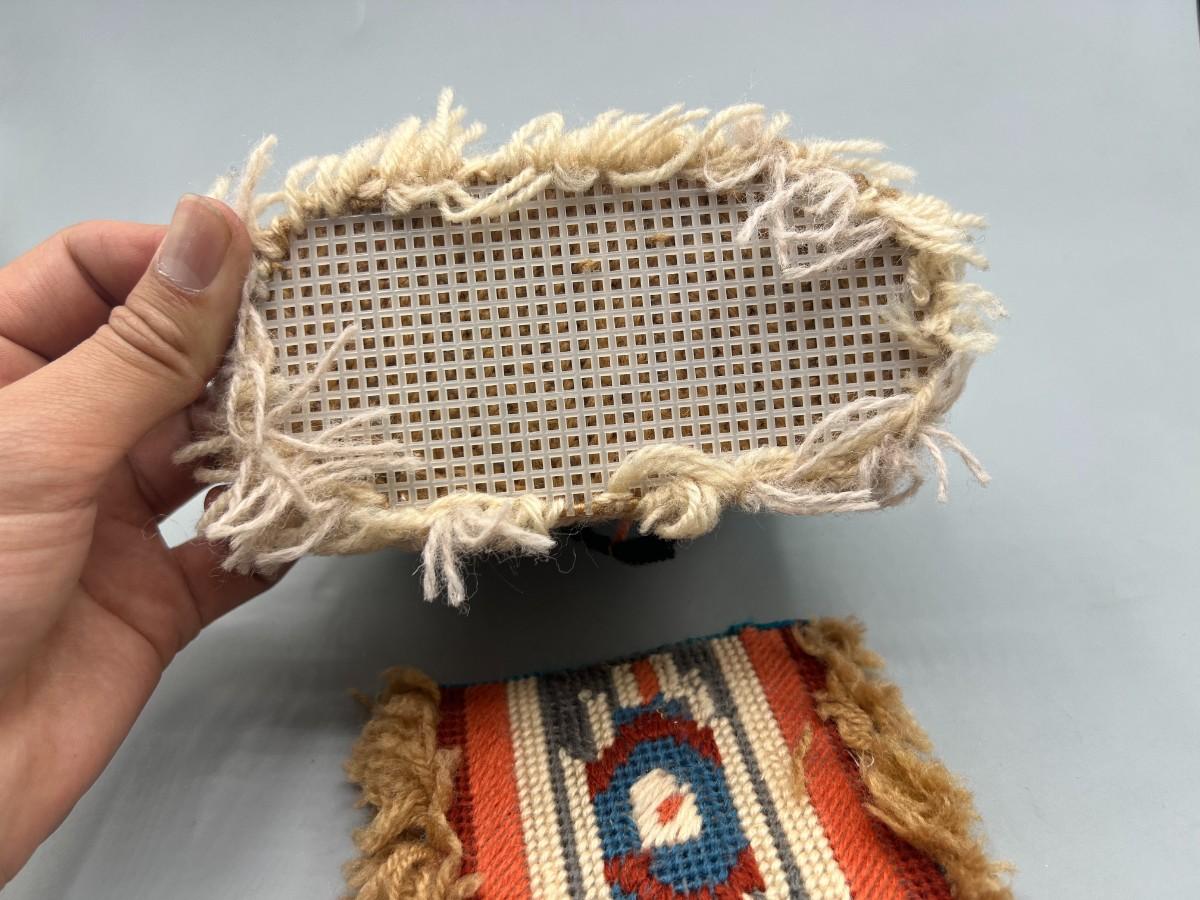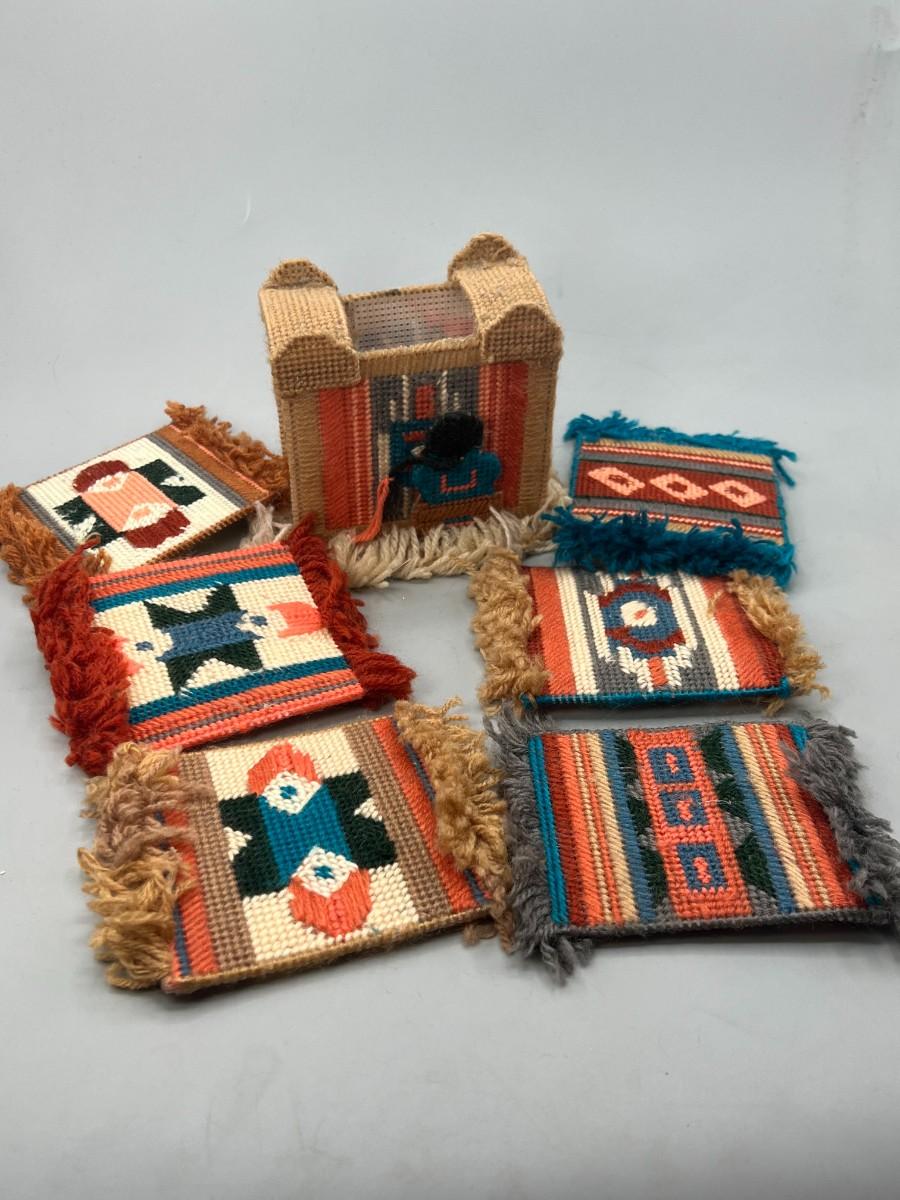 Vintage Southwestern Native Folk Pattern Crocheted Fringed Beverage Coaster Set