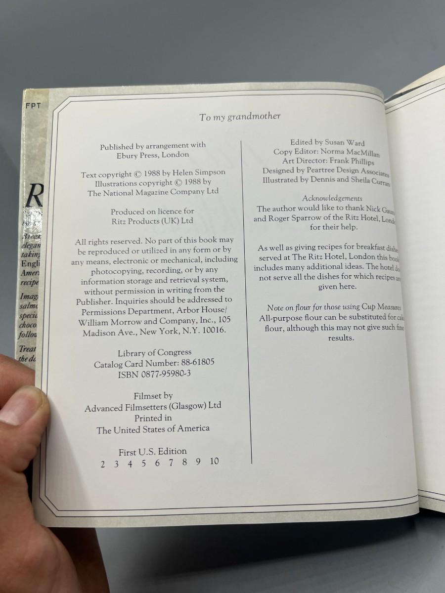 Retro The London Ritz Book of English Breakfasts by Helen Simpson Cookbook