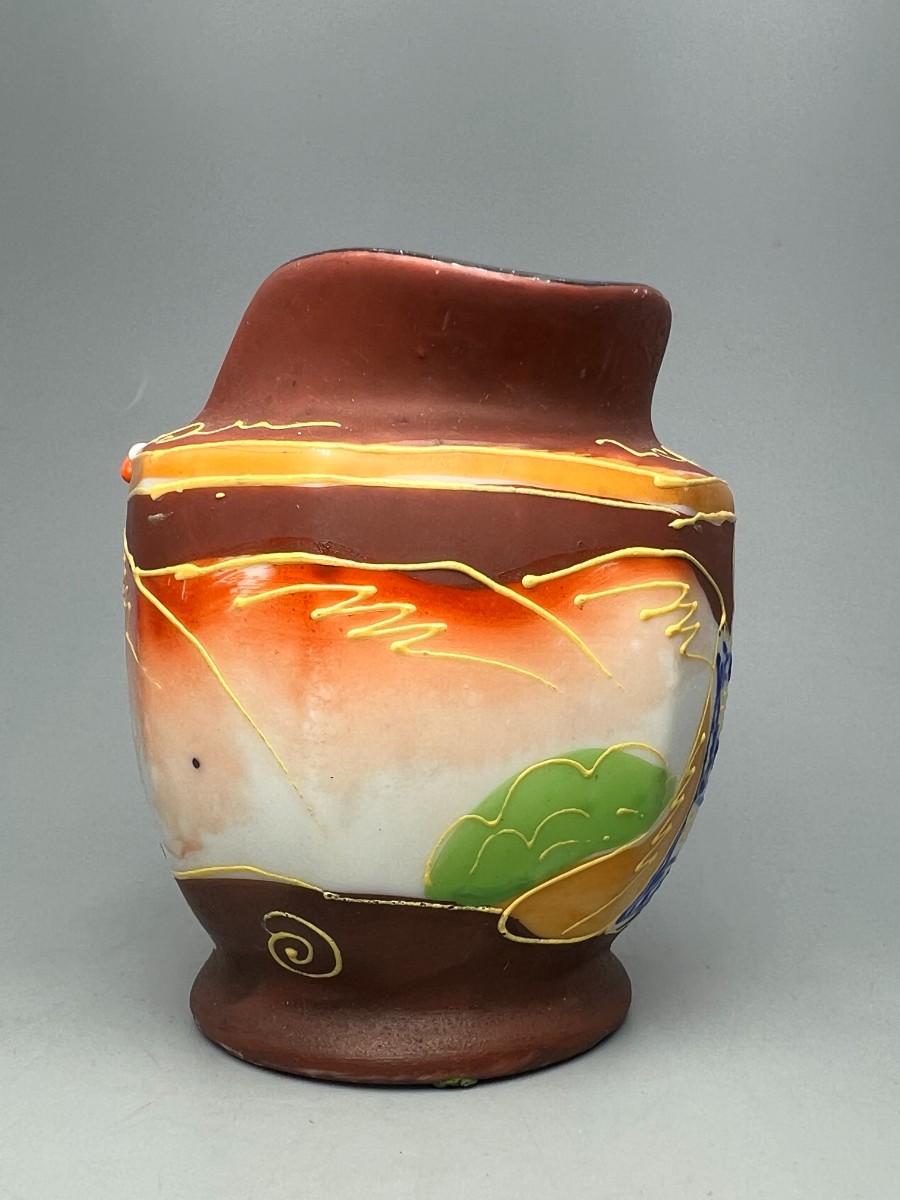 Vintage Japanese Miniature Ceramic Chikusa Satsuma Geisha Asian Art Pitcher. In good condition. Made in Japan. About 3" size. Some dust from previous display.