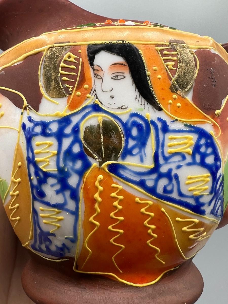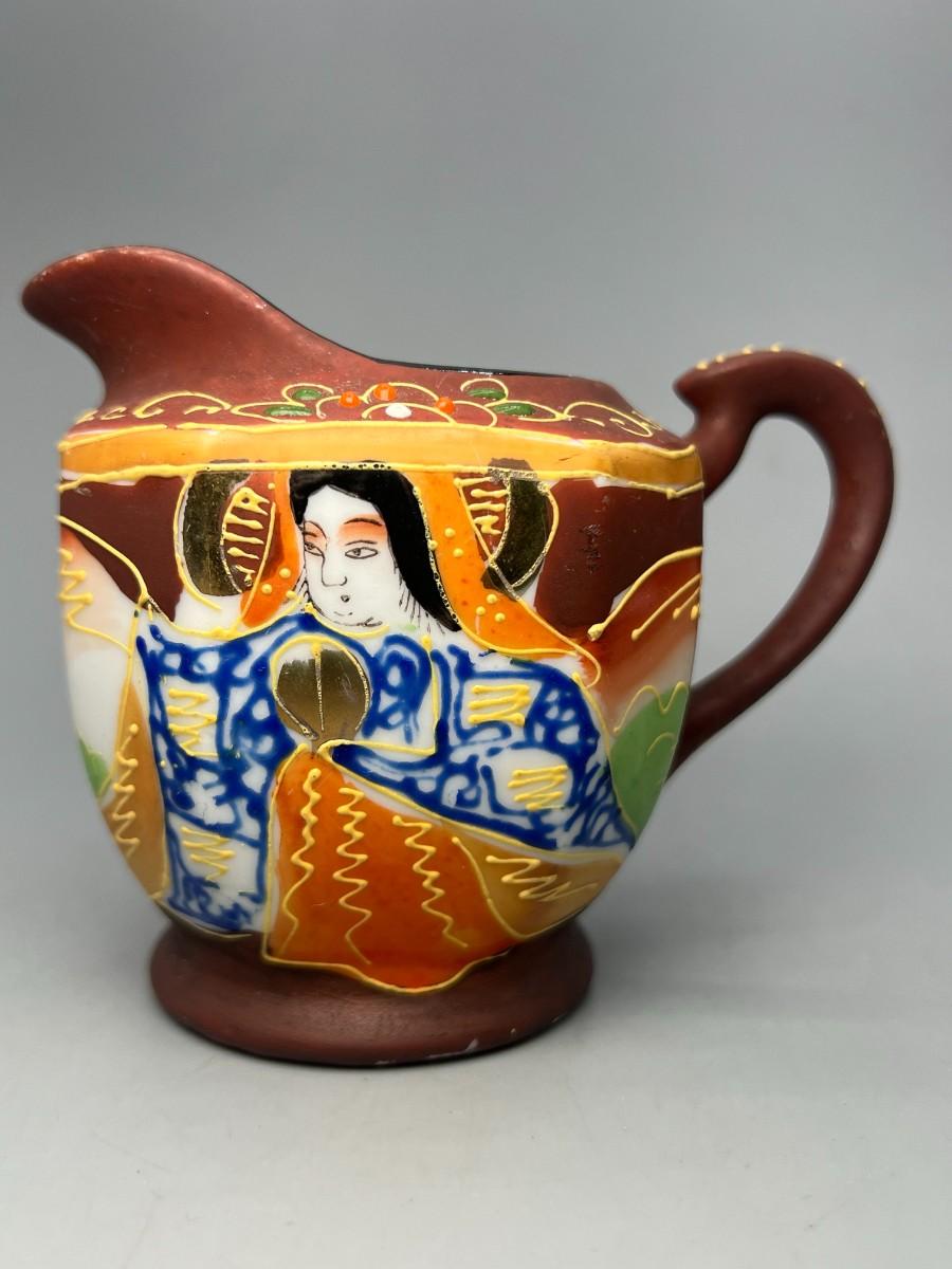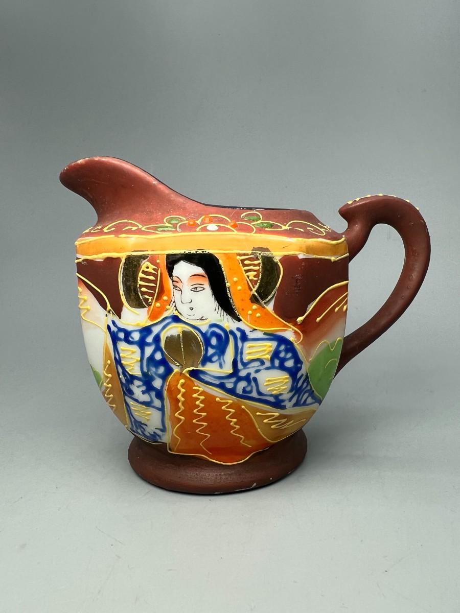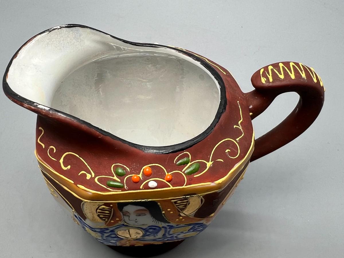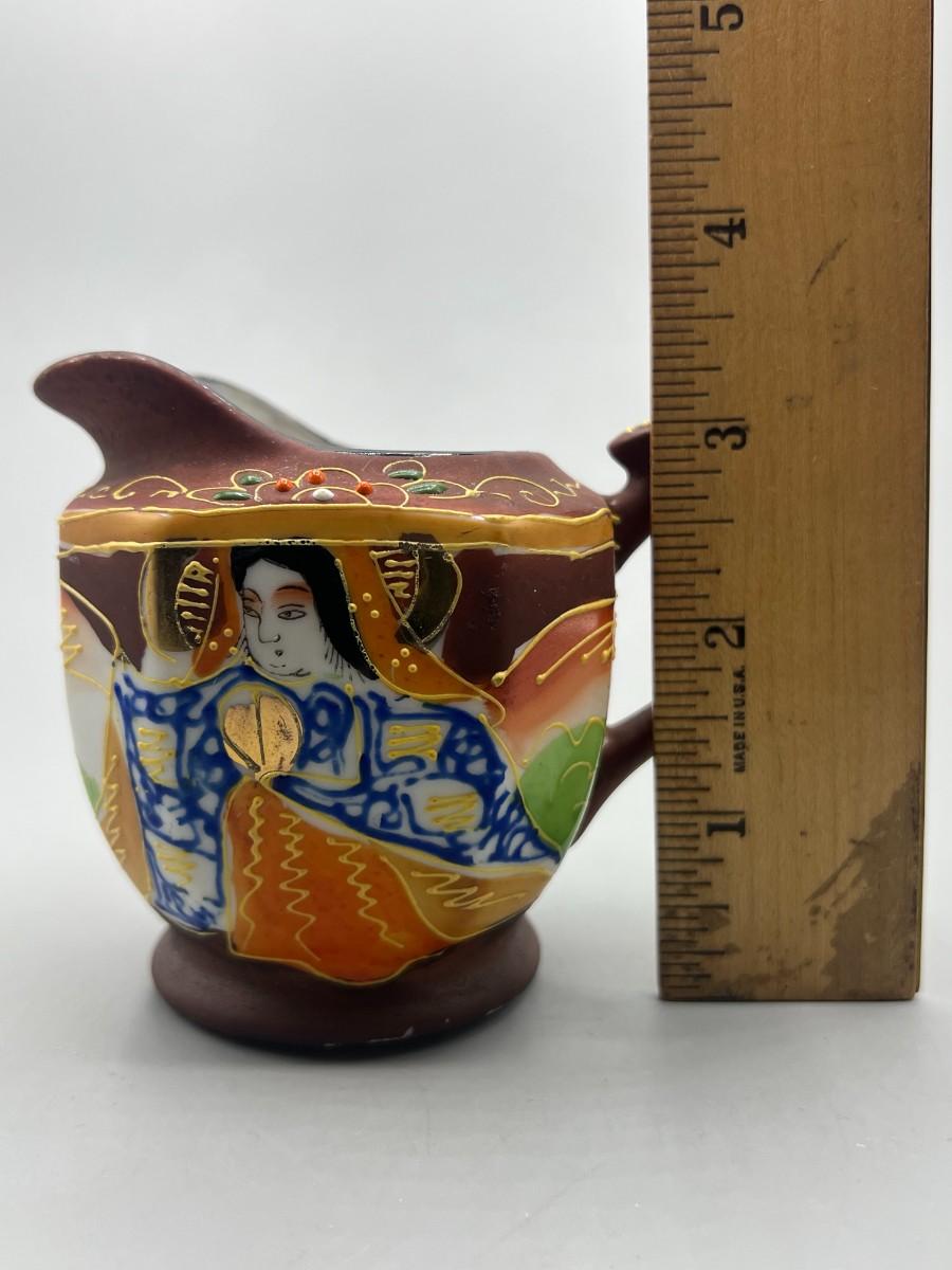 Vintage Japanese Miniature Ceramic Chikusa Satsuma Geisha Asian Art Pitcher