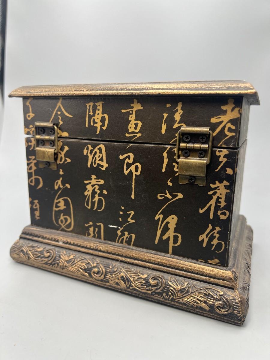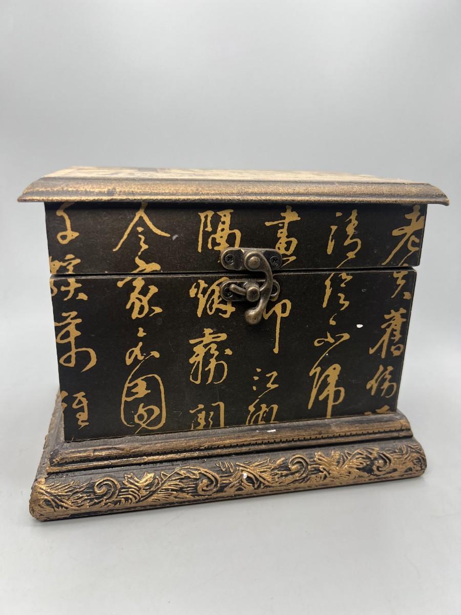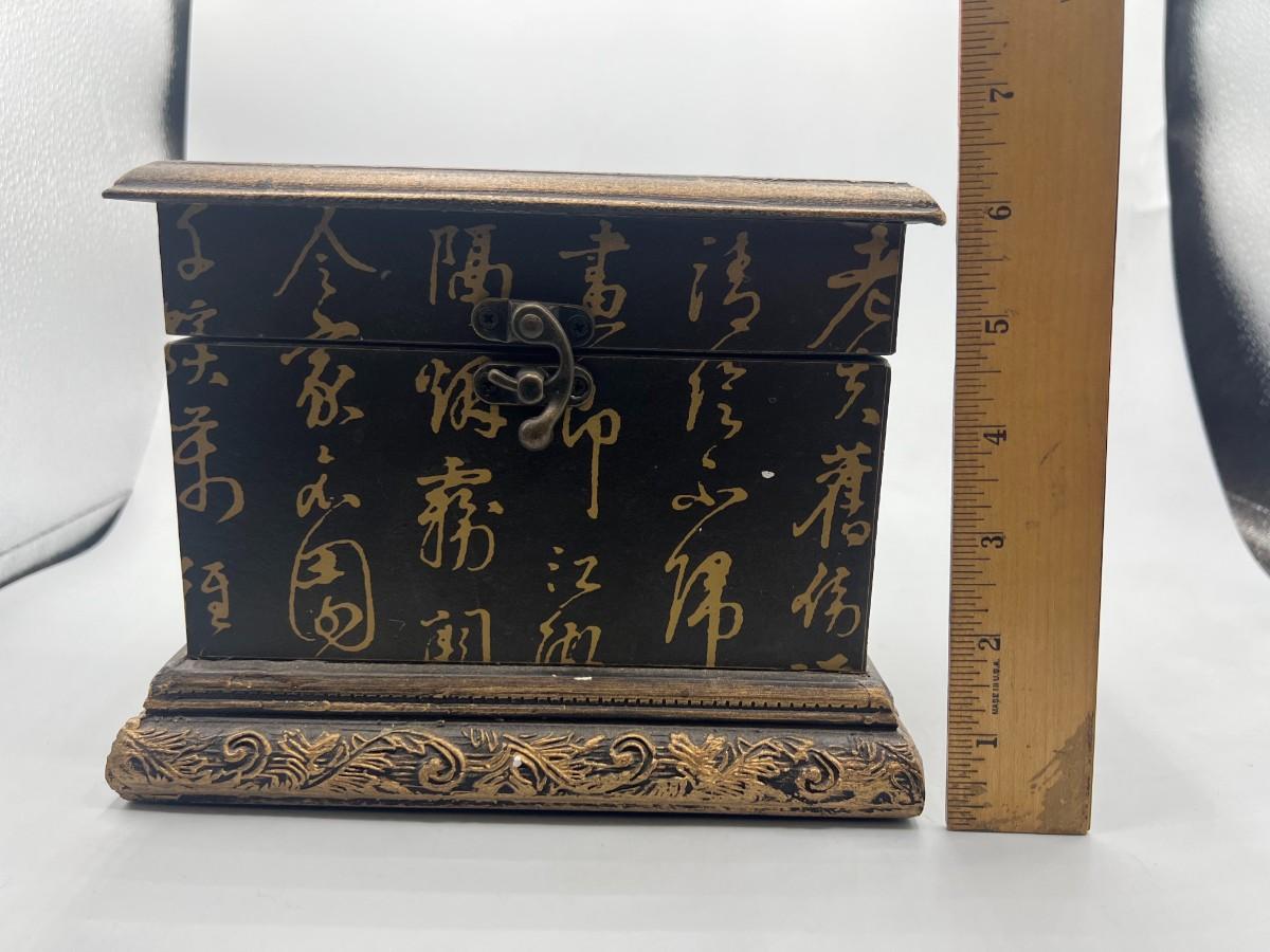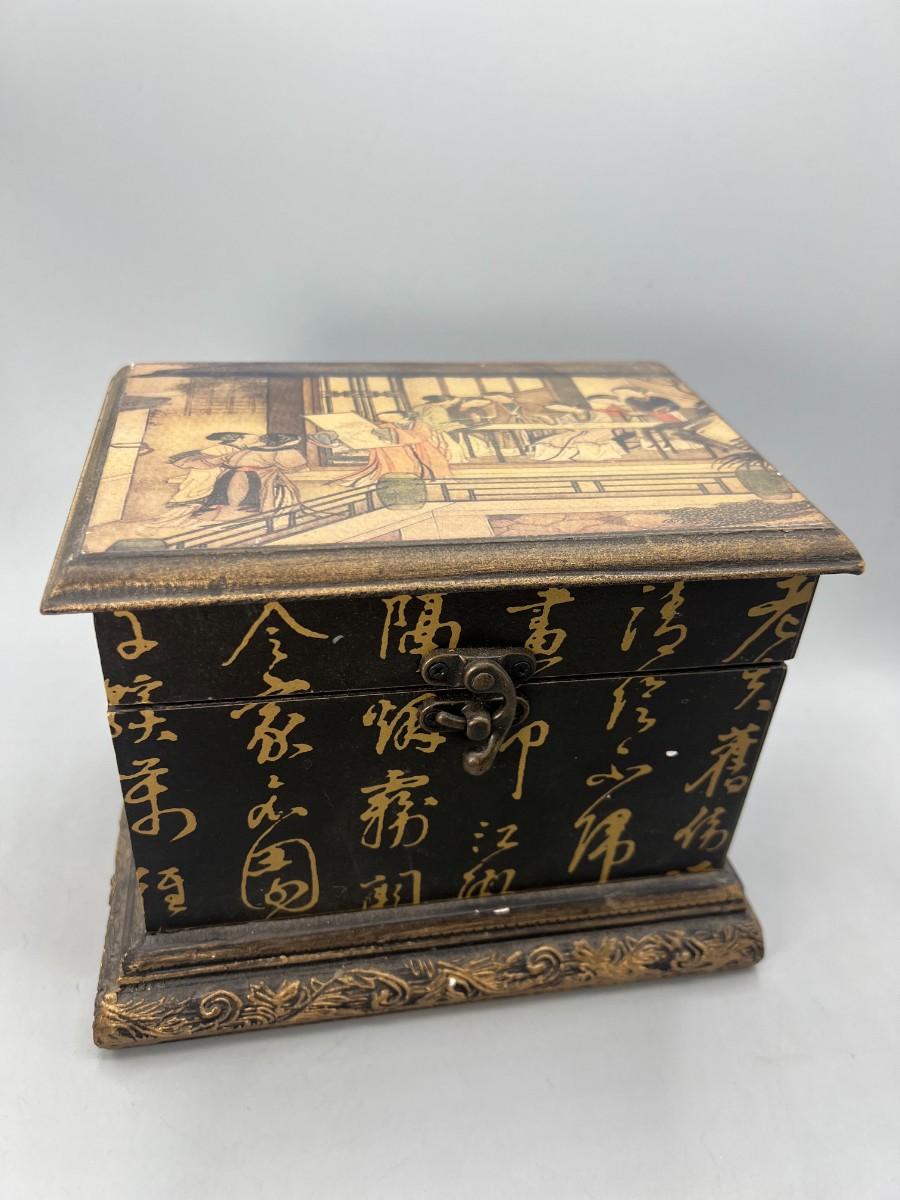 Vintage Asian Art Hinged Lid Trinket Box Chest Made in China
