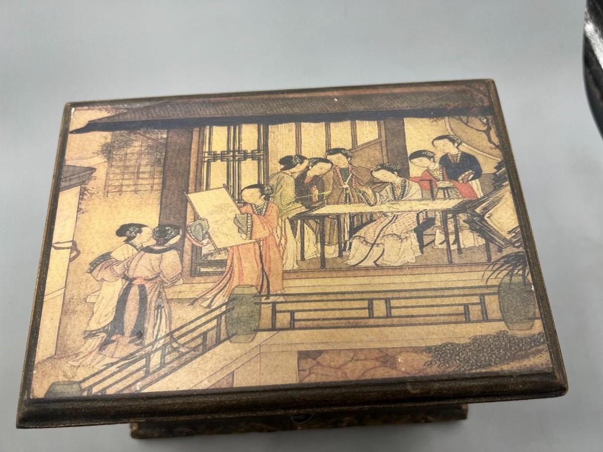 Vintage Asian Art Hinged Lid Trinket Box Chest Made in China. In good vintage condition. About 6" size.