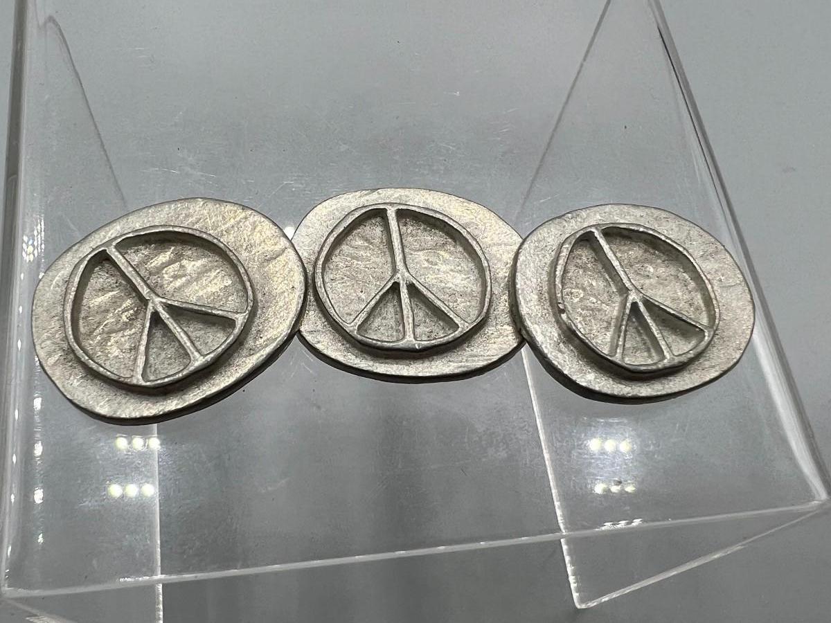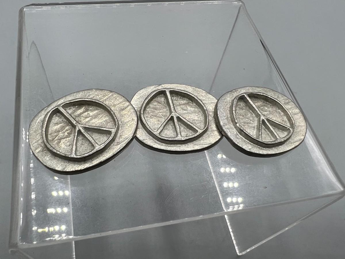 Set of Three Cast Metal Peace Sign Symbol Medallions