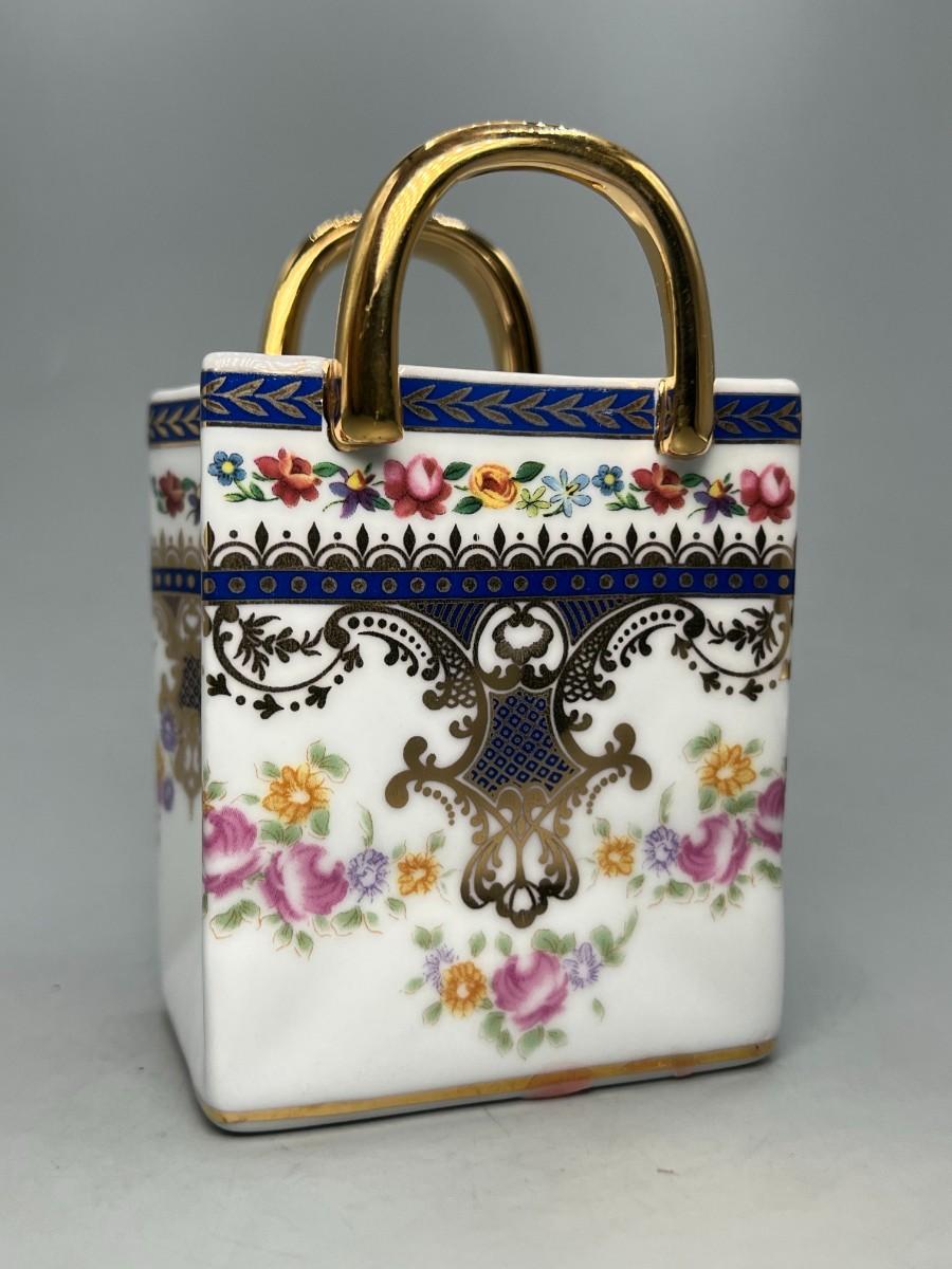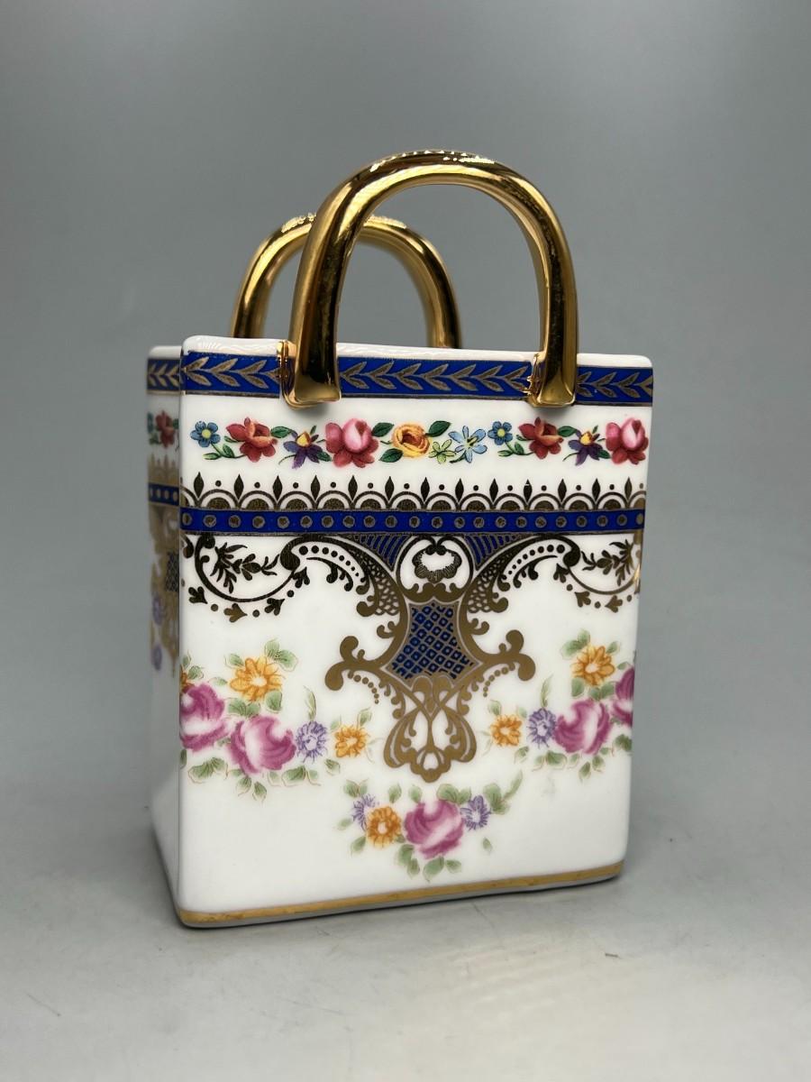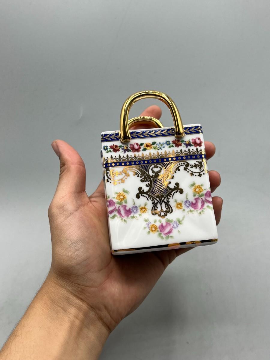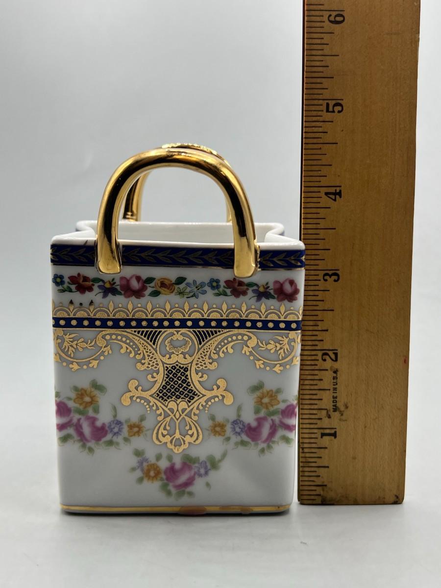 Vintage Small Ceramic Porcelain China Purse Handbag Shaped Vase Pencil Holder Figurine