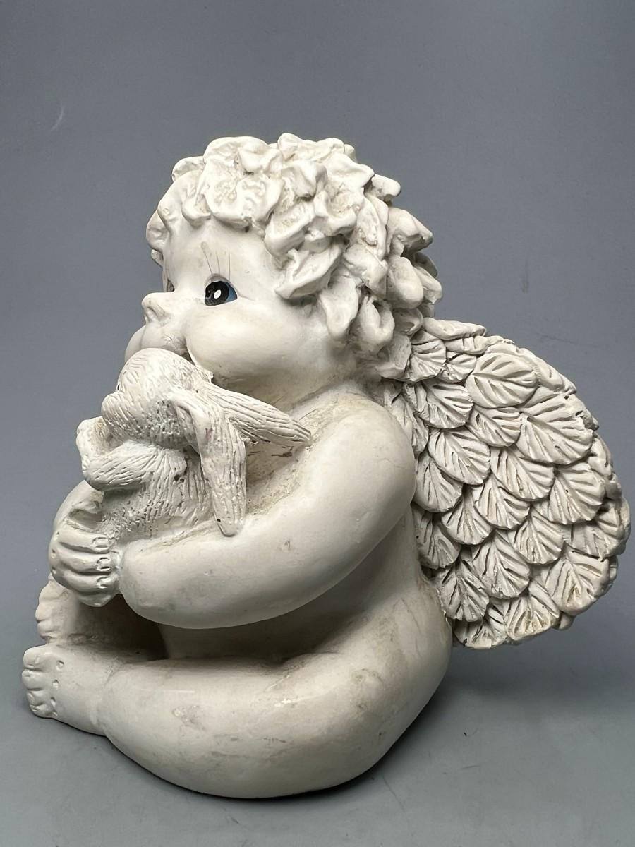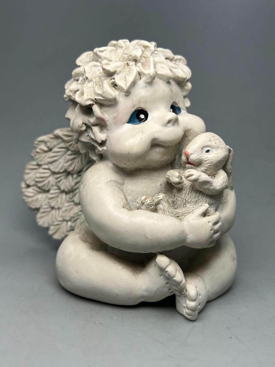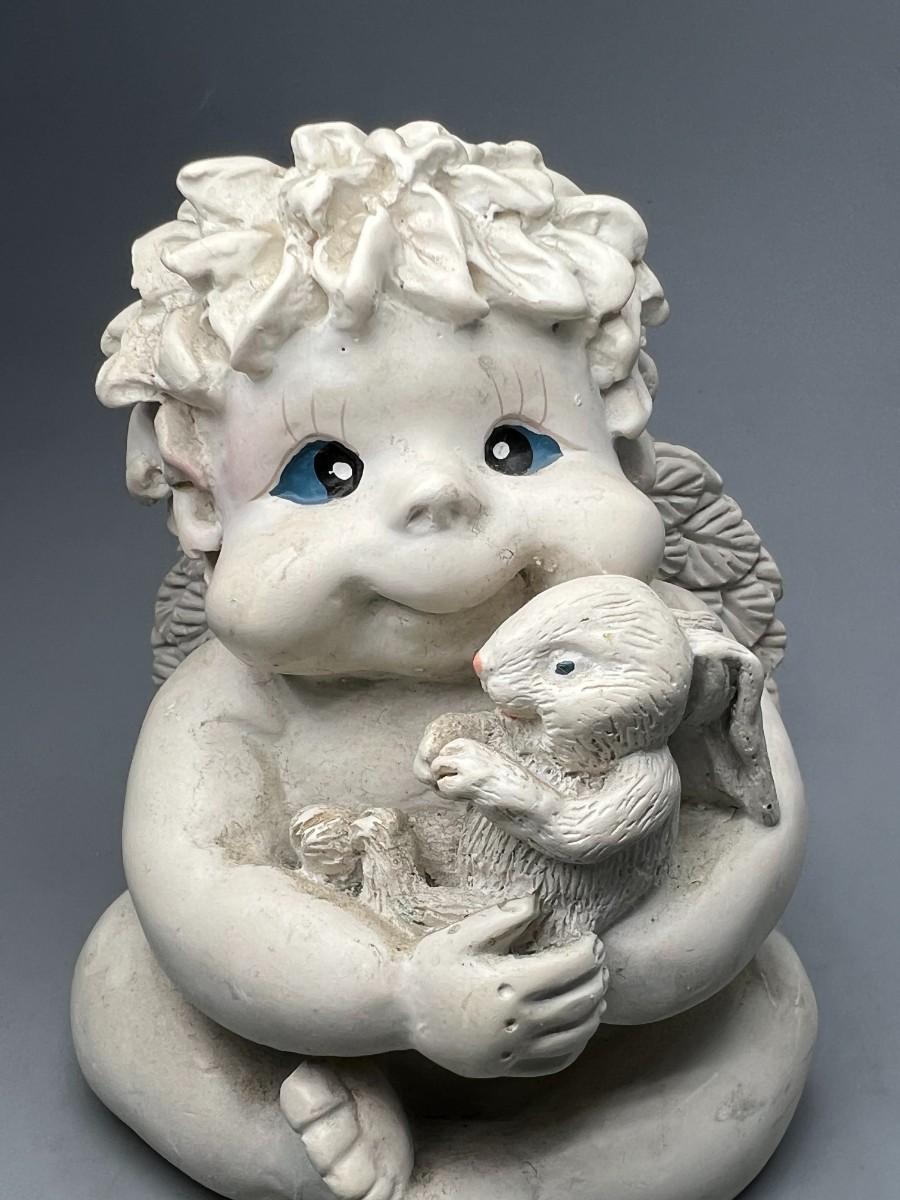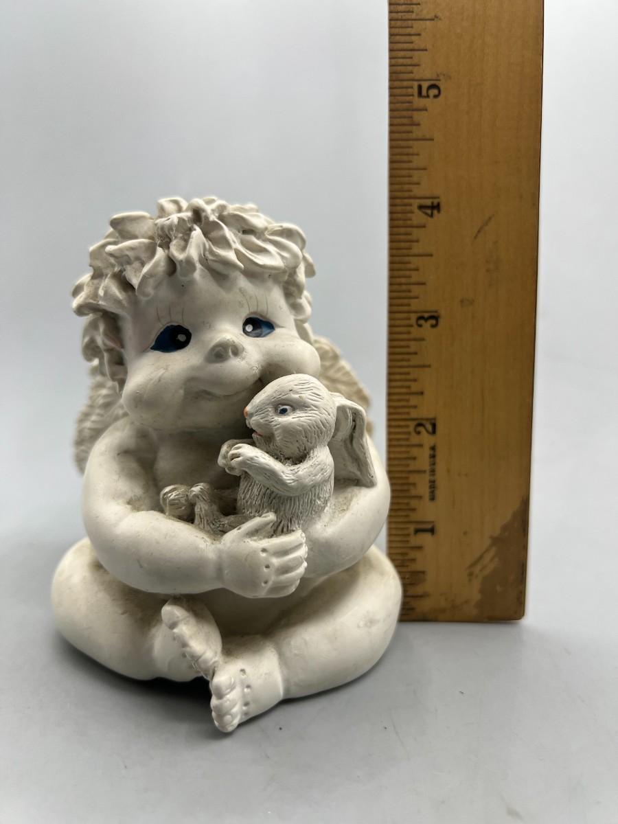 Dreamsicles Blue Eyed Angel Cherub Figurine Holding Cuddling Bunny Rabbit. In good condition. About 4" size.