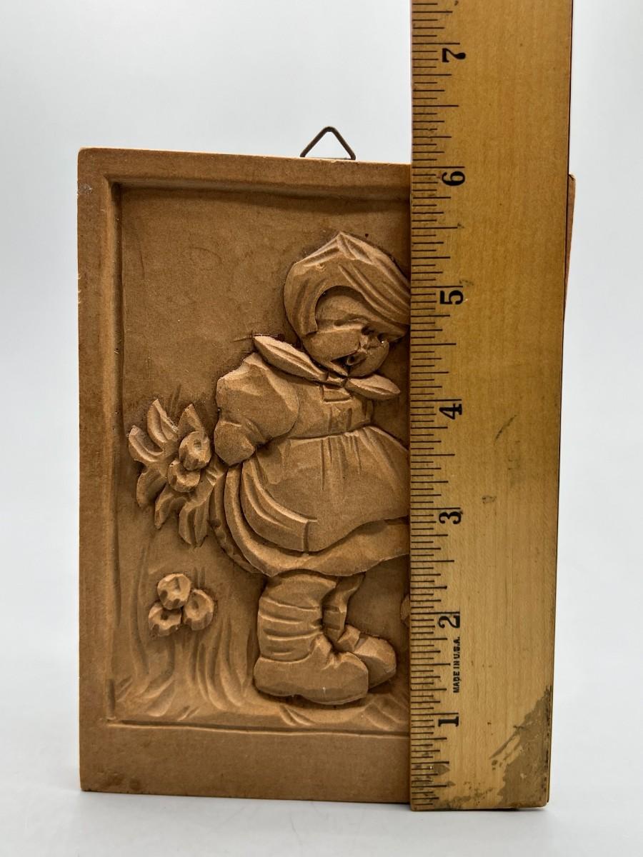 Vintage Carved Hummel Like Girl Wood Hanging Art