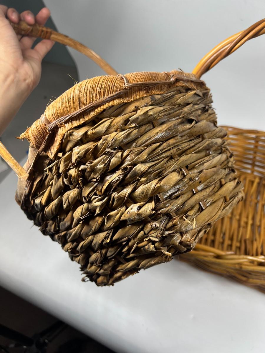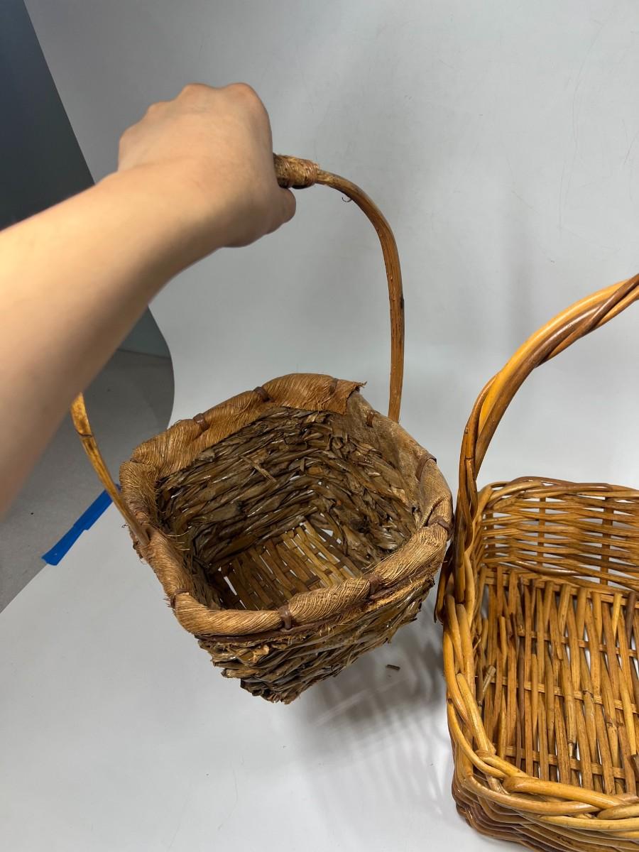 Rustic Woven Reed Handled Basket Lot. In good, aged condition.