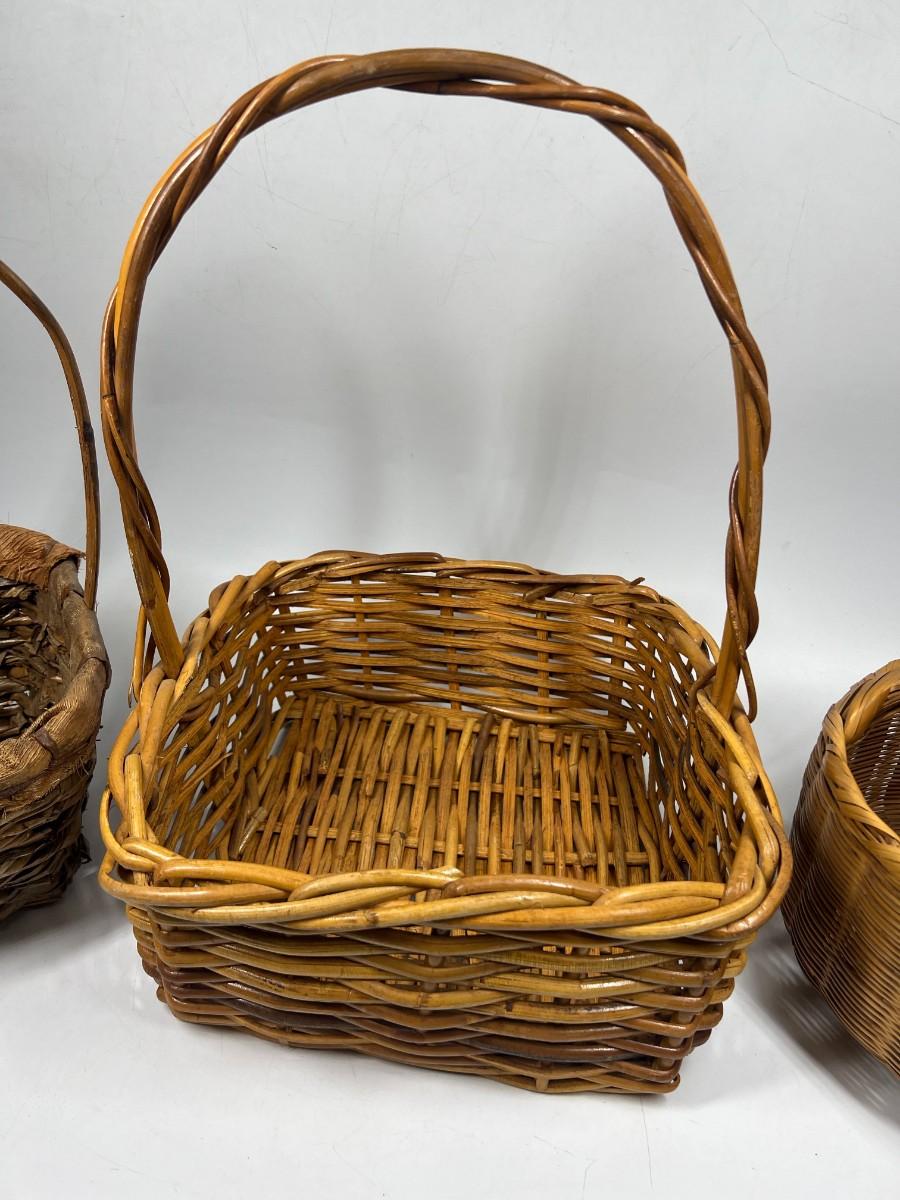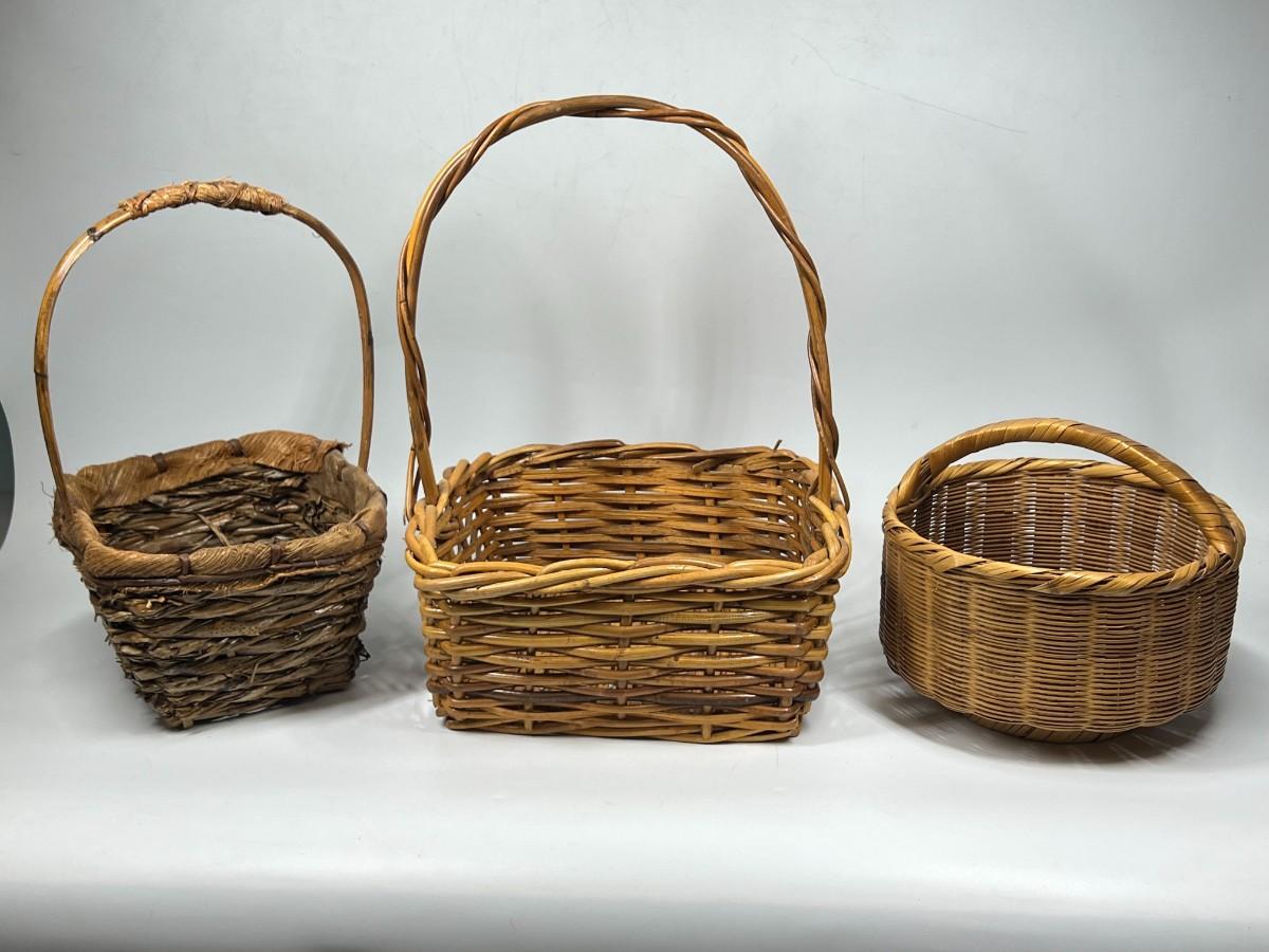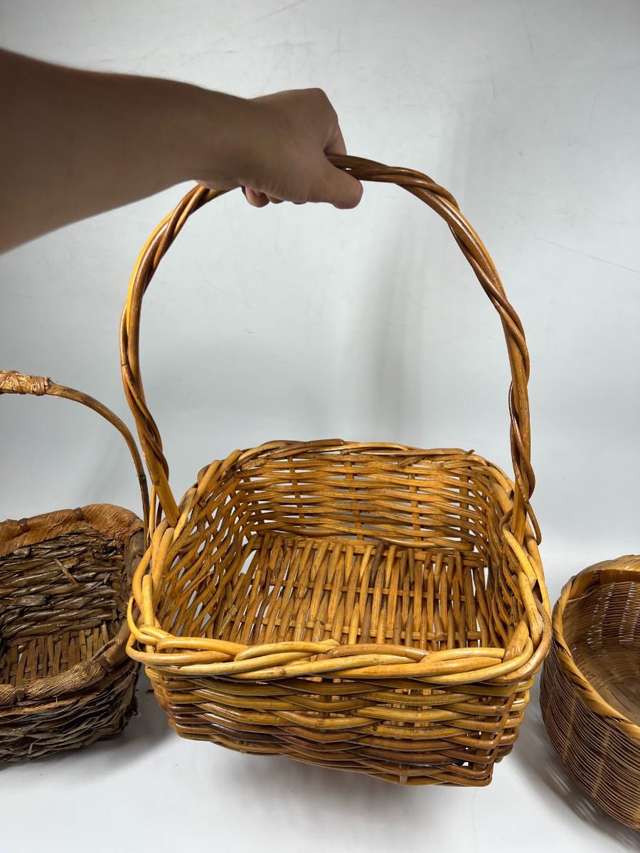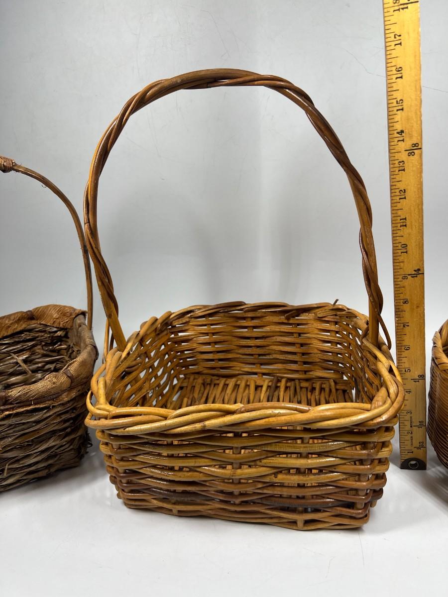 Rustic Woven Reed Handled Basket Lot