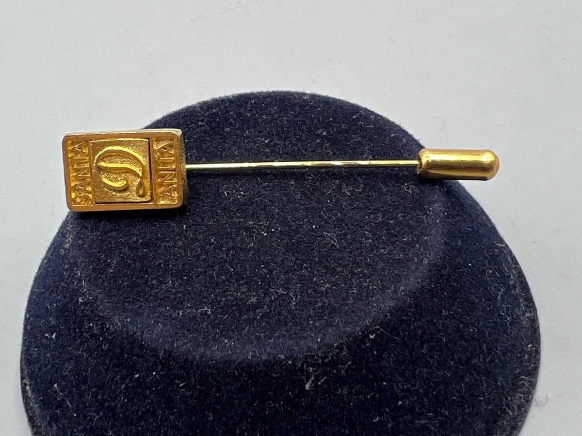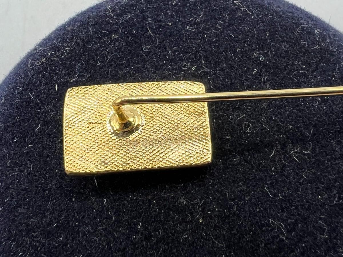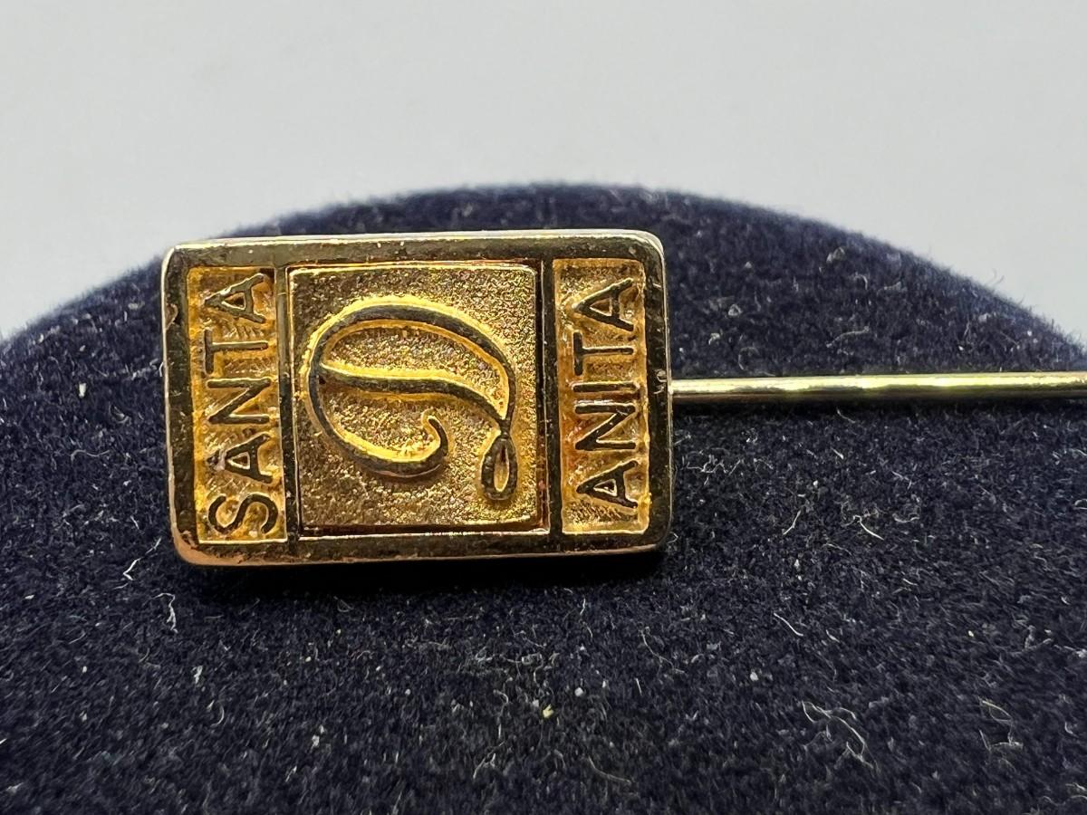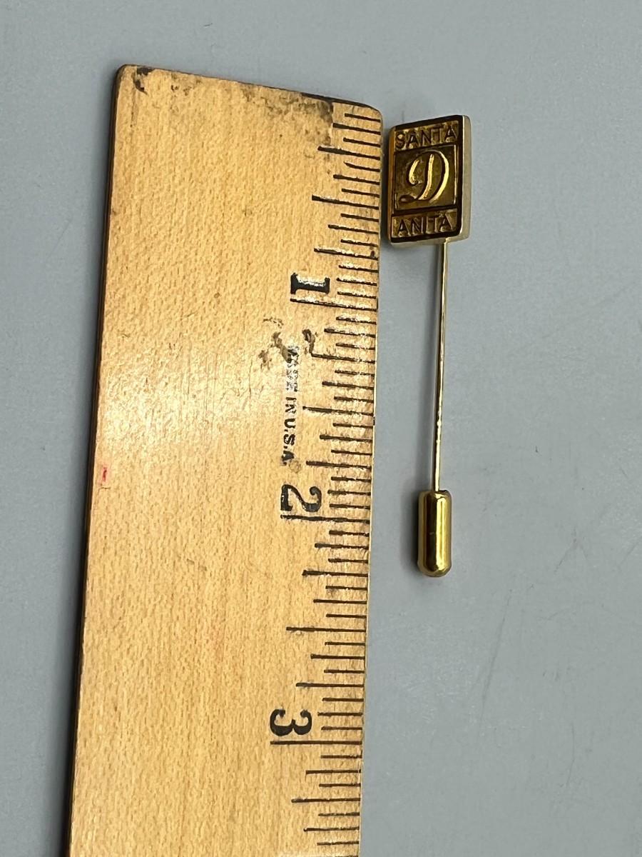 "D" Initial Santa Anita Lapel Tie Stick Pin. Gold tone metal. Good condition.