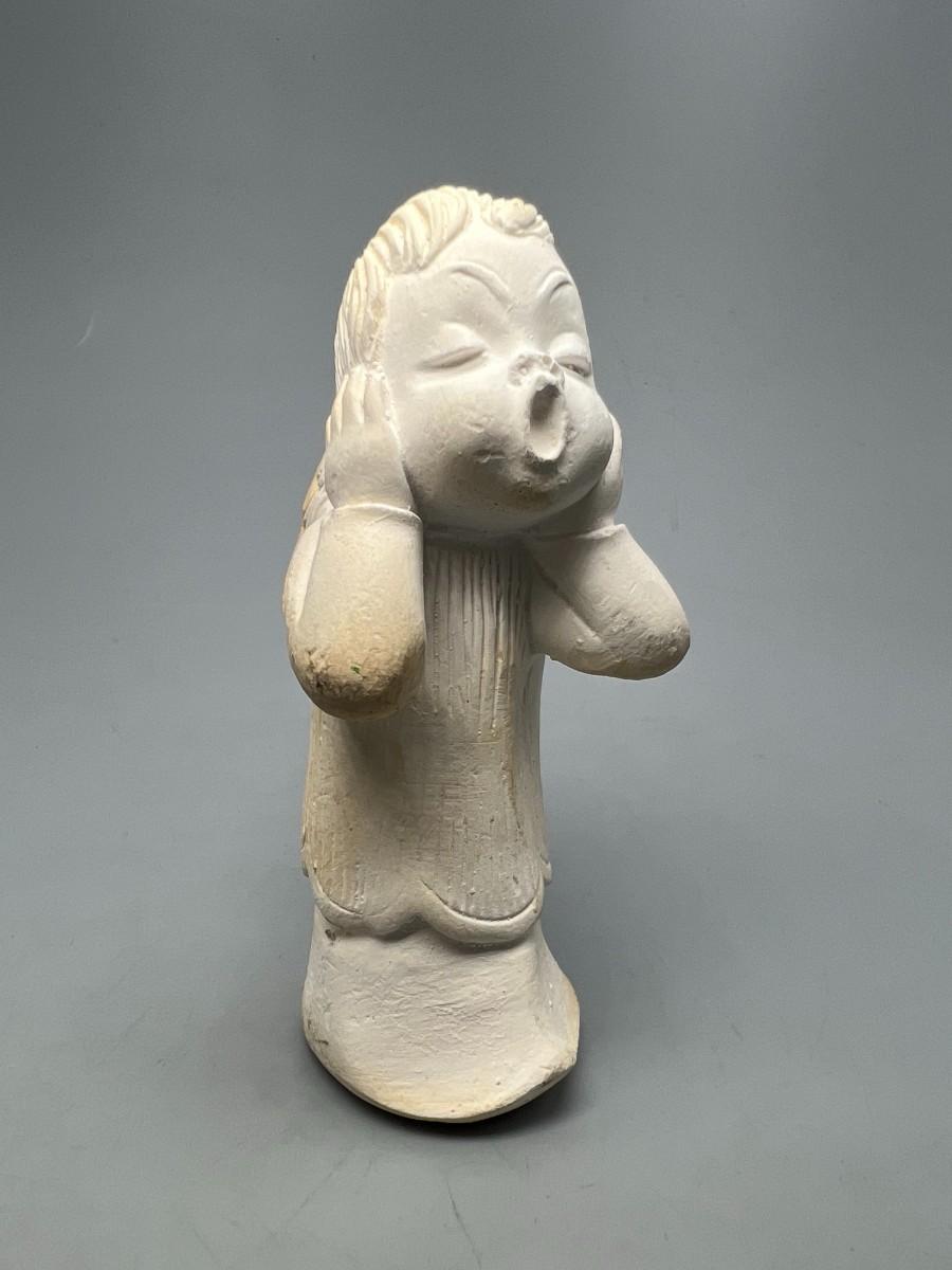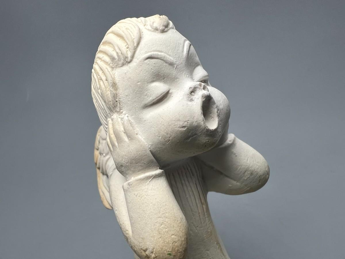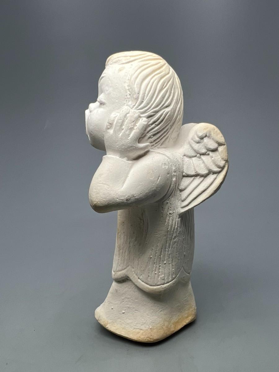 Miniature Small Caroling Singing Not Listening Angel Covering Ears Figurine. Looks like unfinished pottery ceramics. Great for a crafting project. About 4" size.