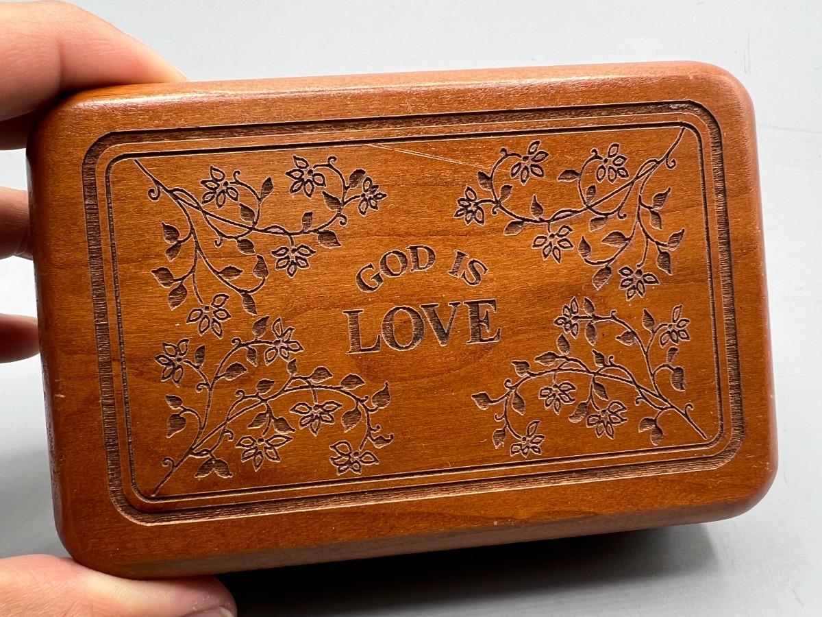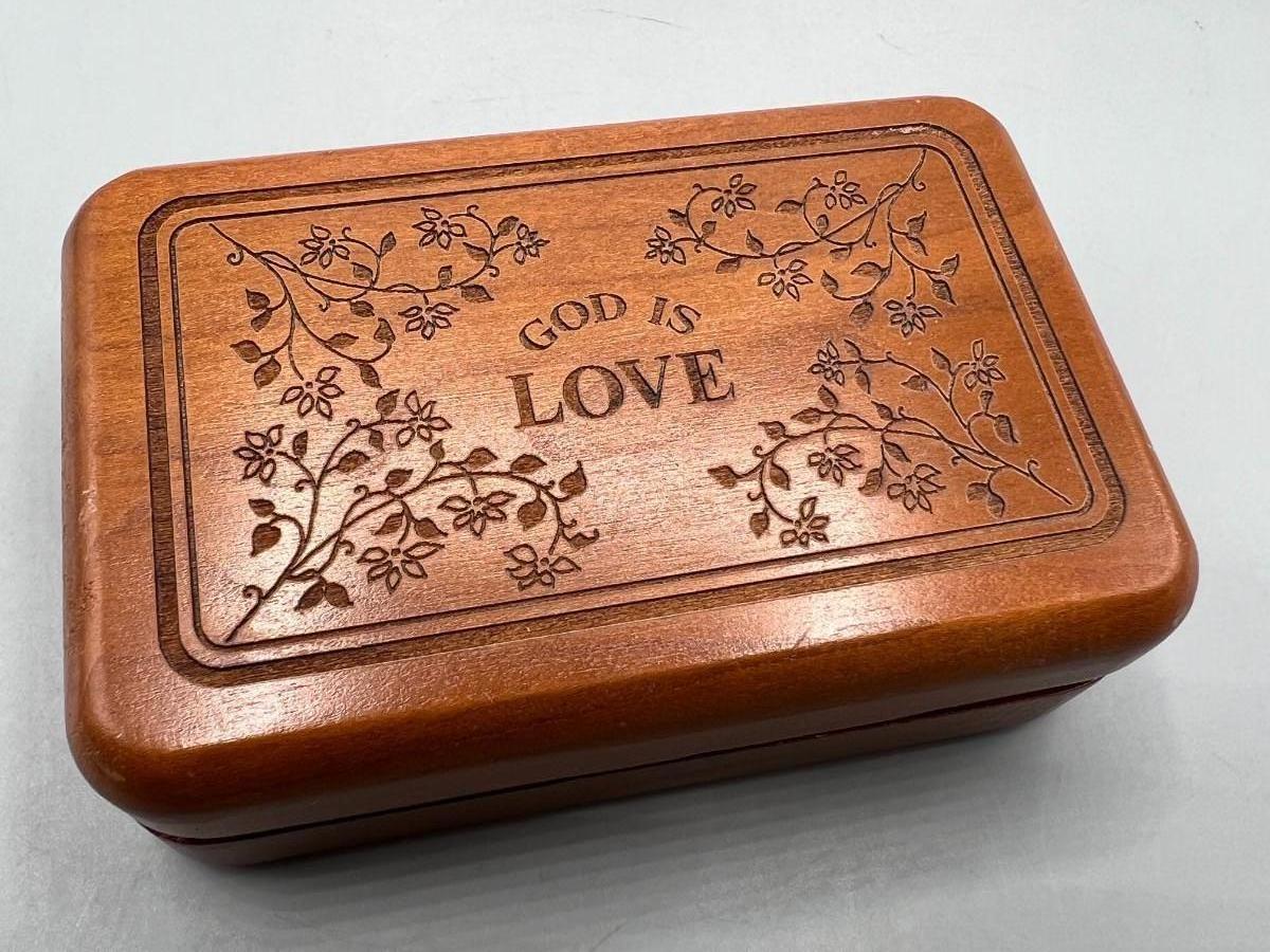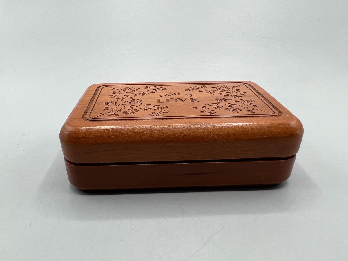 Small God is Love Carved Wood Hinged Lid Trinket Jewelry Box