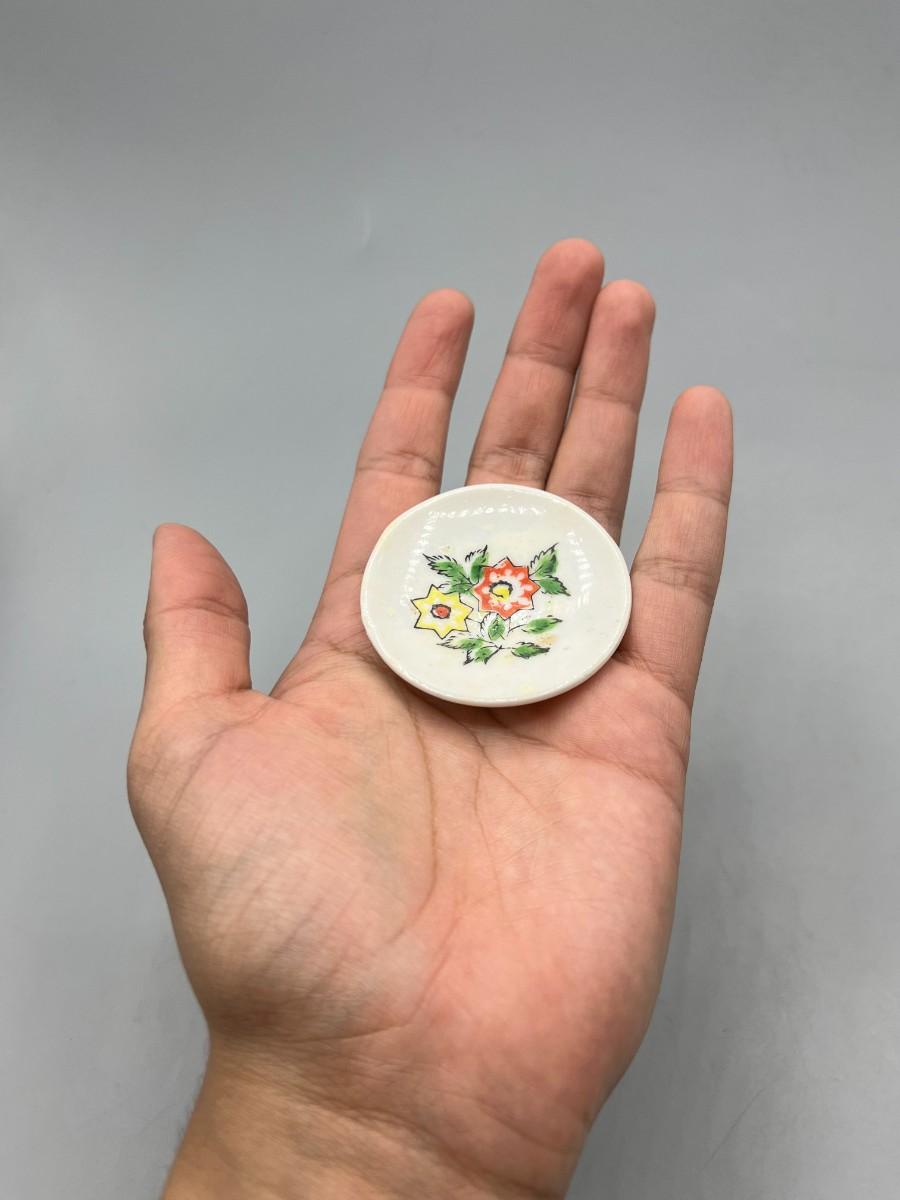 Vintage Miniature Yellow and Red Flower Painted Tiny Plate Saucer Made in Japan