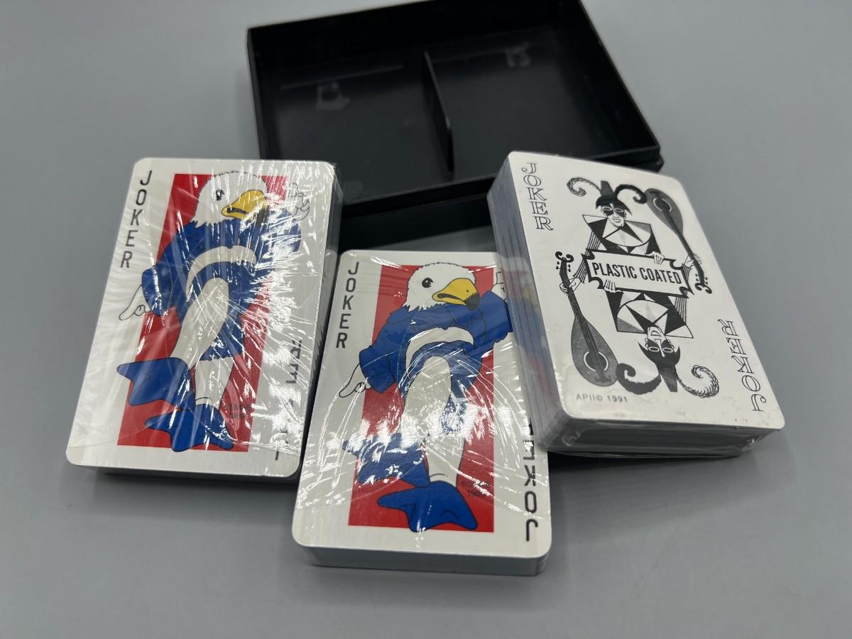 There is no damage to the cards and is still unopened in their plastic wrapping. Check pictures for more details.