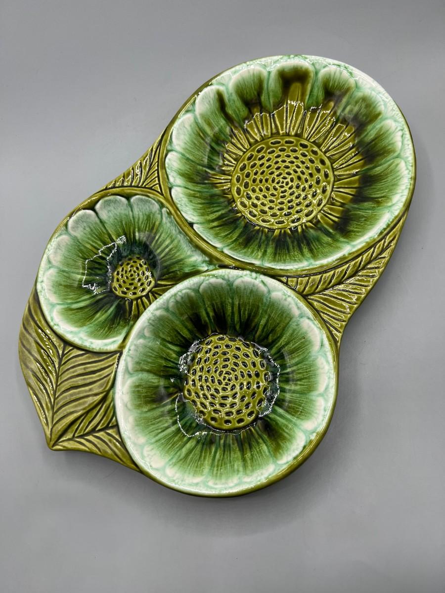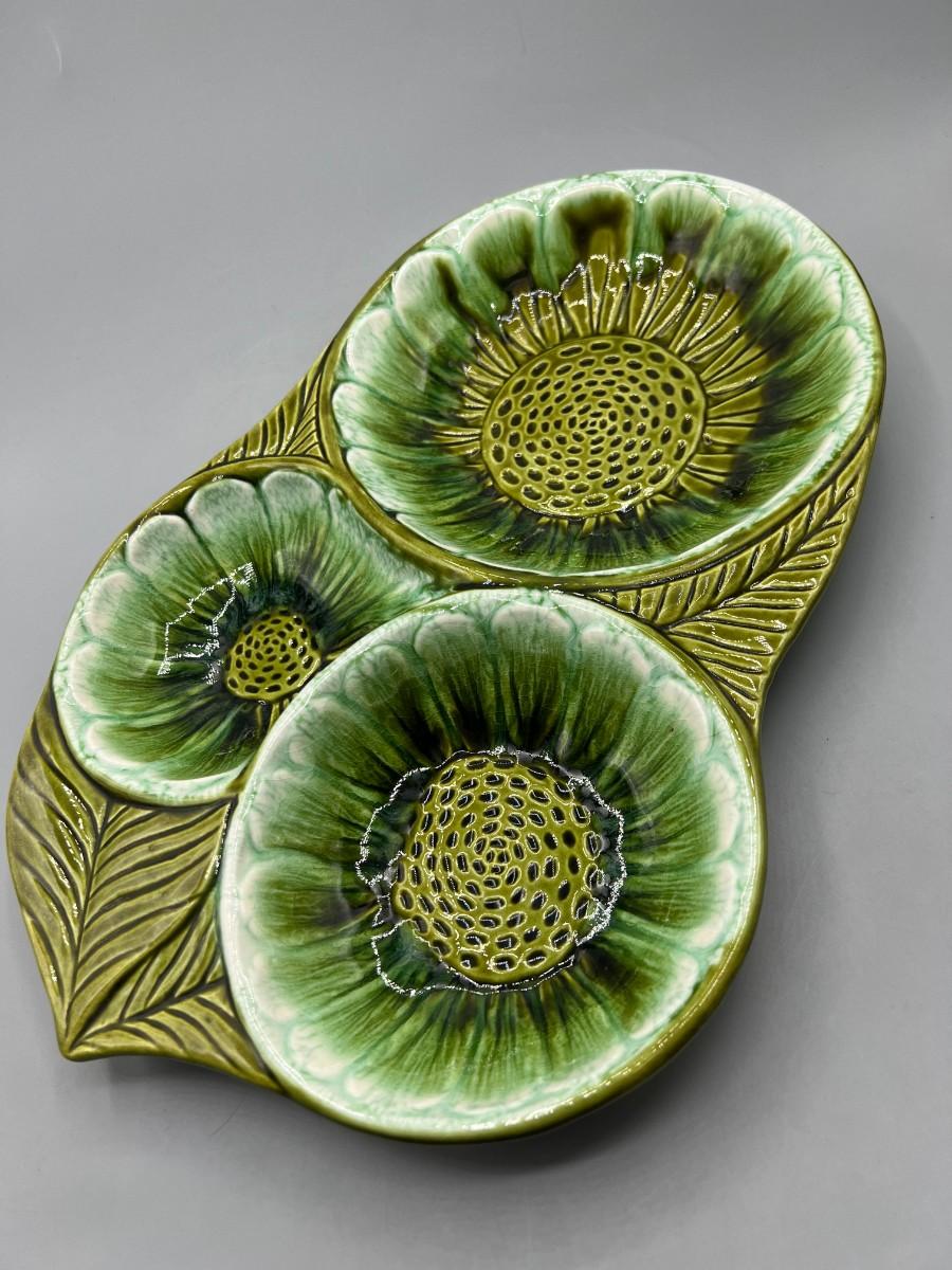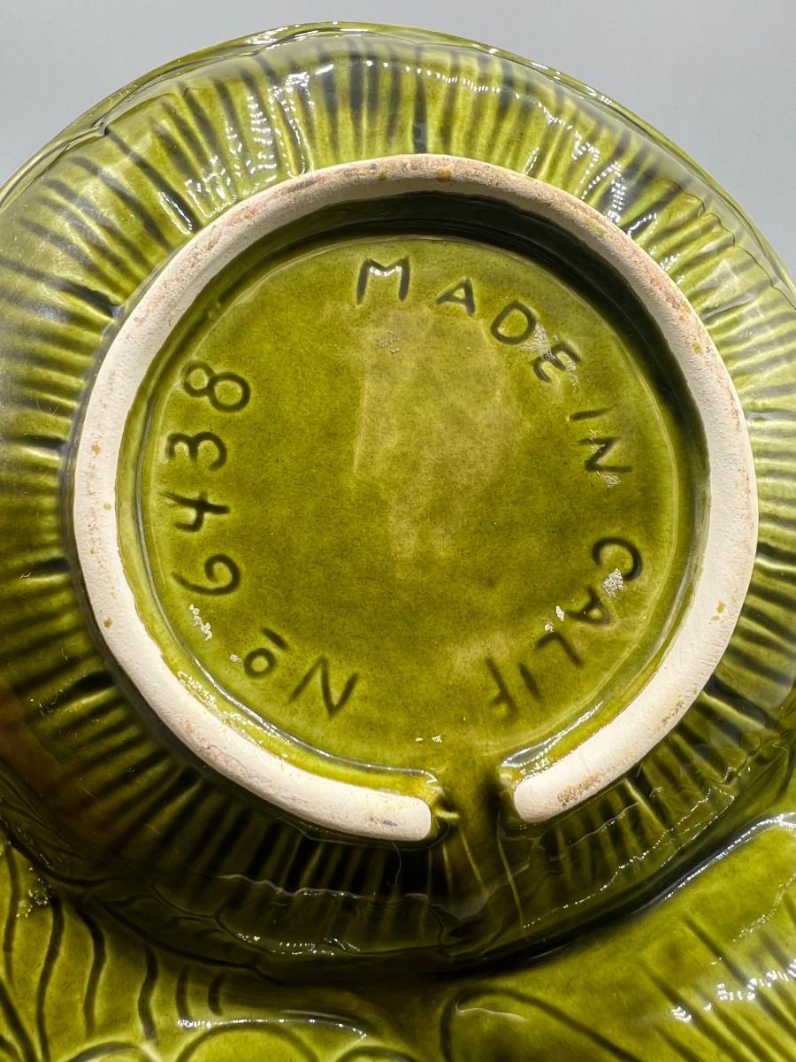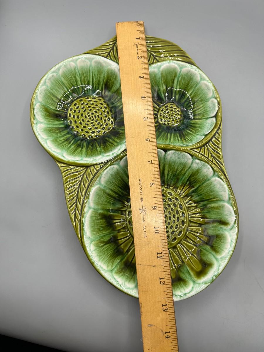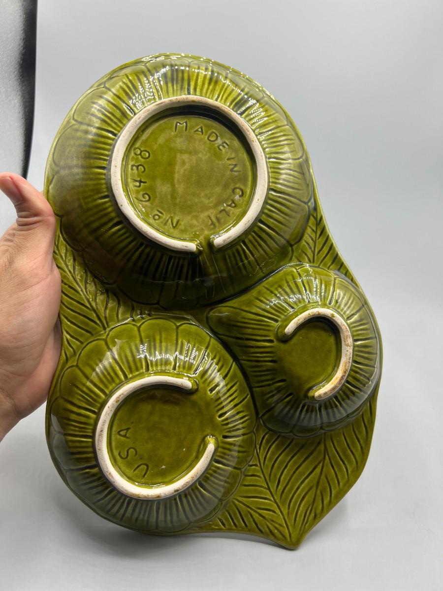 Vintage California Pottery Art Deco Green Flower Power Divided Serving Display Dish