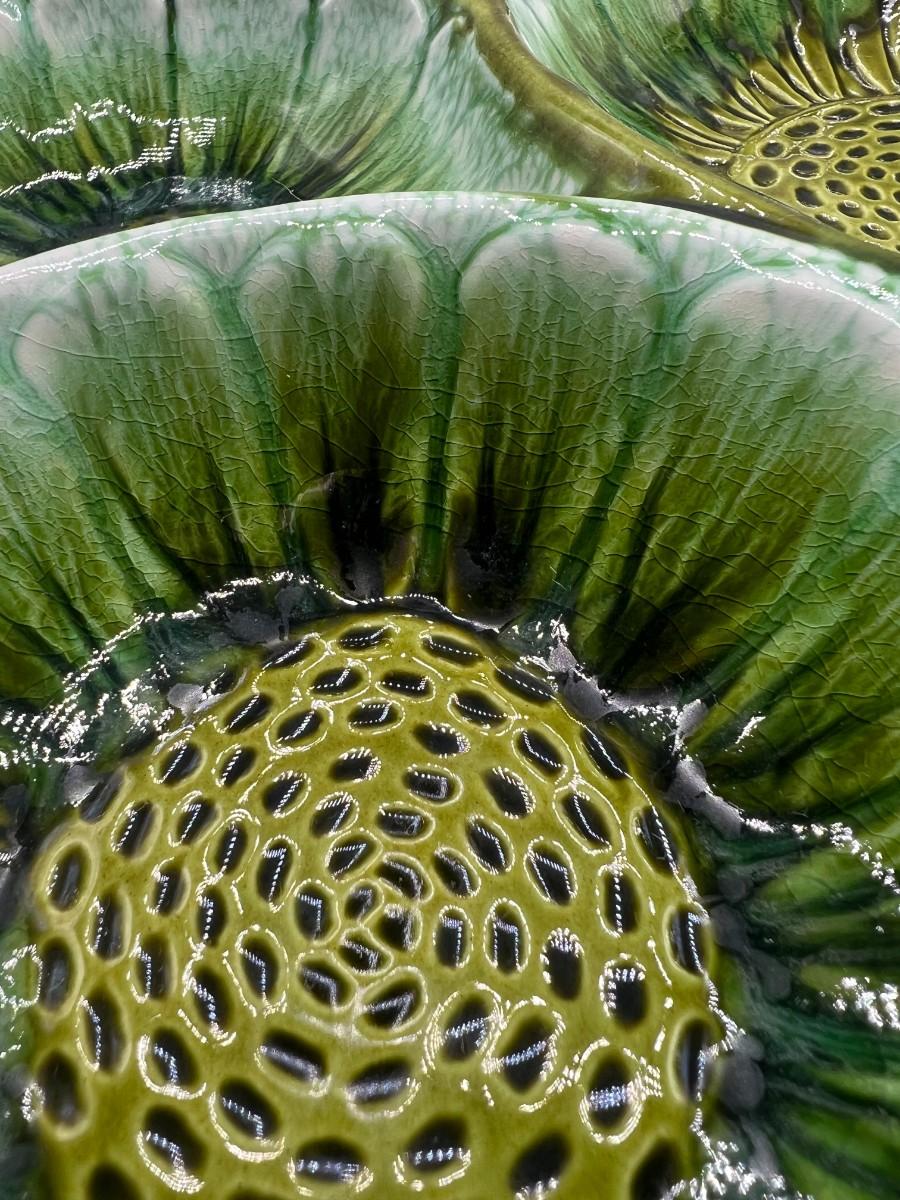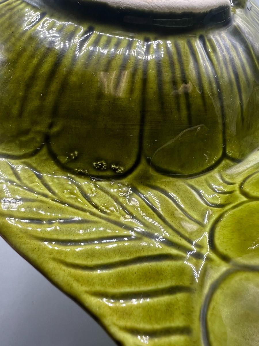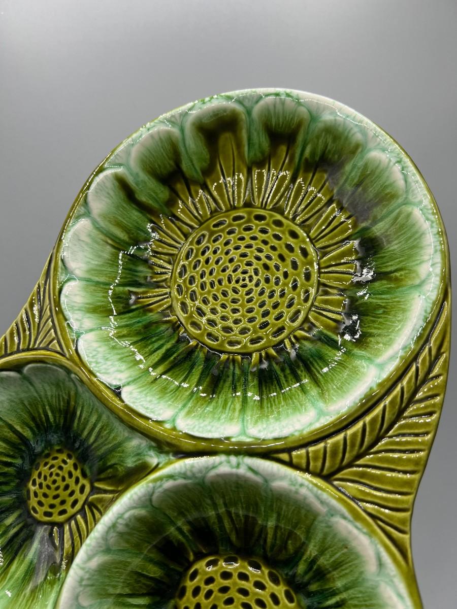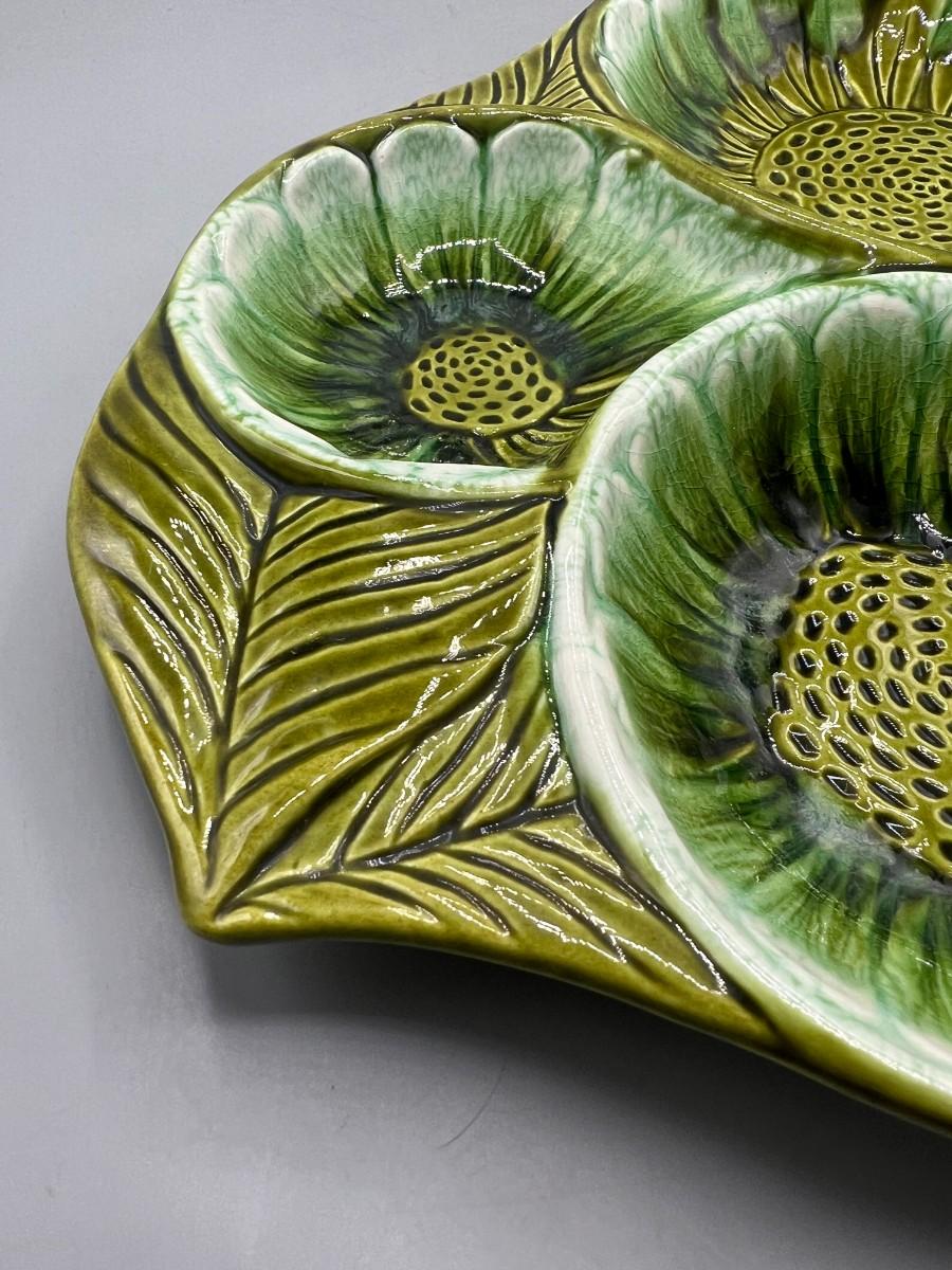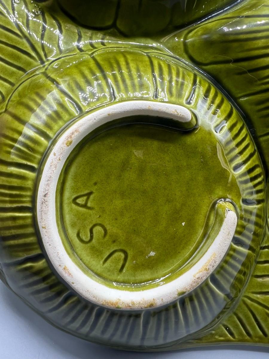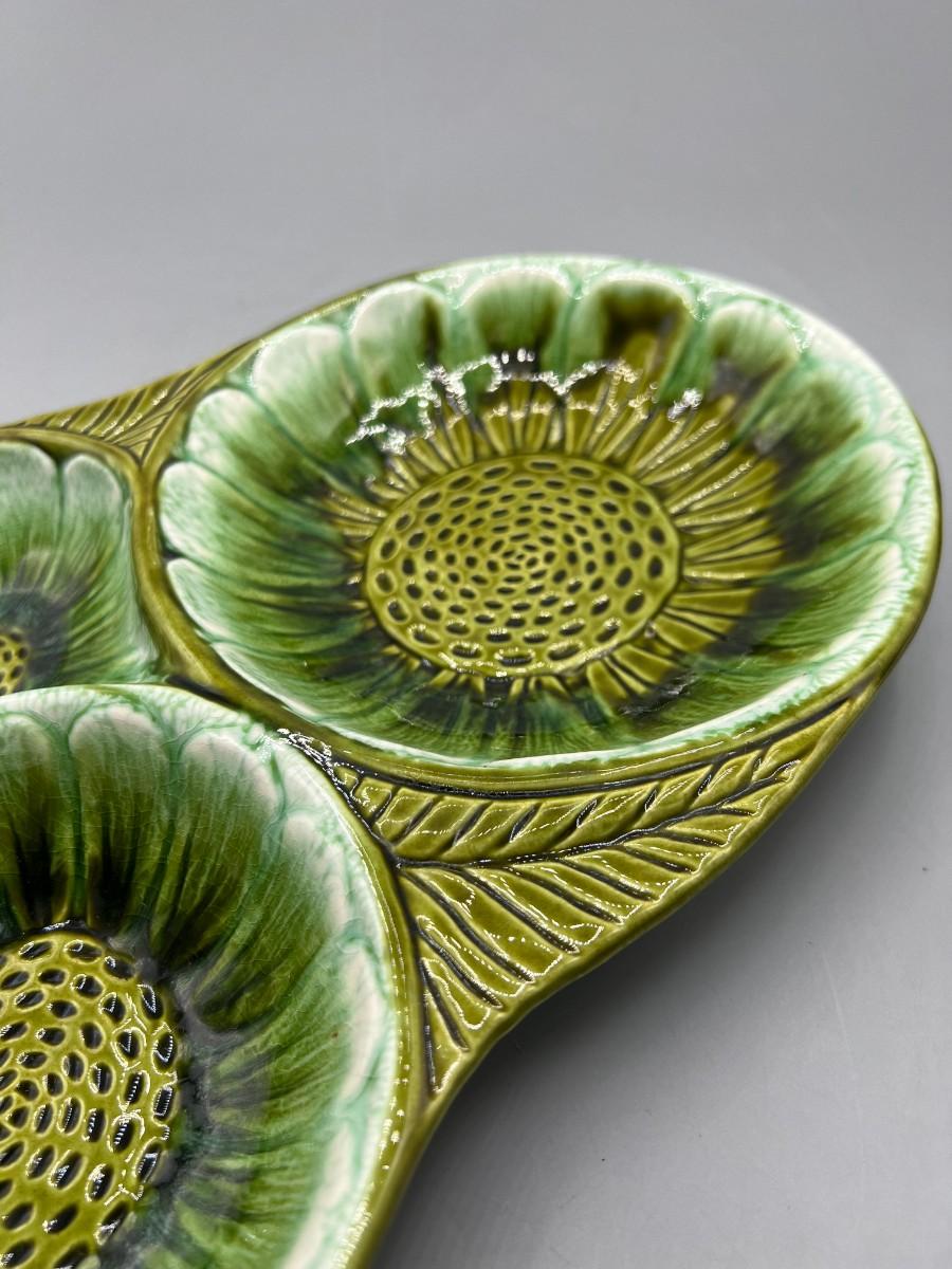 Vintage California Pottery Art Deco Green Flower Power Divided Serving Display Dish
