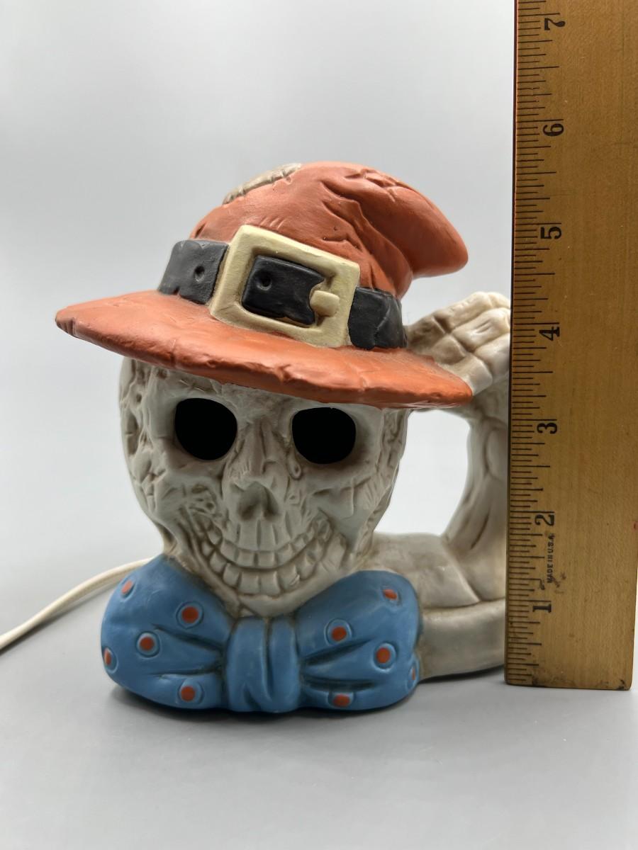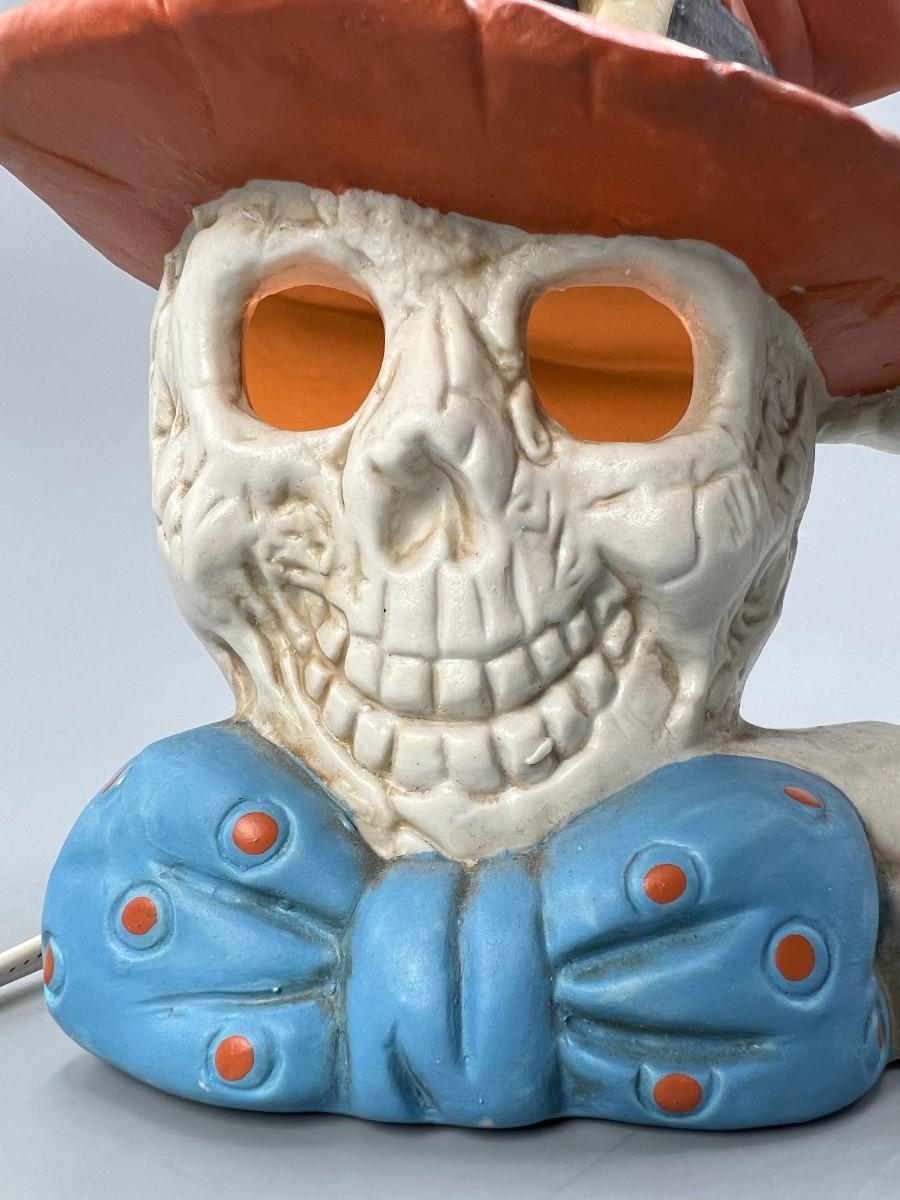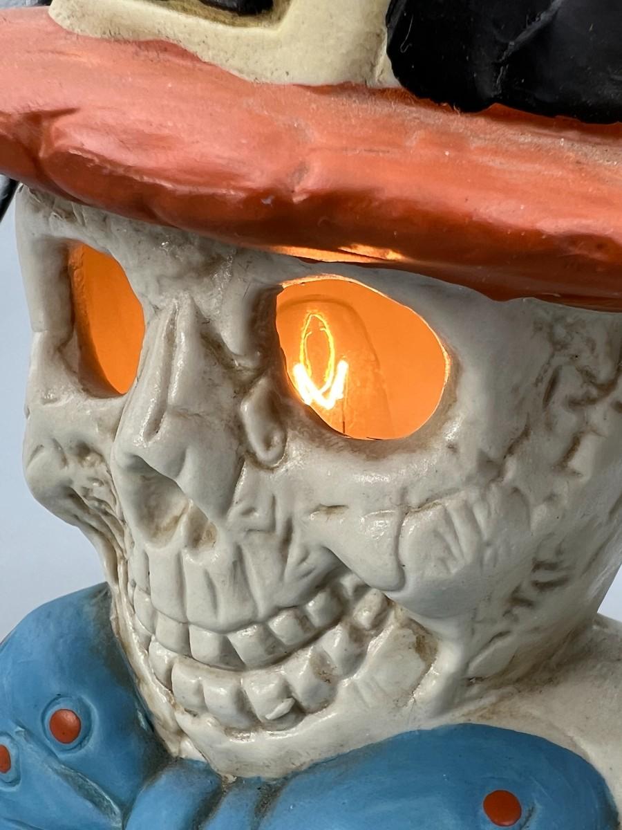 There is no damage to the skeleton decor and is in overall good displayable condition. Works perfectly when plugged in. Comes with original box.