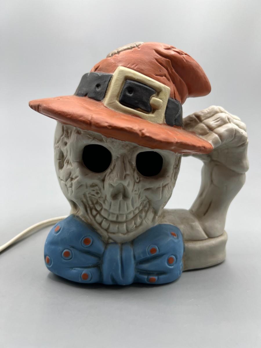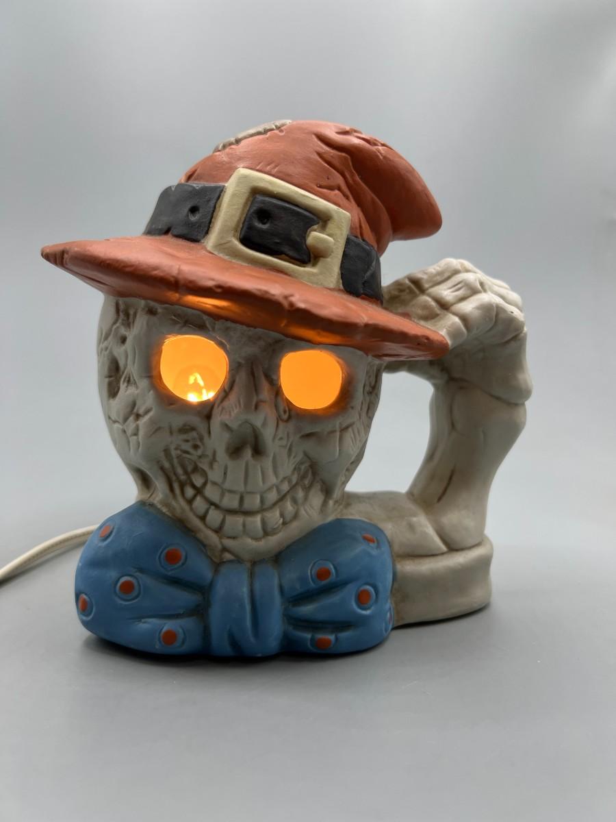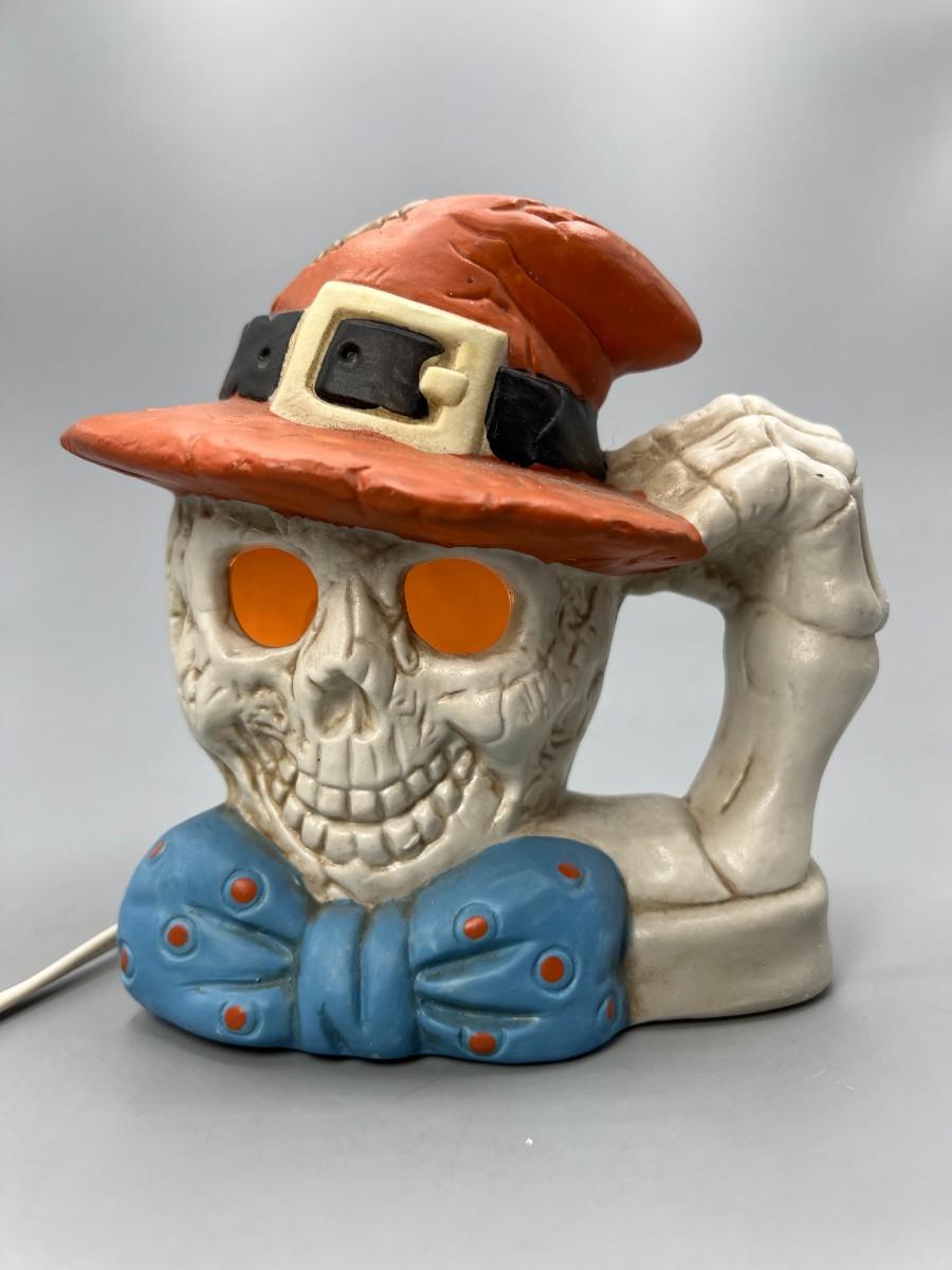 There is no damage to the skeleton decor and is in overall good displayable condition. Works perfectly when plugged in. Comes with original box.
