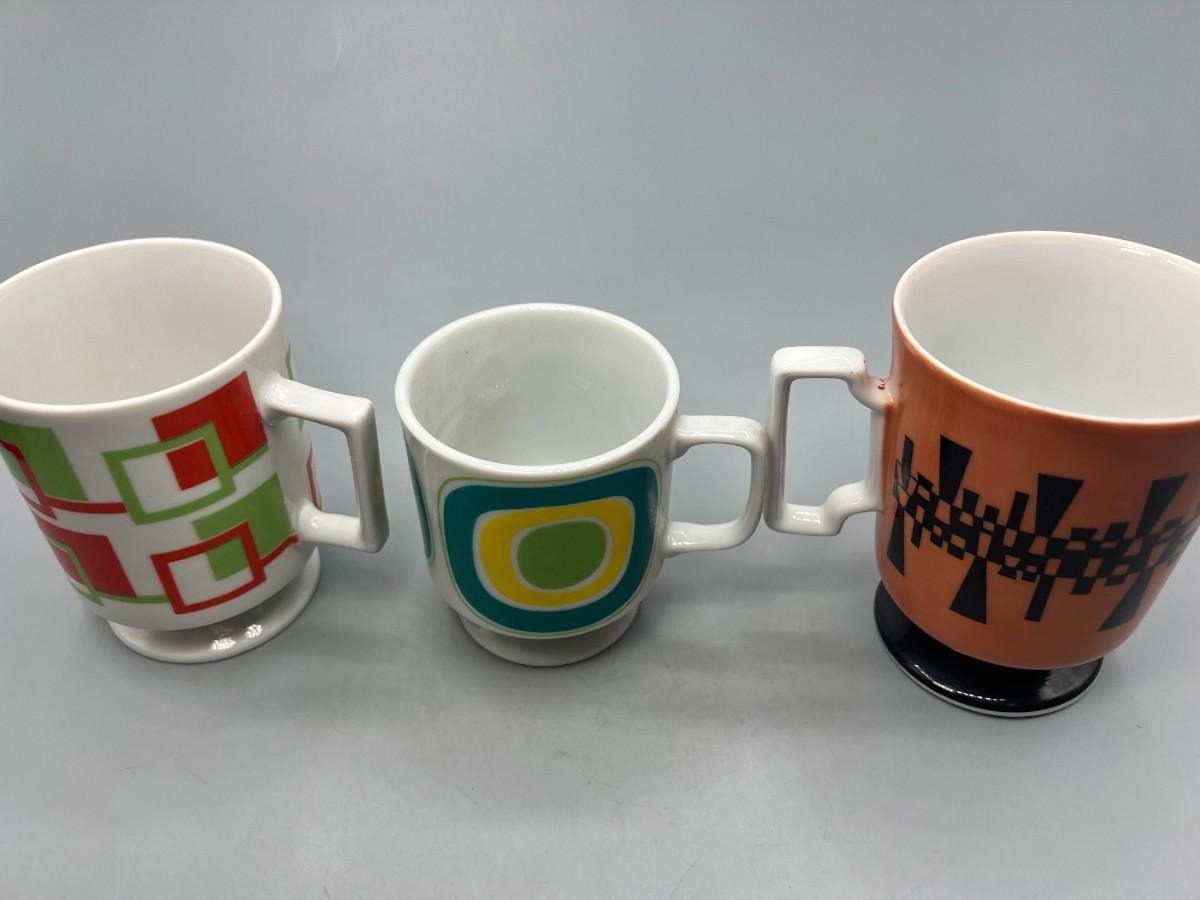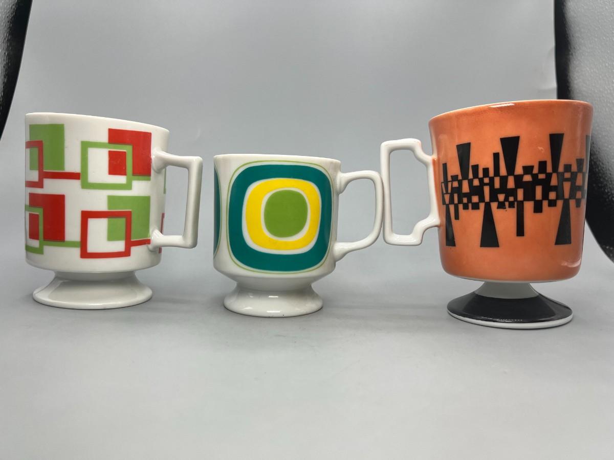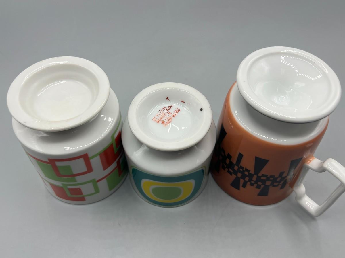 Vintage Lot of Mid Century Style Pop Graphic Porcelain Made in Japan Drinking Mugs