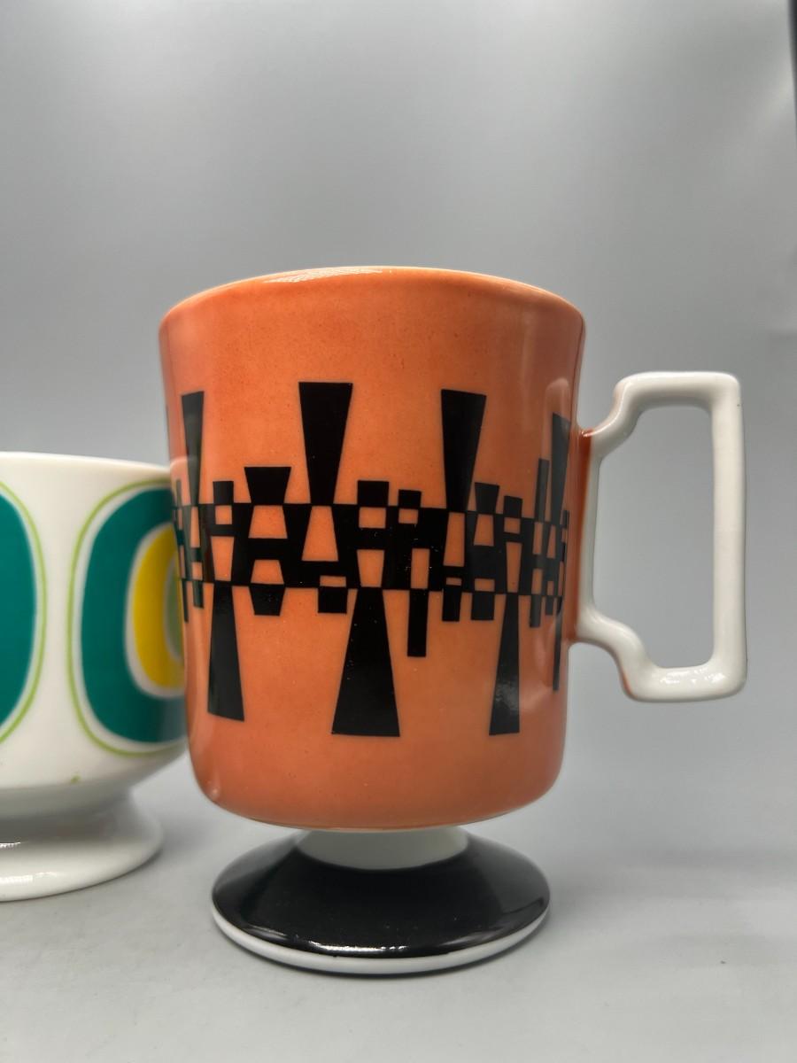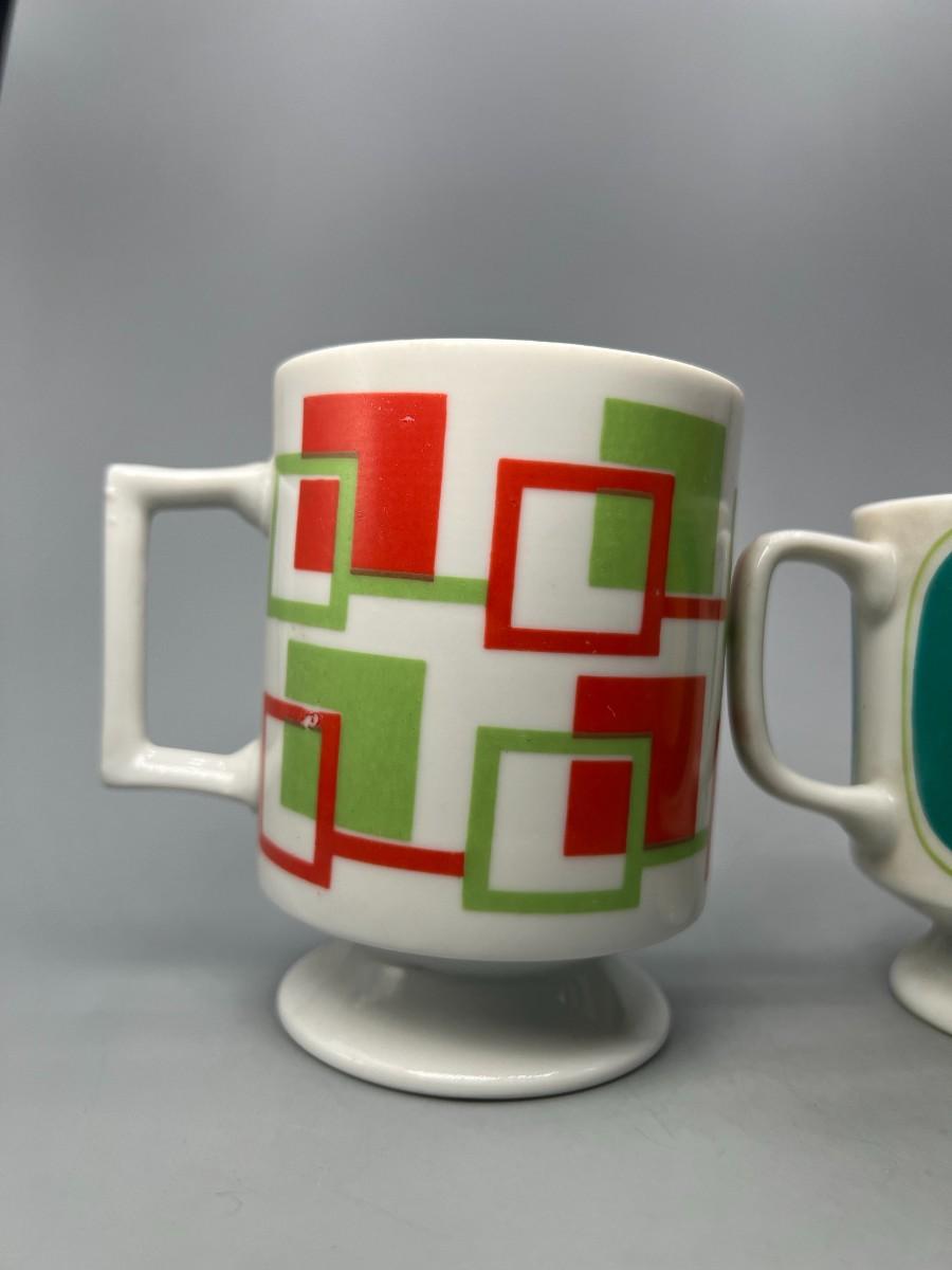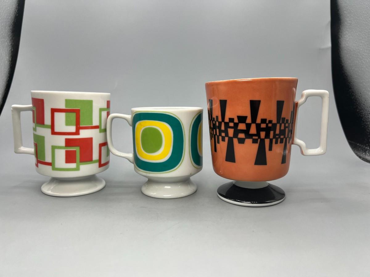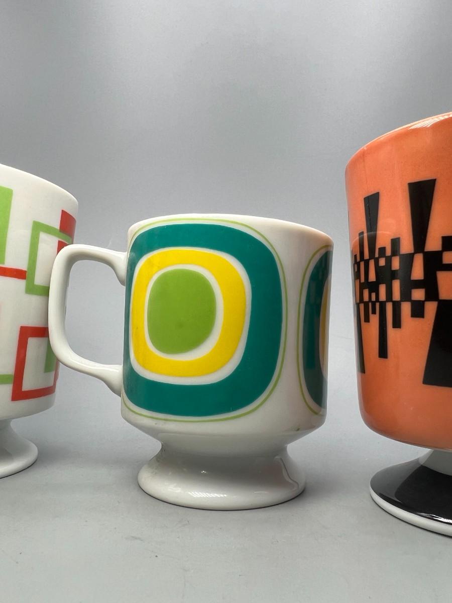 Vintage Lot of Mid Century Style Pop Graphic Porcelain Made in Japan Drinking Mugs