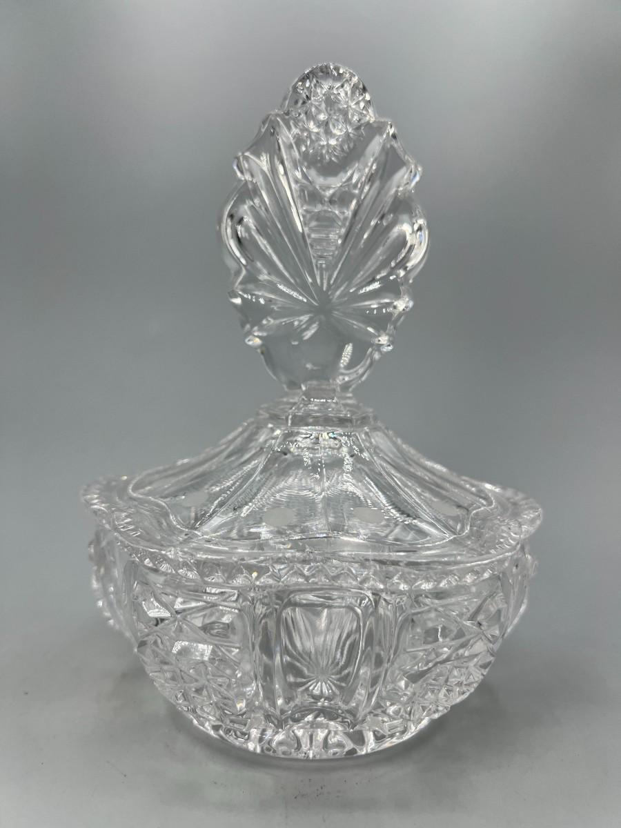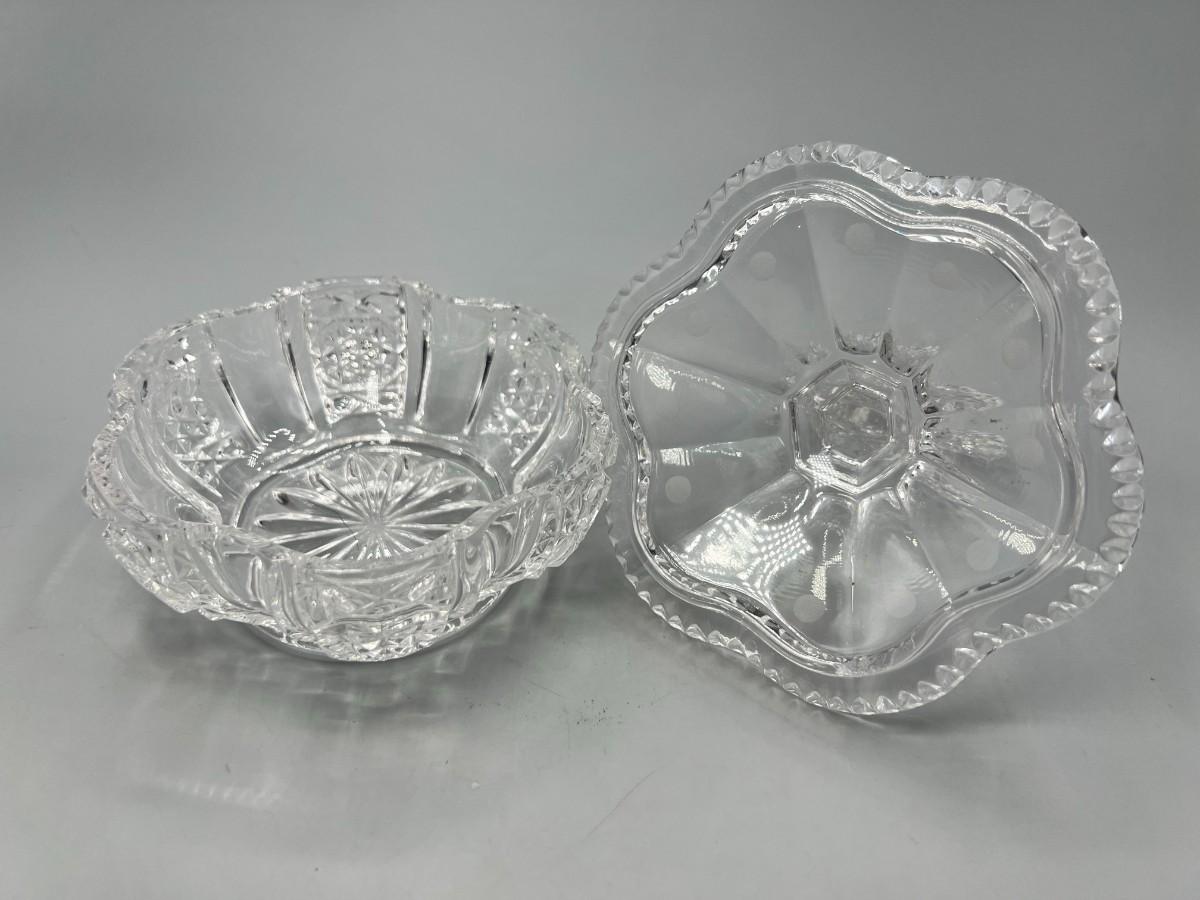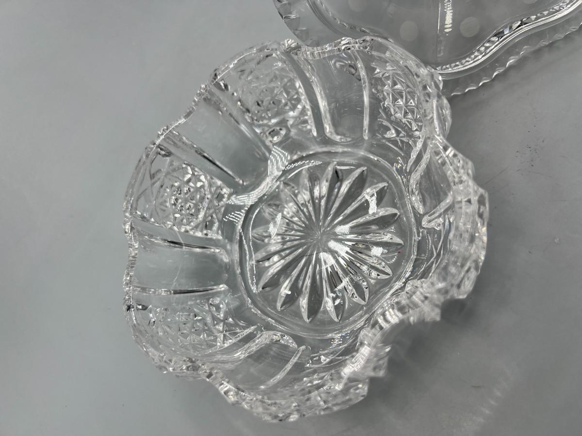 Vintage Art Deco Crystal Glass Polka Dot Trinket Candy Dish