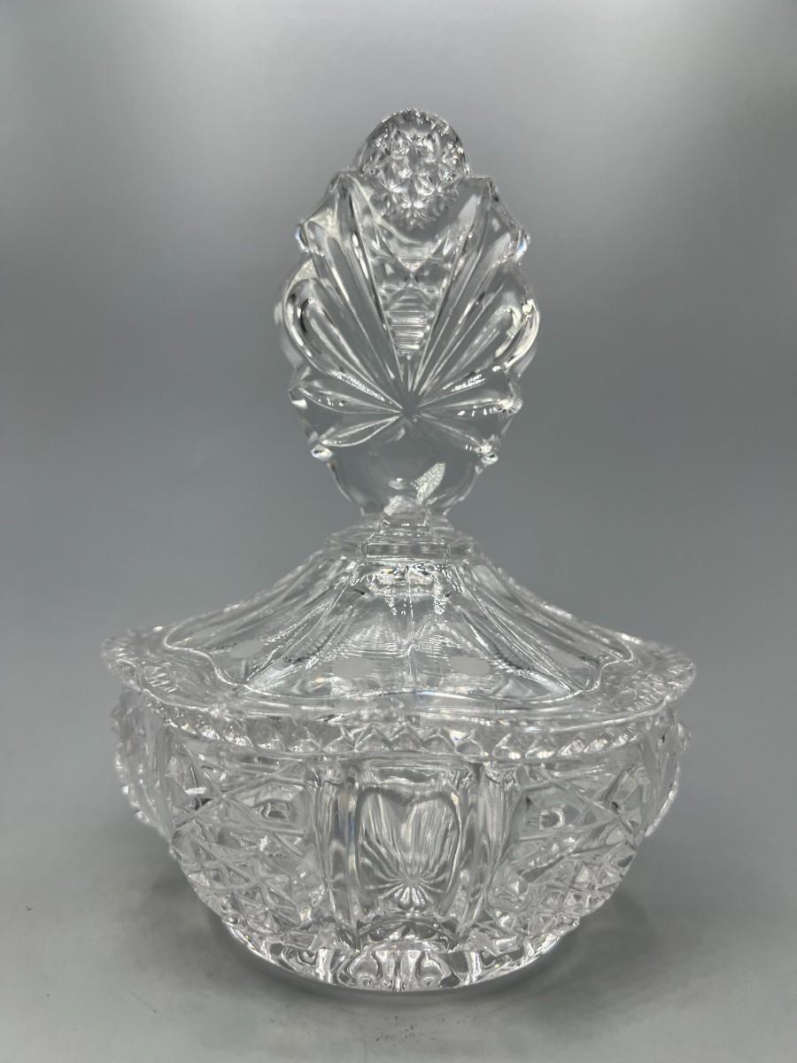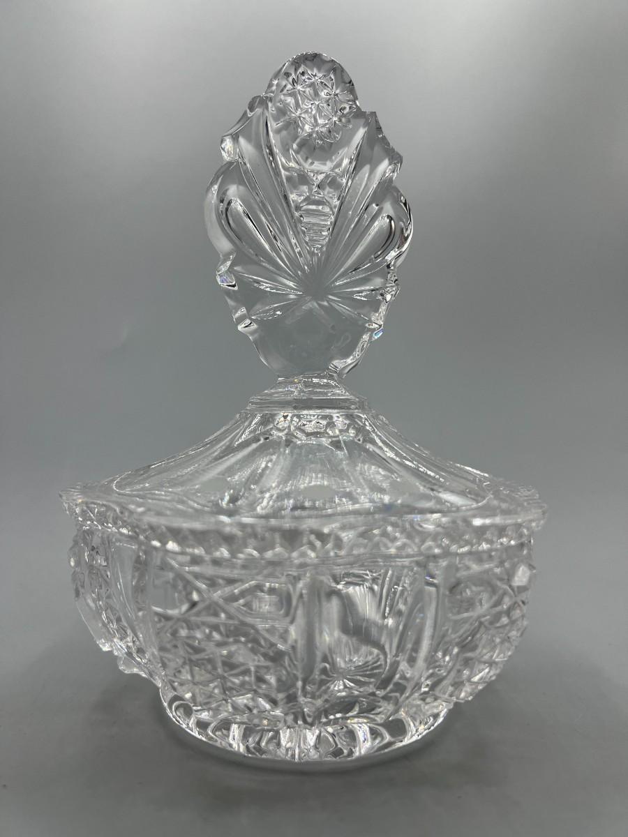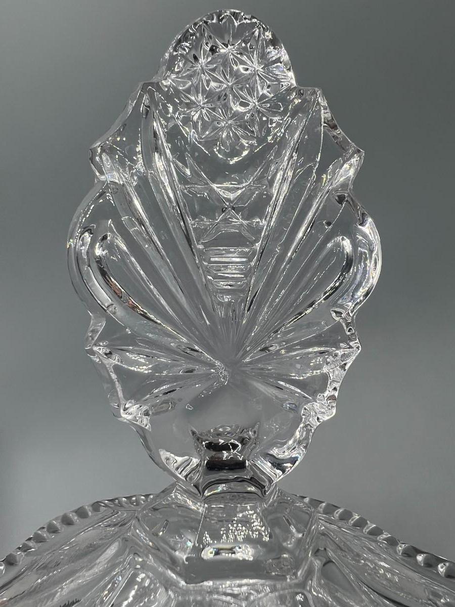 Vintage Art Deco Crystal Glass Polka Dot Trinket Candy Dish