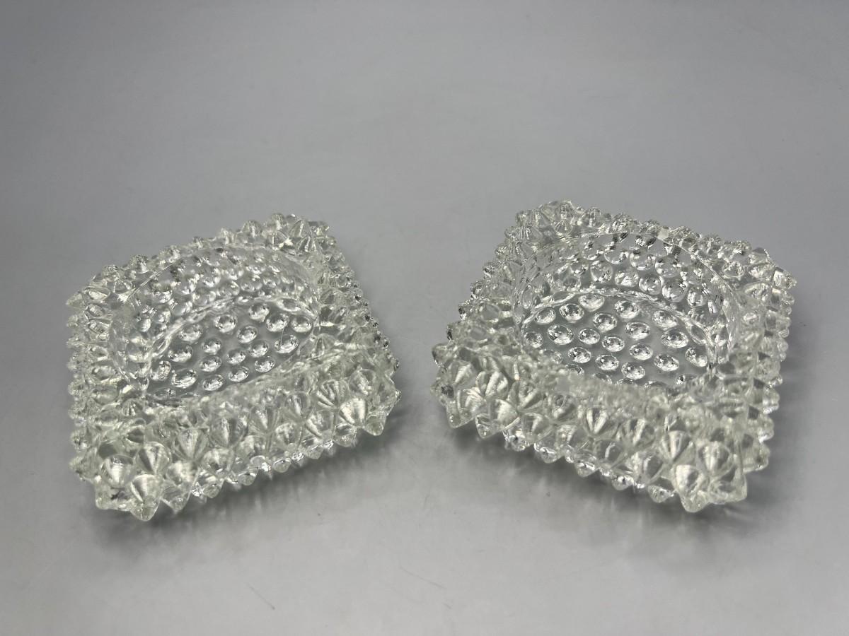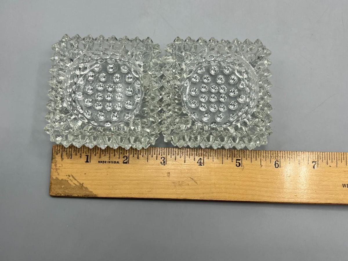 Pair of Vintage Pointy Hobnail Candle Holder Trinket Dish Ashtrays. About 3" size.