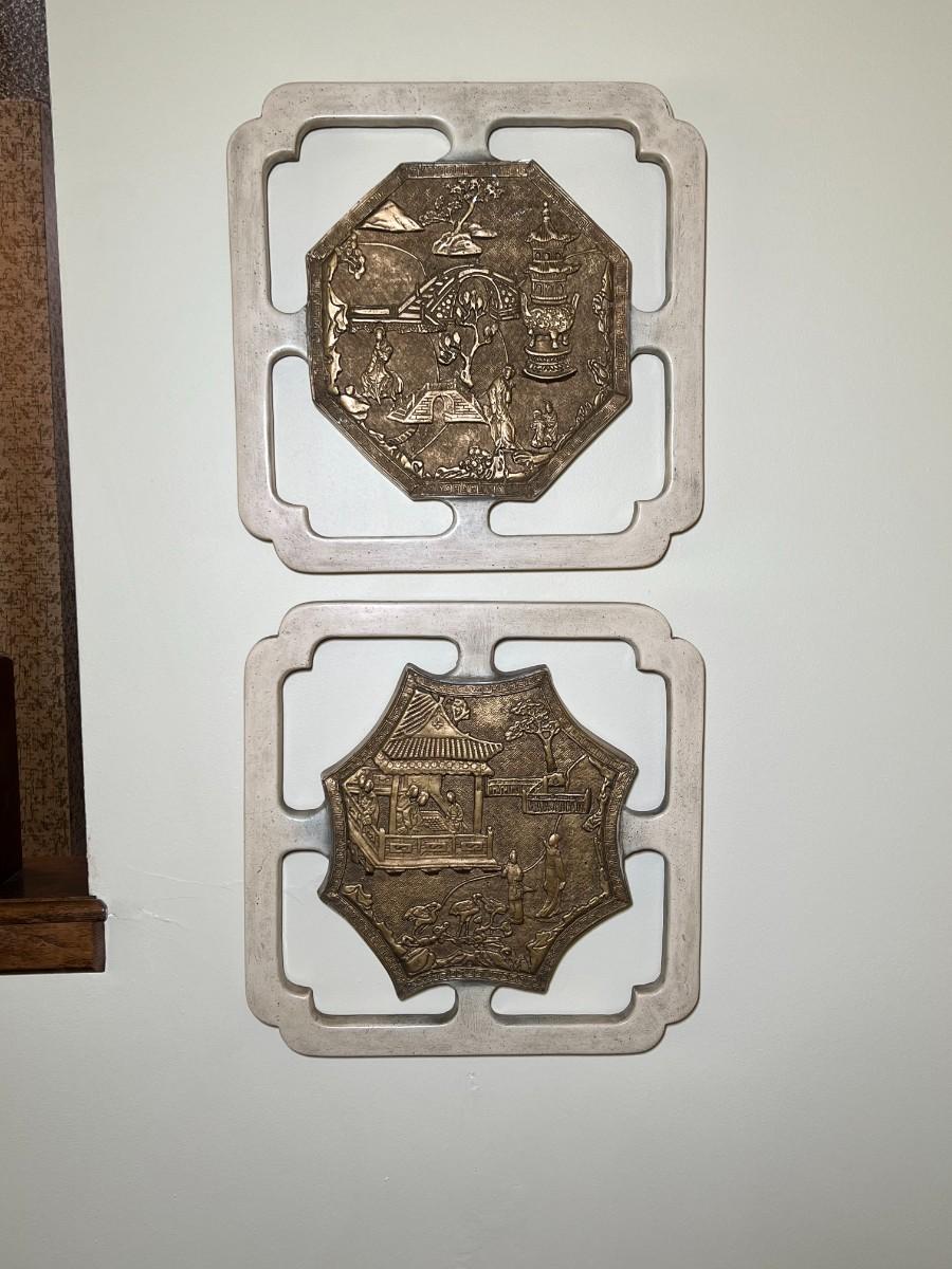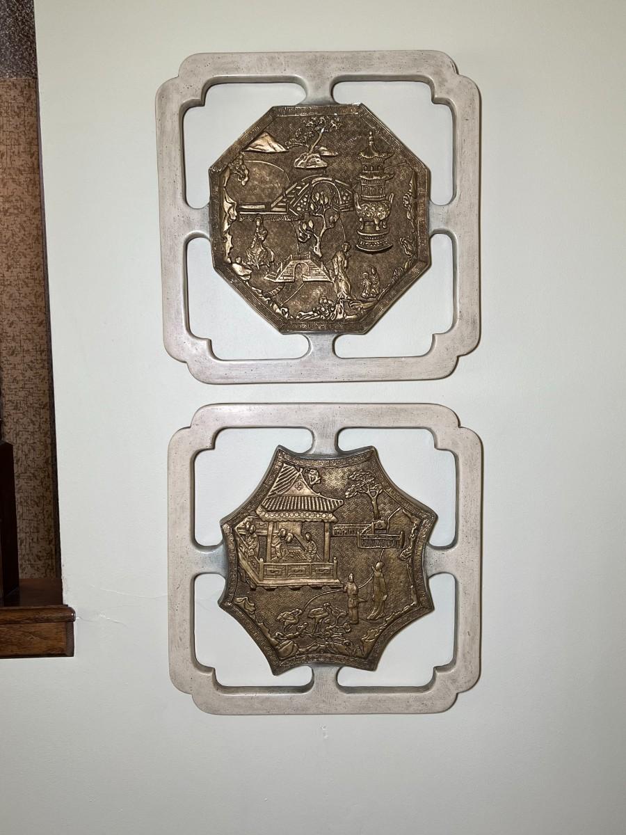 Pair of Vintage Japanese Oriental Hanging Wall Art Decor by the Sorcerer's Apprentice West Hollywood