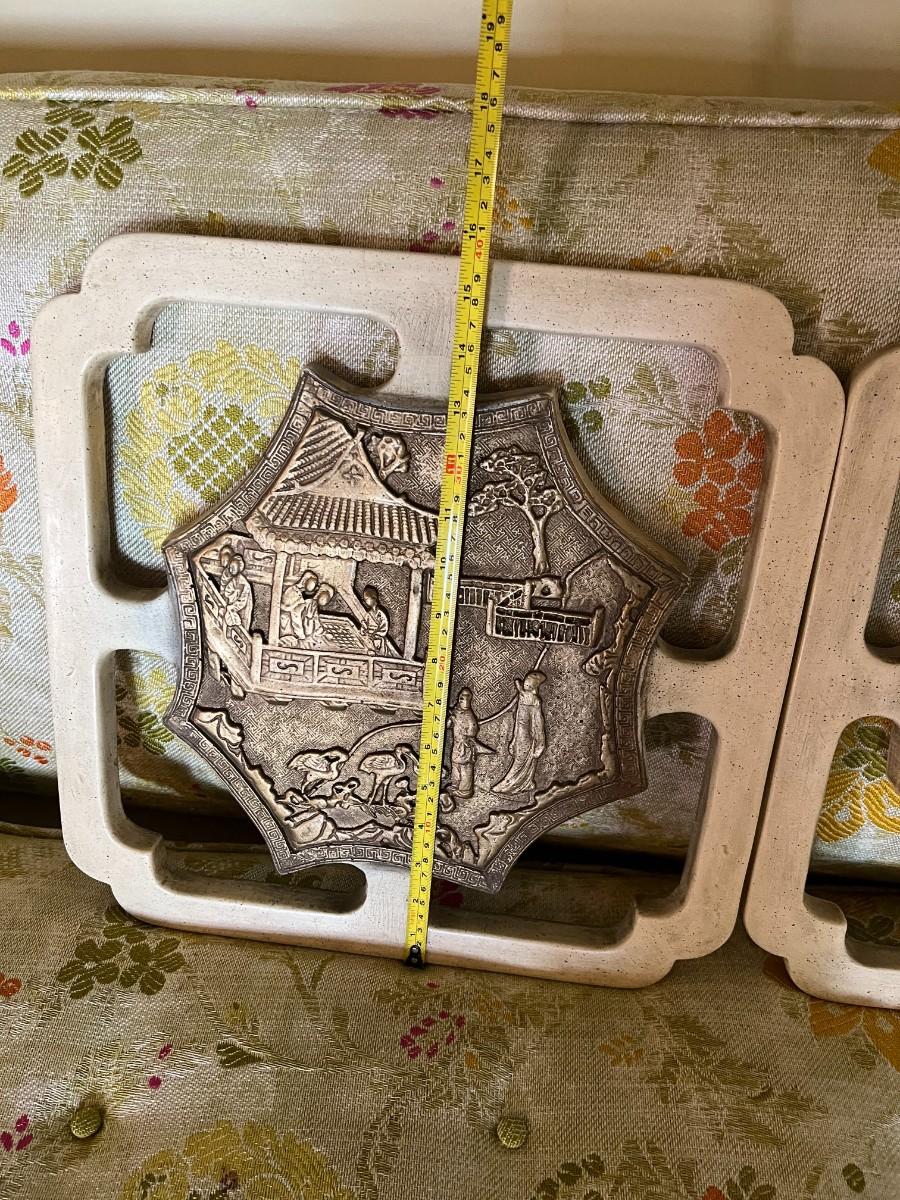 There is a vintage sticker on the back of both of the pieces indicating their provenance. Check pictures for more details and for sizing.