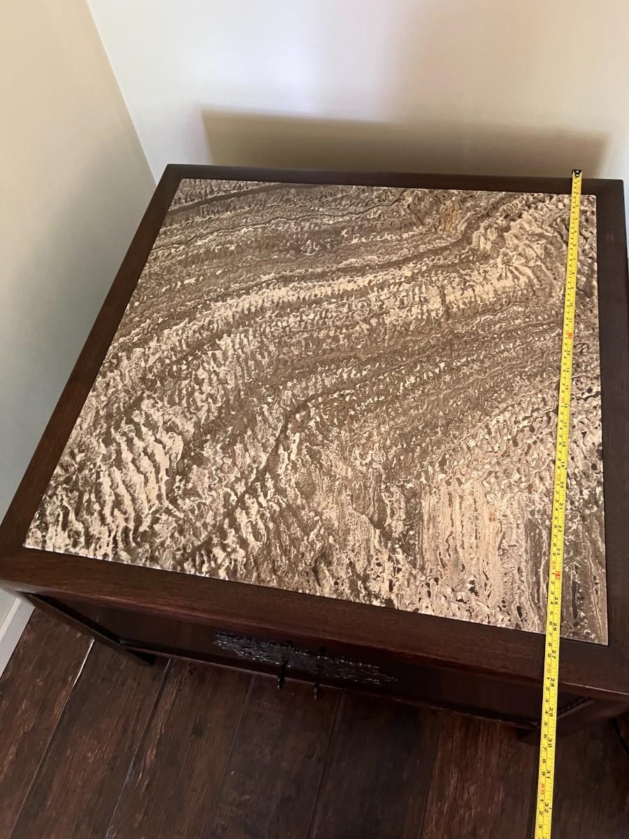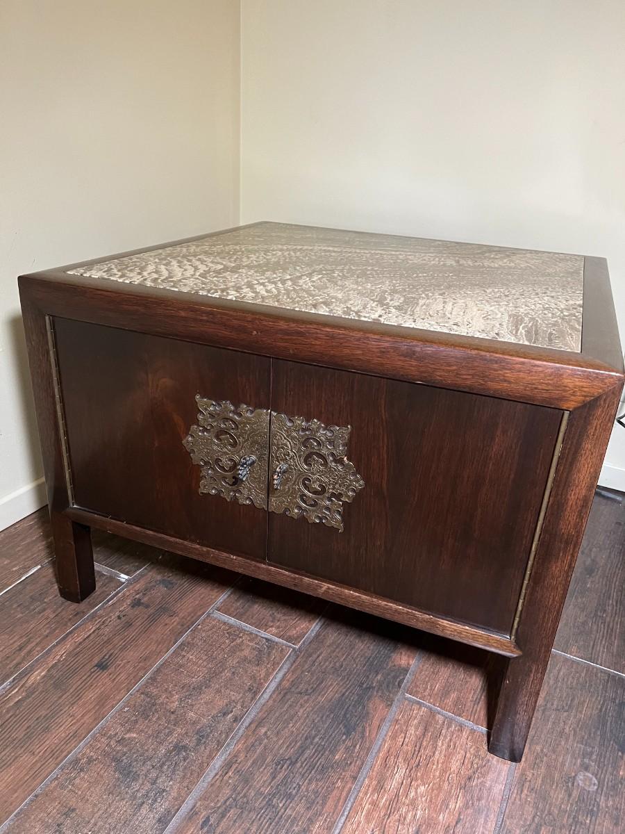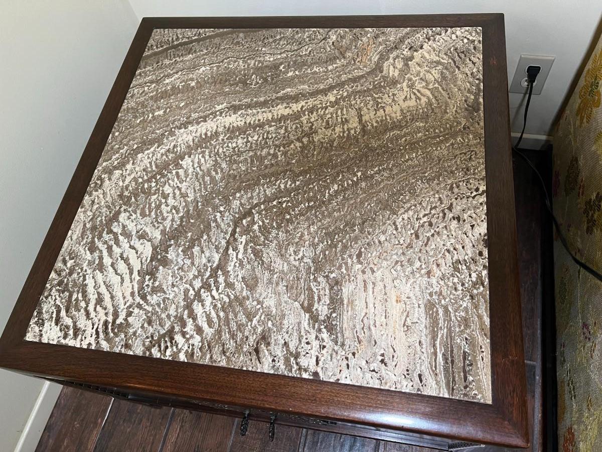 Modern Home Decor Oriental Design Wood Granite Top End Table Furniture Piece