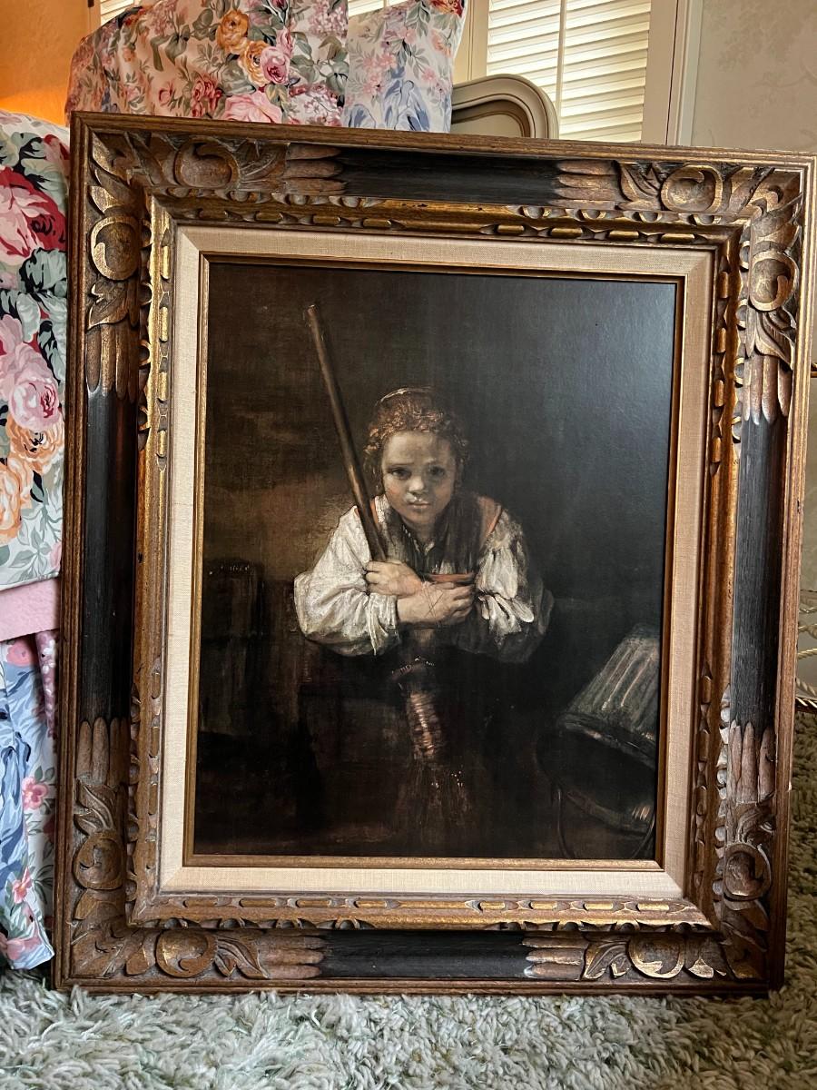 Vintage Framed Art Print Girl with a Broom by Rembrandt