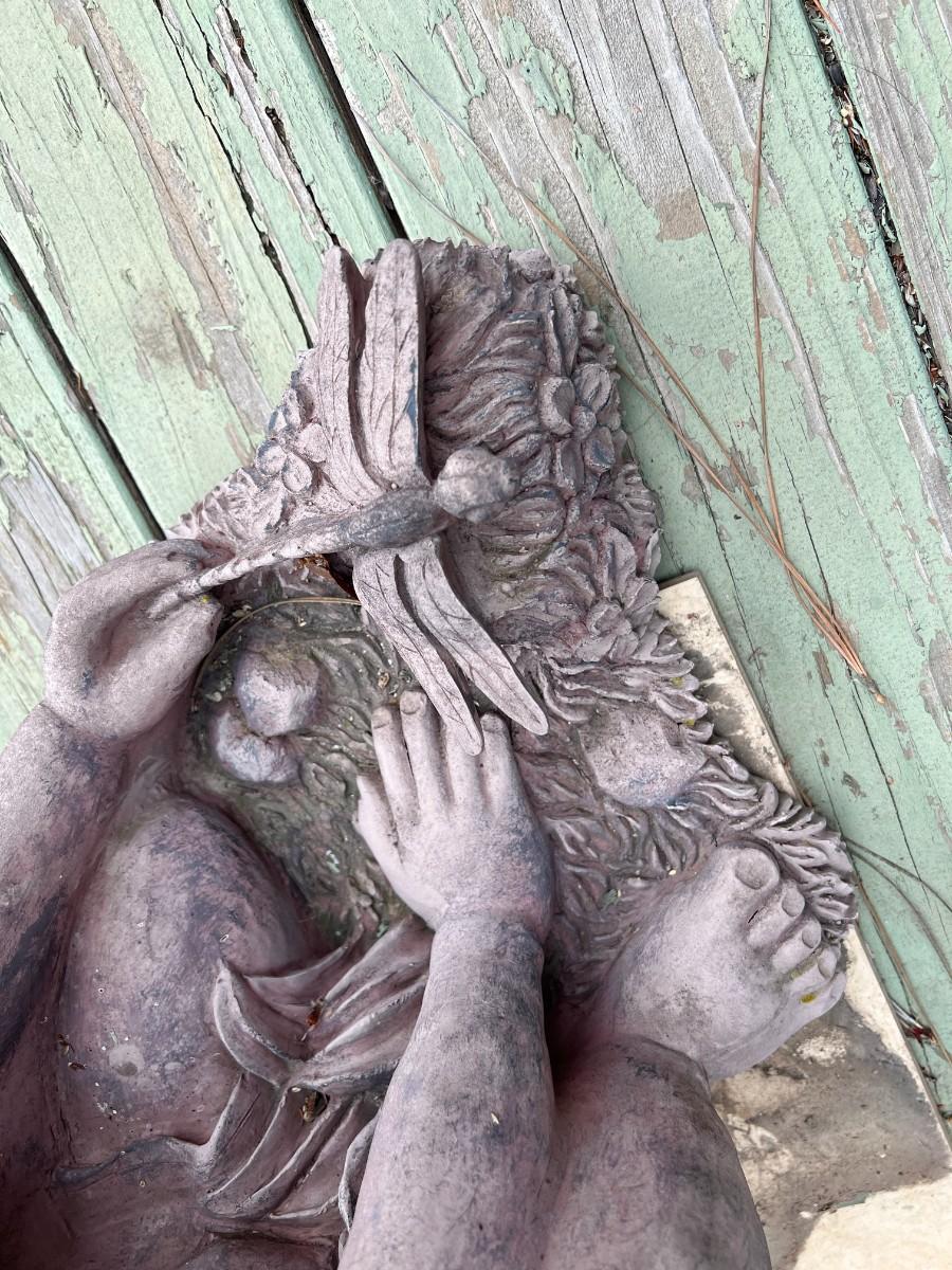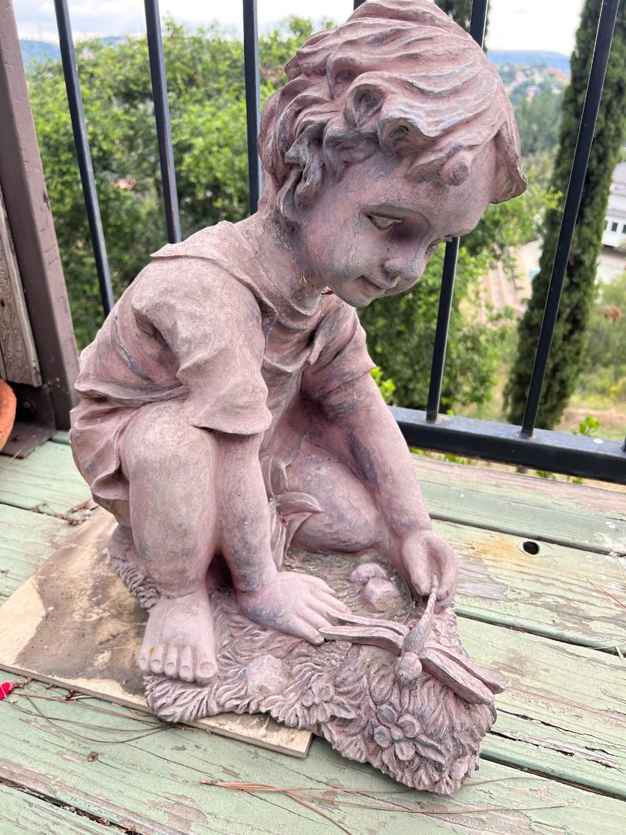 Garden Art Statue Plaster Playing Child with Dragonfly Figurine