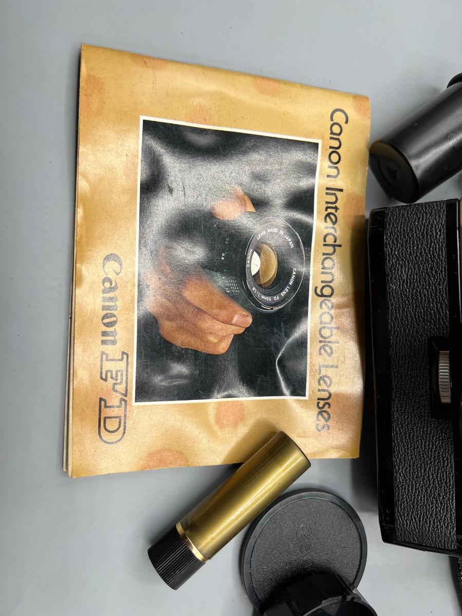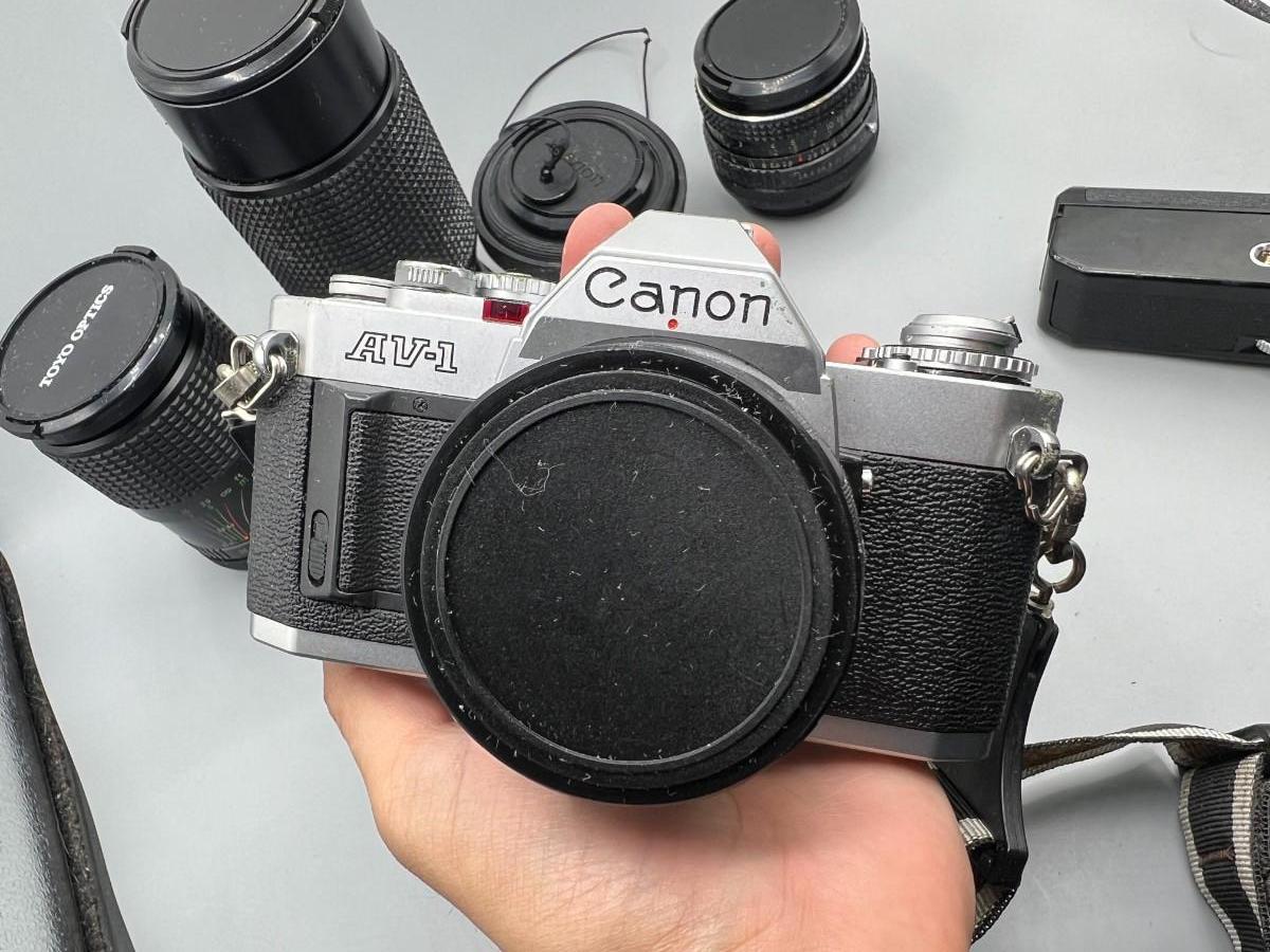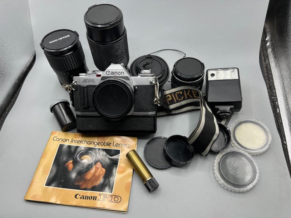 Vintage CANON AV-1 35mm Camera with an Assortment of Lens. Untested.