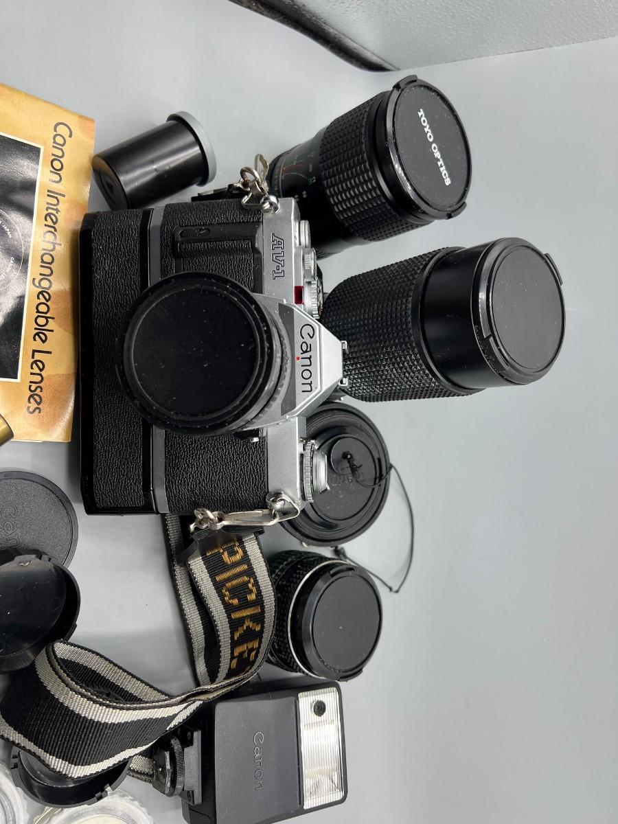 Vintage CANON AV-1 35mm Camera with an Assortment of Lens